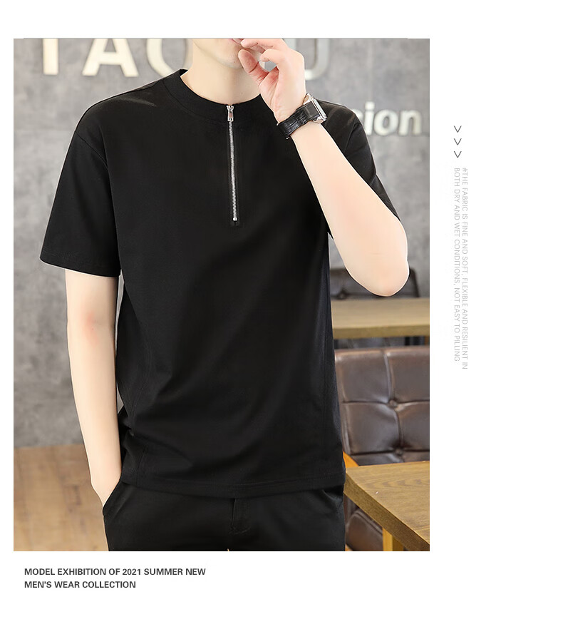 花花公子(PLAYBOY)男士短袖t恤2025夏季新款潮流立领半拉链polo.衫薄款纯色半袖衣服 1585绿色 M