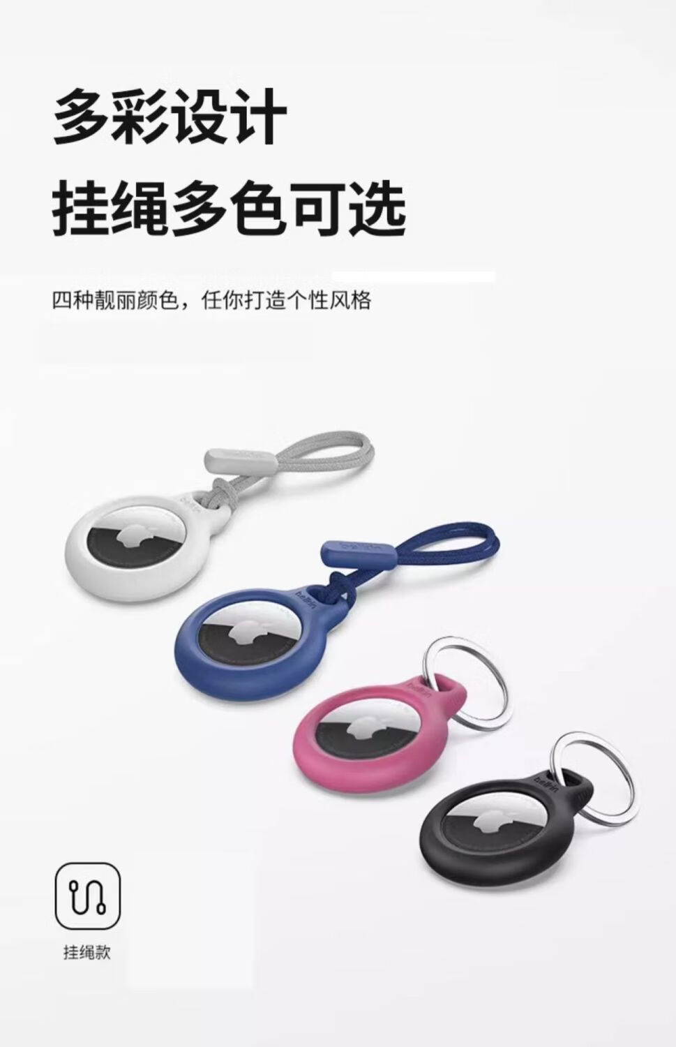 适用于苹果air防丢器AirTag保护套新款硅胶套防盗多功能通用挂绳 AirTag保护套配挂绳【黑色1条】