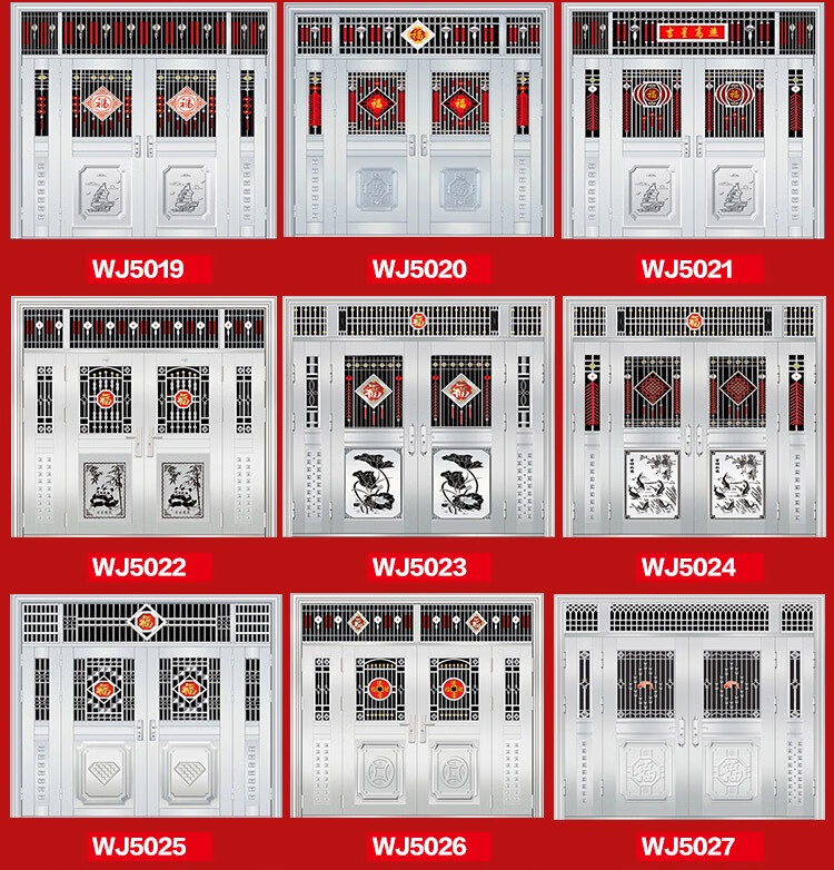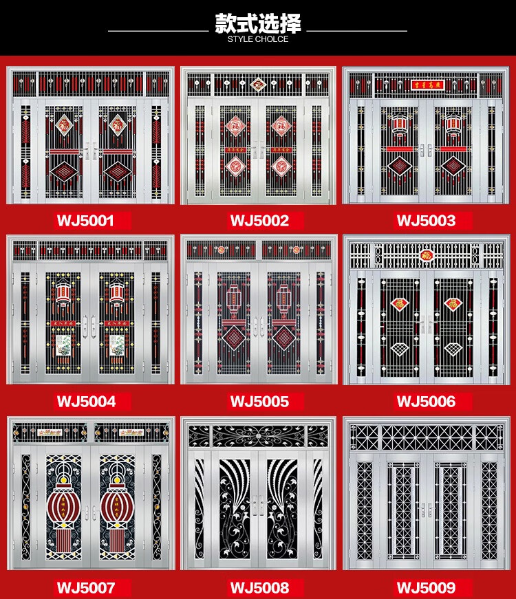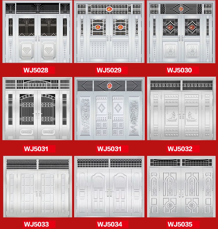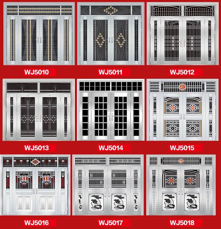 304不锈钢门农村自建房进户大门双开门玻璃入户不锈钢防盗门家用 钢灰色款式9905
