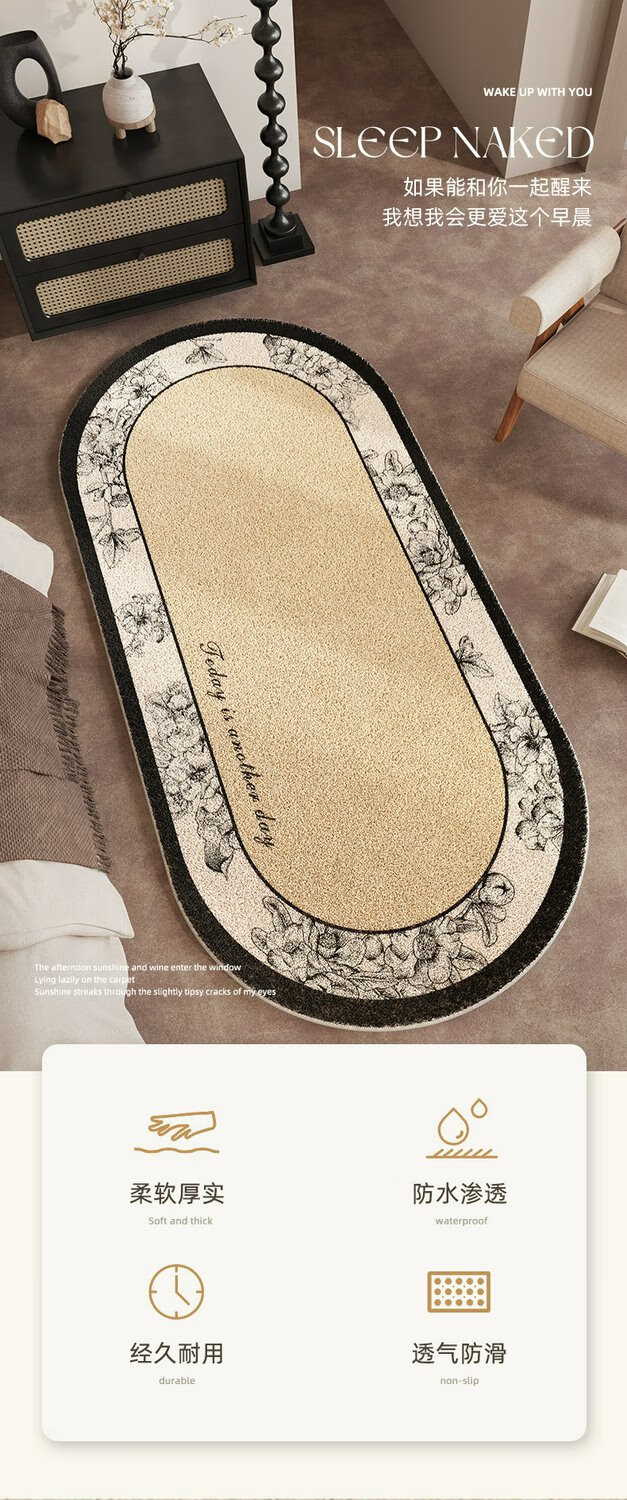 地毯卧室床边毯免洗可擦法式房间沙发茶几毯家用隔音地垫加厚防滑 晴鸢-14116 120x240cm