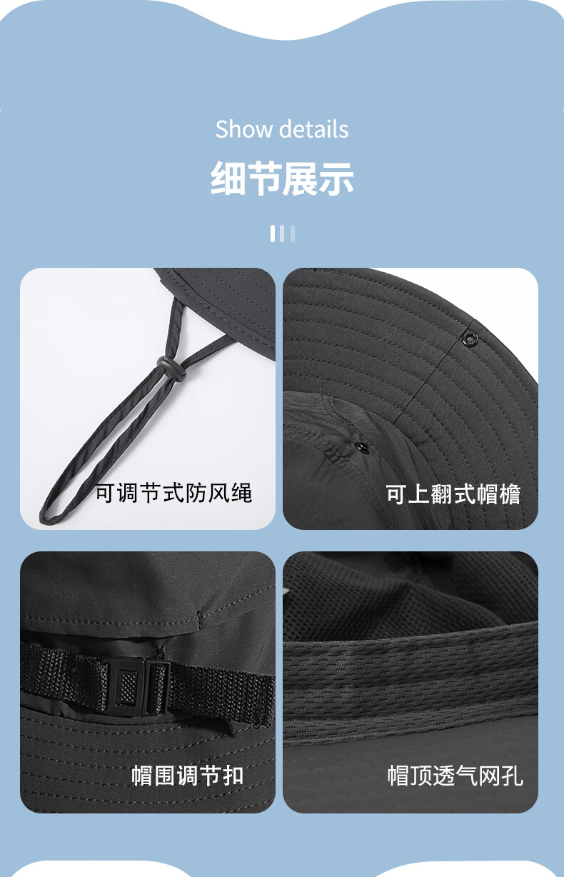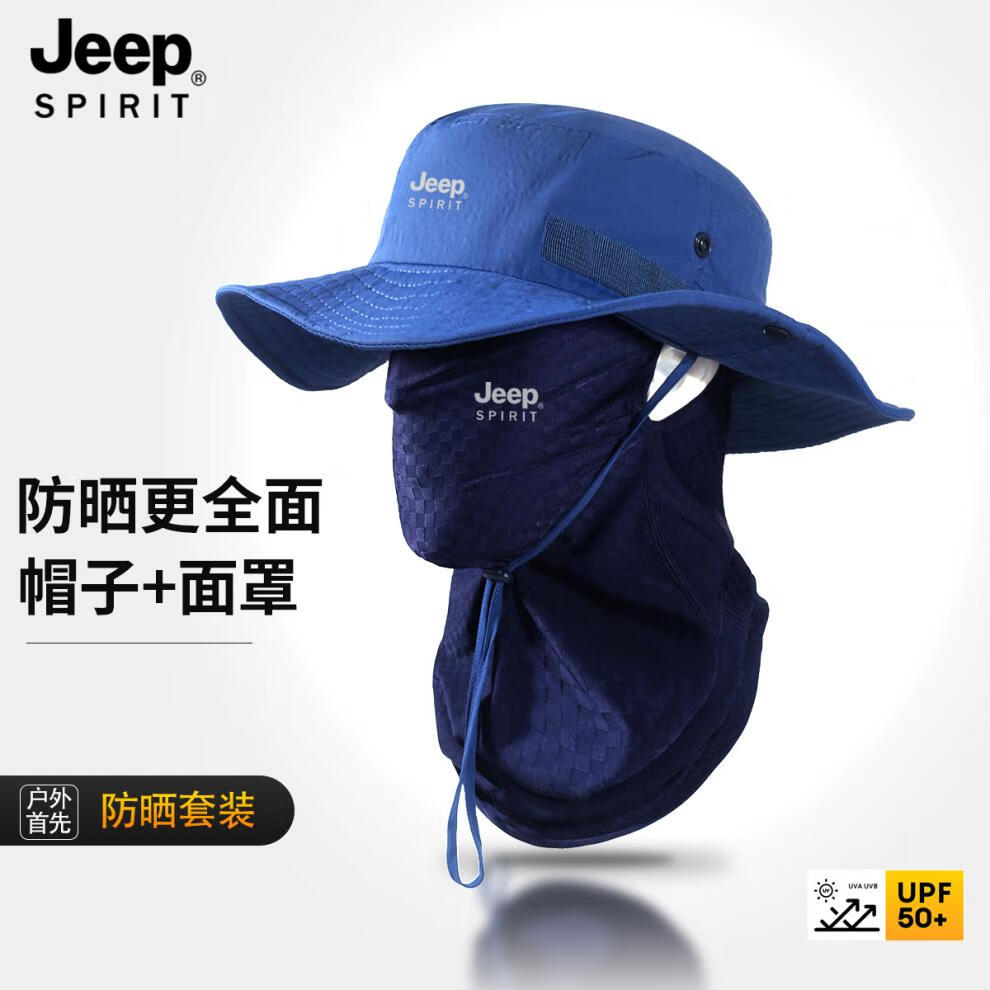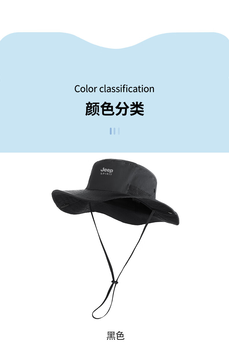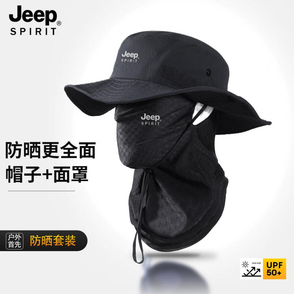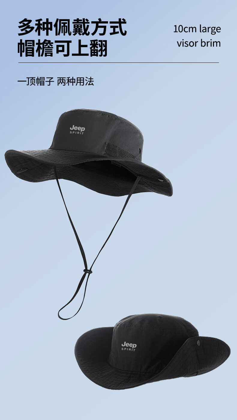 JEEP SPIRITJeep Men's Fisherman Hat Outdoor Sun Protection Sun Hat Summer New Style Dark Gray Three-piece Set 687 Adjustable