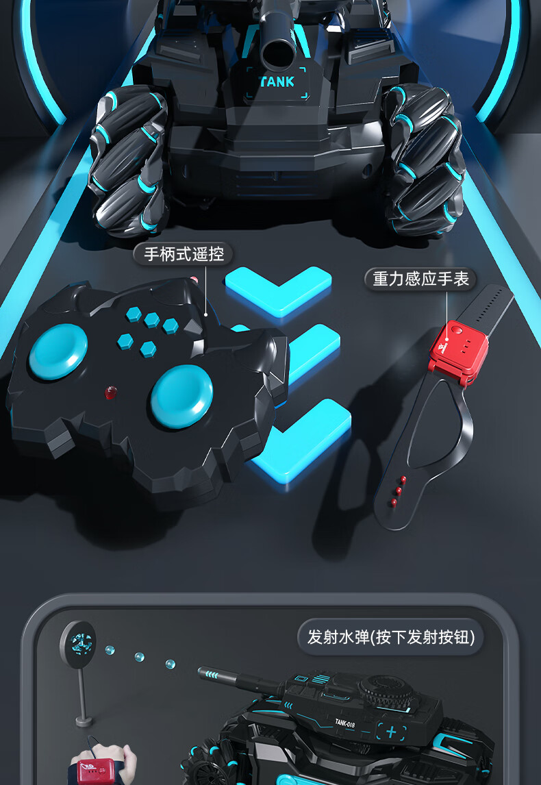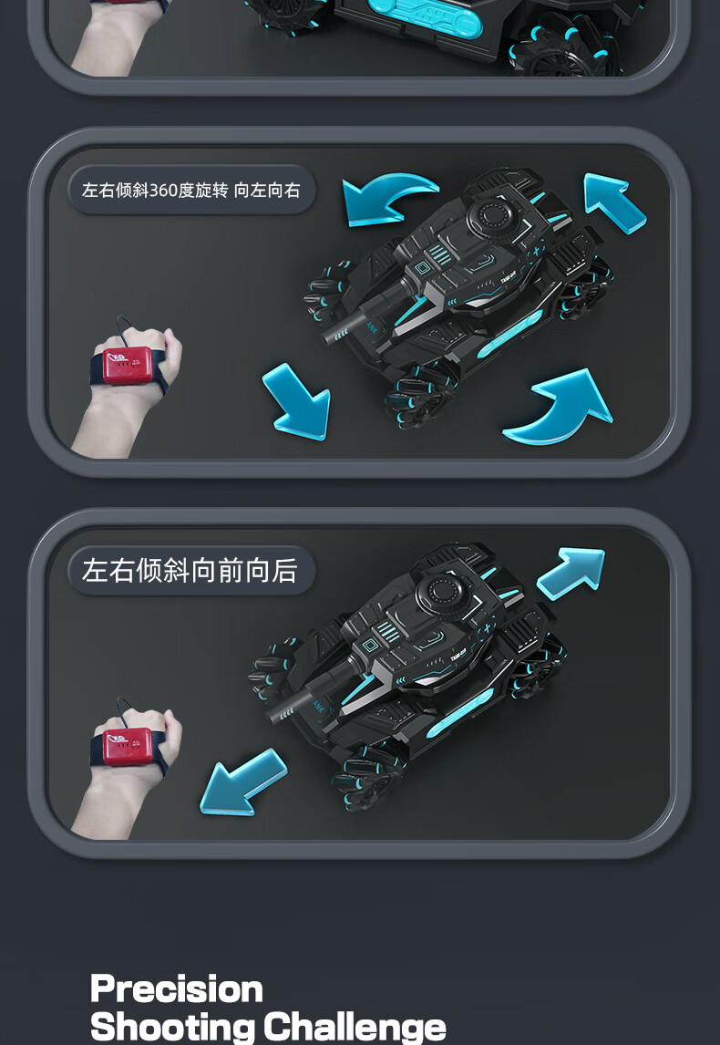 HGQ British brand remote control car with shooting gesture sensor tank children's toy boy birthday gift medium size - black and green official standard