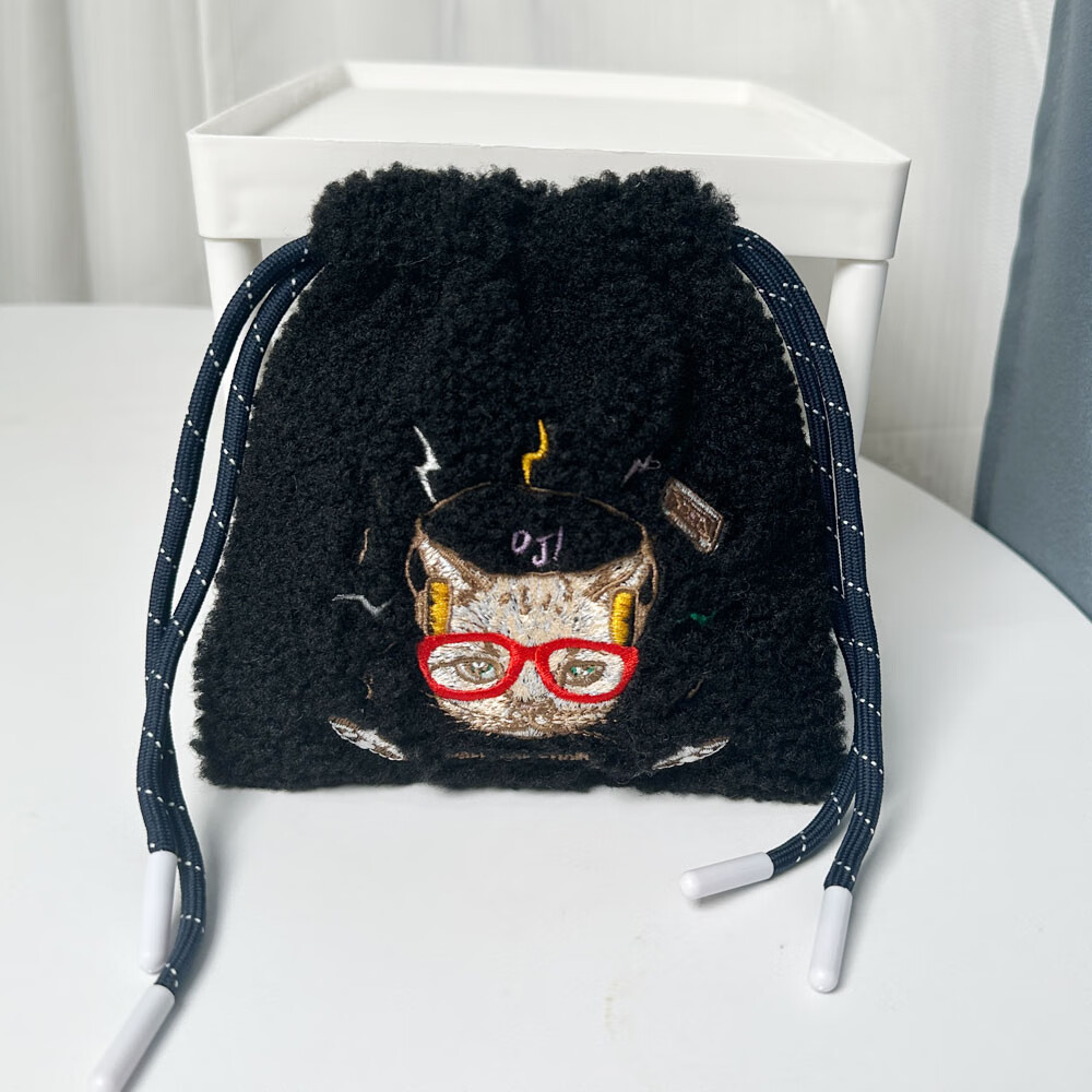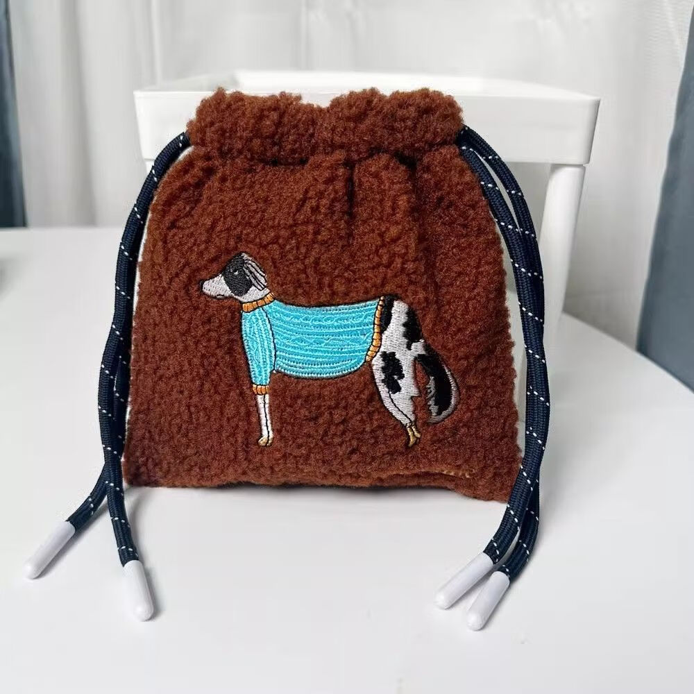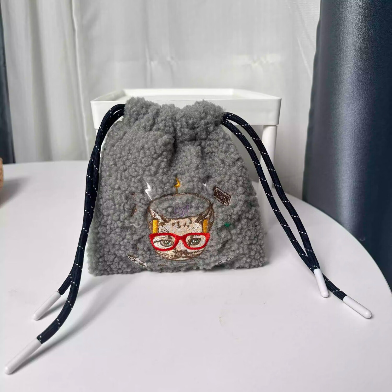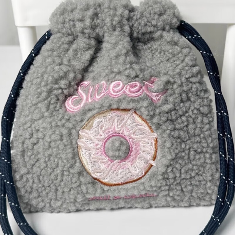 小众设计羊羔毛刺绣手拿钥匙口号零钱包 灰色甜甜圈【小收口袋】/ mini