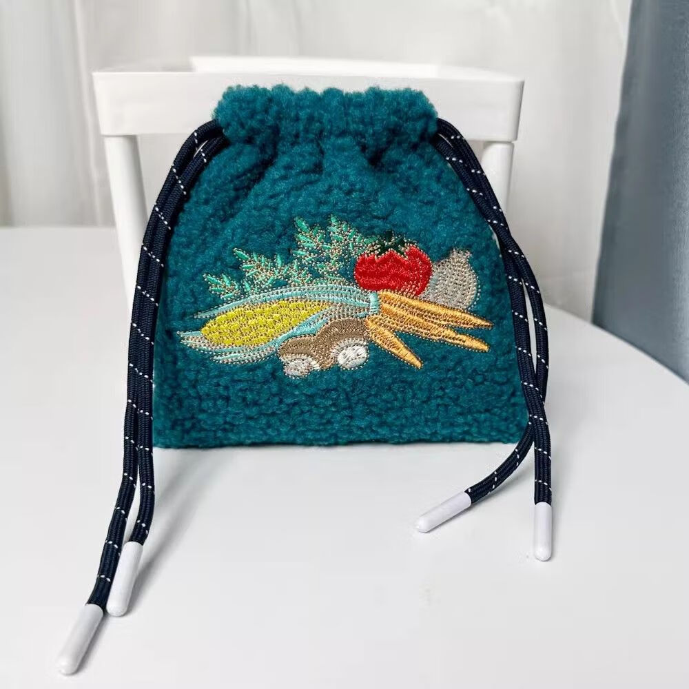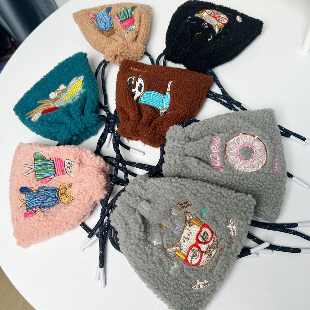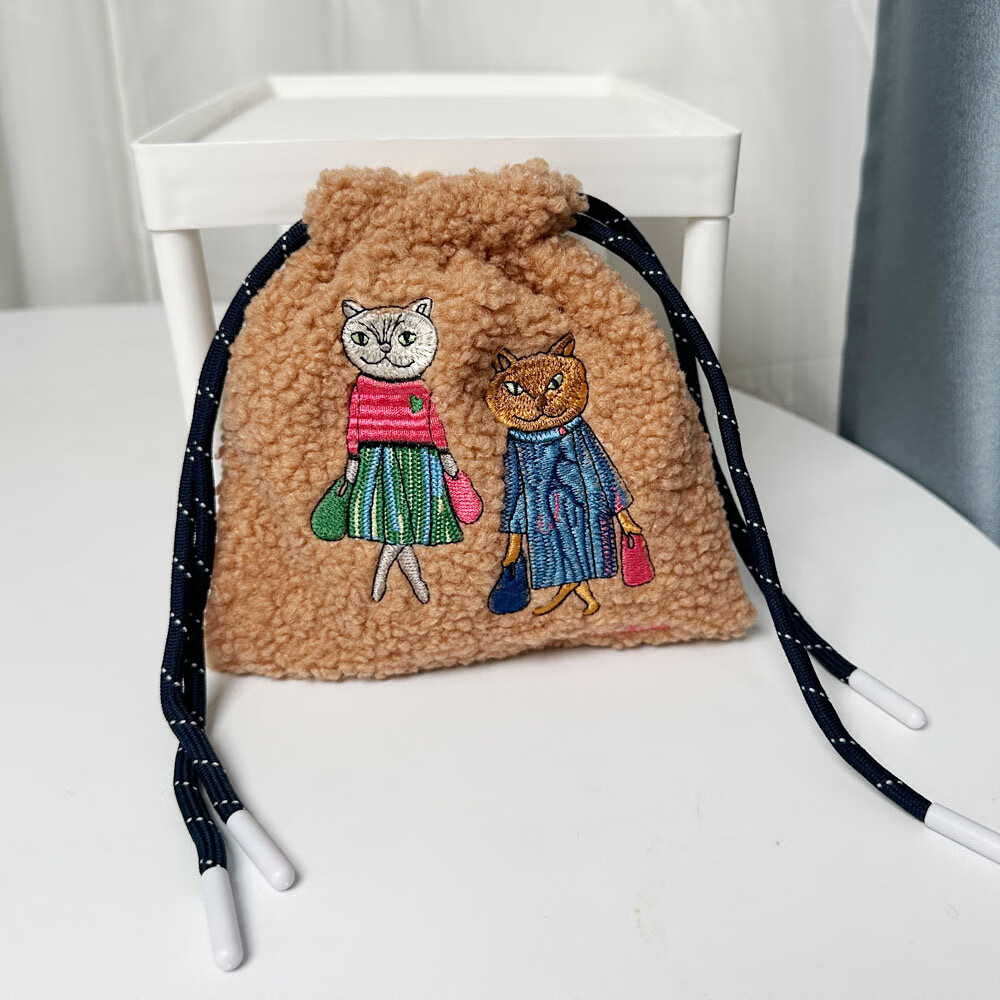 小众设计羊羔毛刺绣手拿钥匙口号零钱包 灰色甜甜圈【小收口袋】/ mini