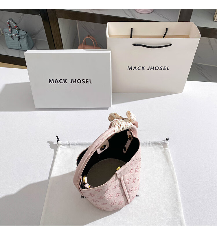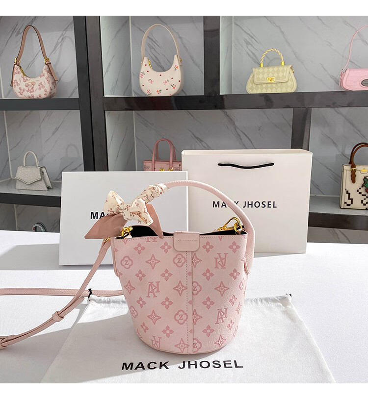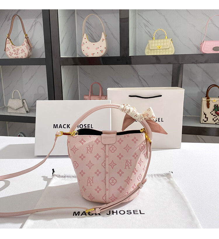 彼岸鸟礼物轻奢真皮包包女包粉色印花水桶包大容量单肩包斜挎包通勤 粉色