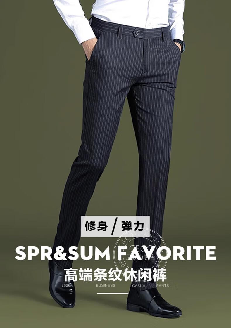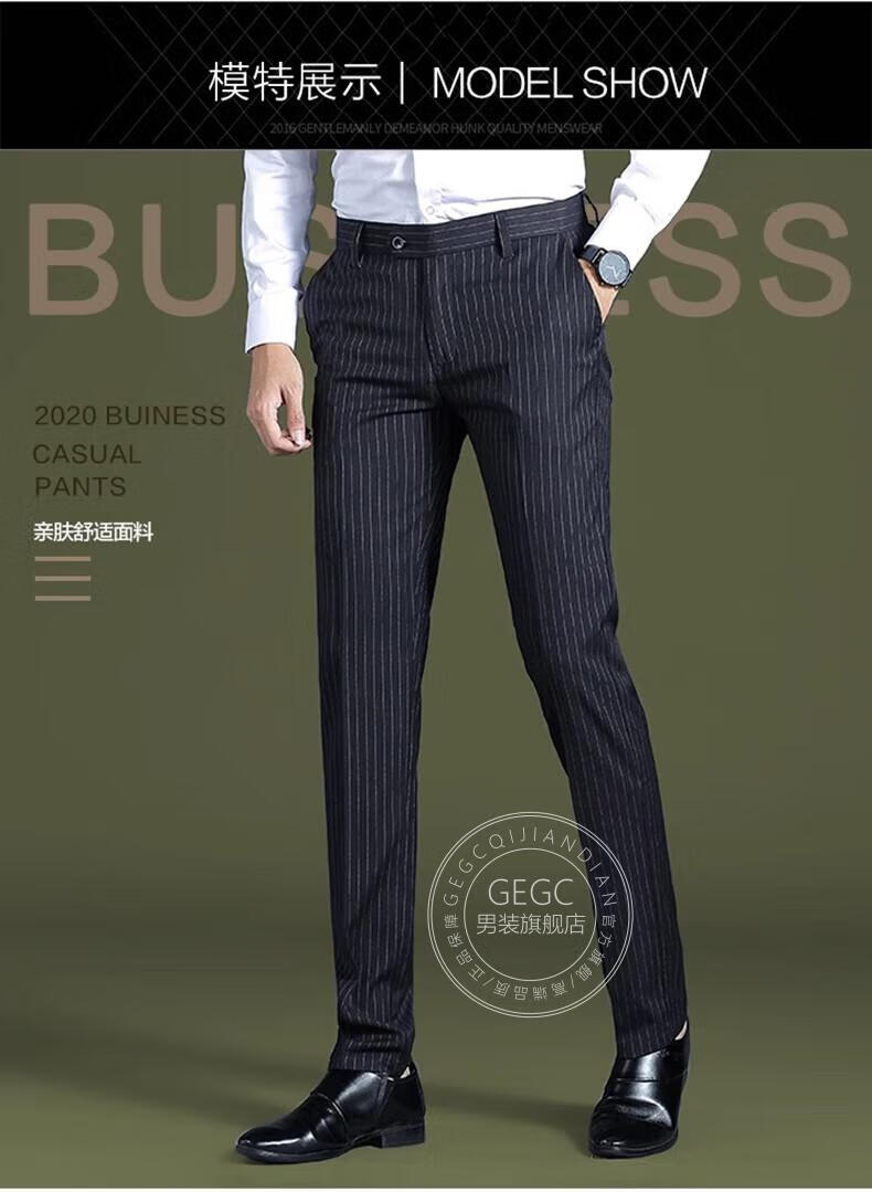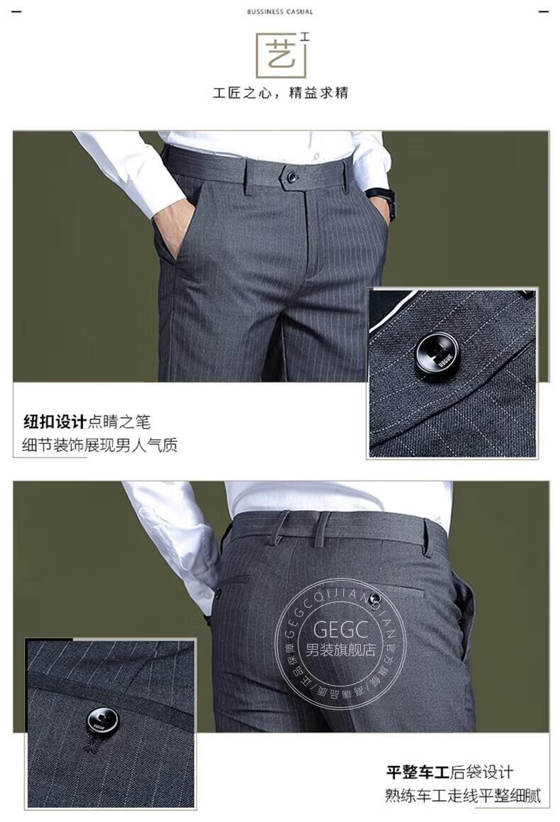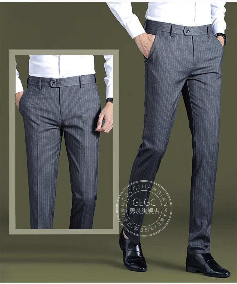 GEGC男装品牌休闲男2025夏季新款男士西裤子条纹直筒弹力西装裤 9902-条纹灰色-夏季薄款 29 二尺二