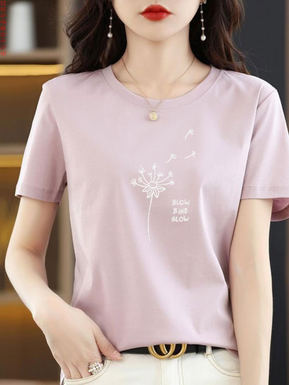 皮尔卡丹(pierre cardin)纯棉短袖t恤女士宽松简约气质减龄粉色体恤小衫夏装2025新款上衣 6172灰粉+6160白色 M 80-105斤