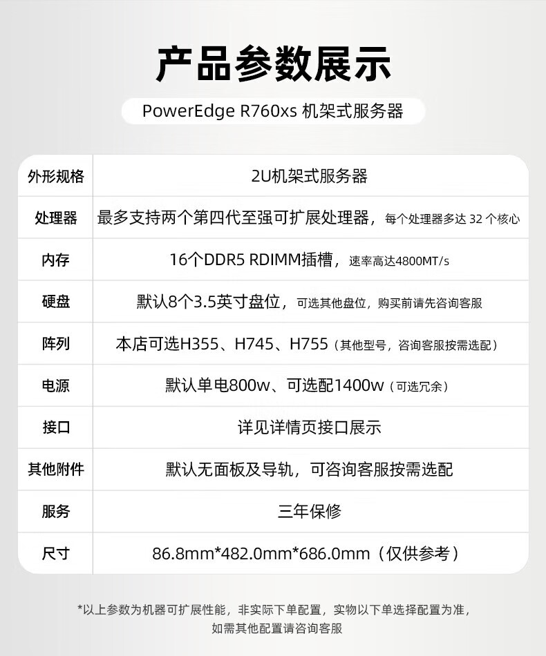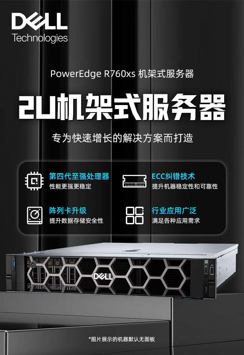 戴尔(DELL)PowerEdge R760XS 2U机架式服务器虚拟化主机GPU显卡DeepSeek本地部署 2*银牌4410Y【24核 48线程】 128G丨2*480G+6*2.4T丨H755