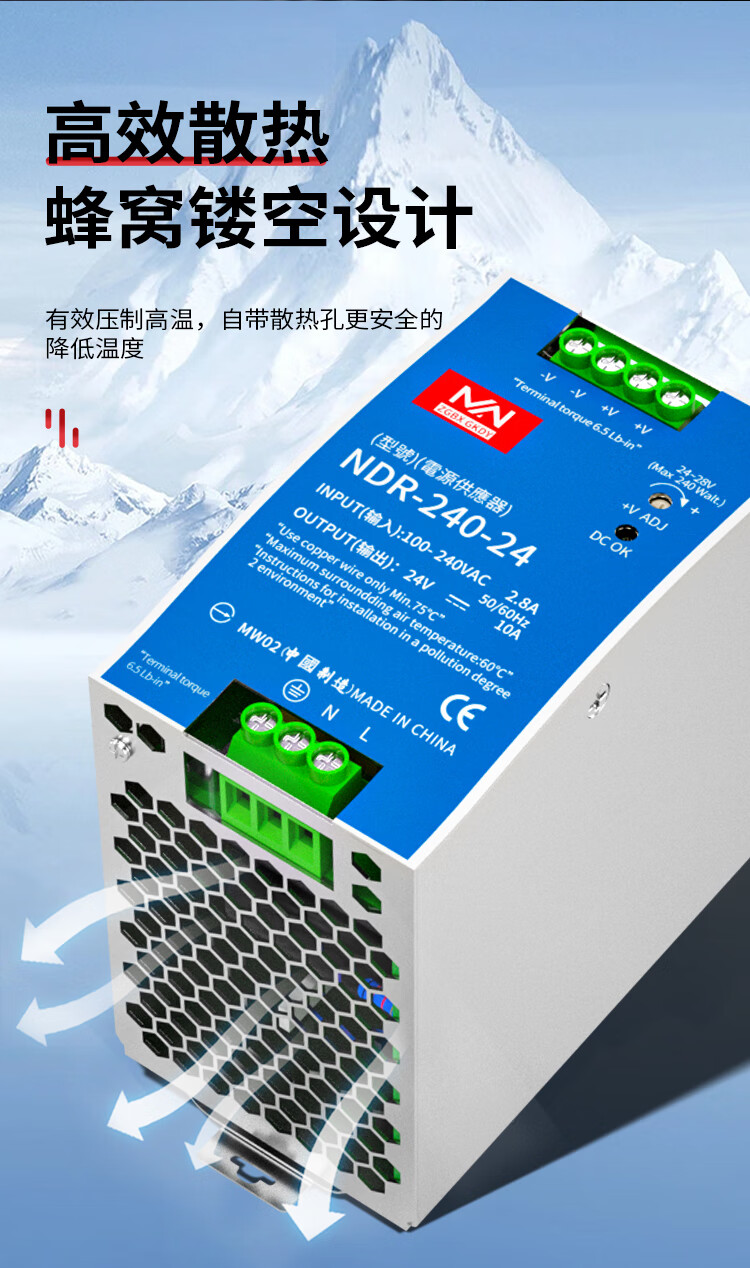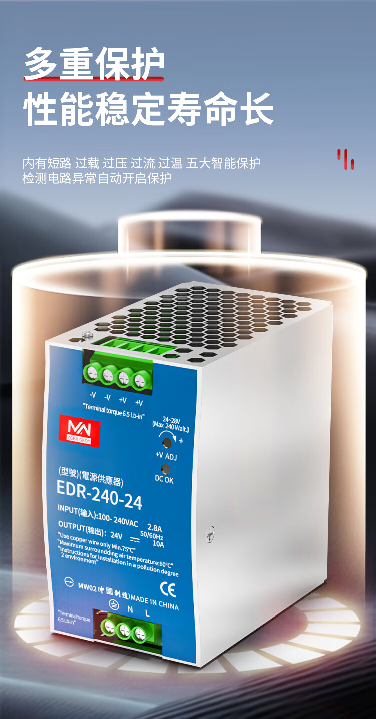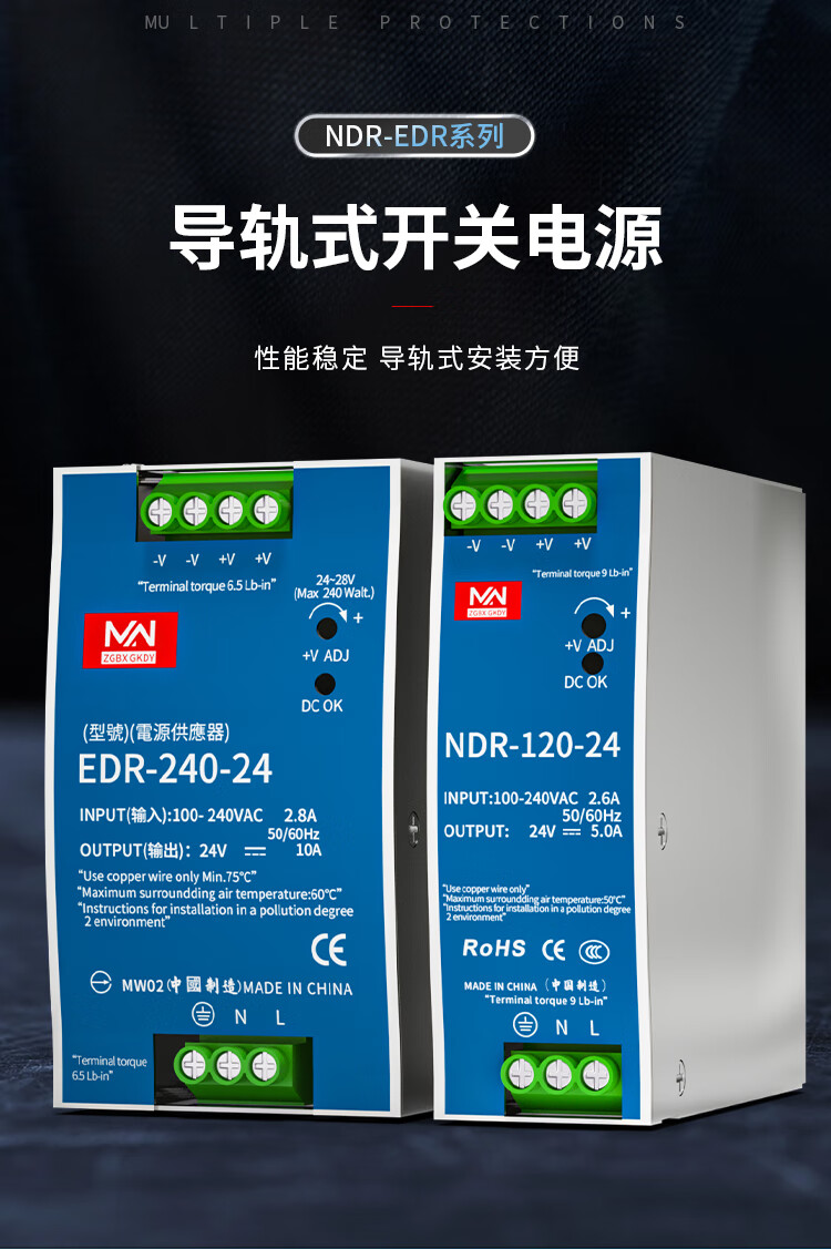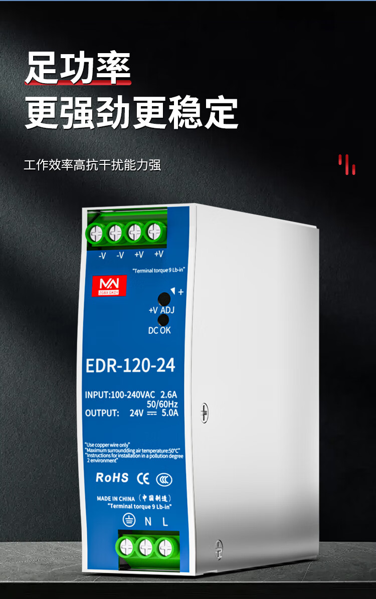 明纬百鑫NDR/EDR-75/120/150/240-24V5A直流导轨开关电源24V10A12 NDR48024V