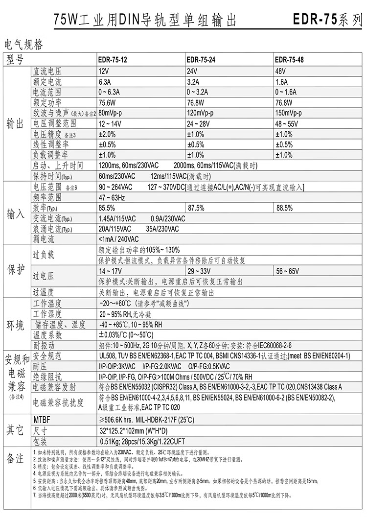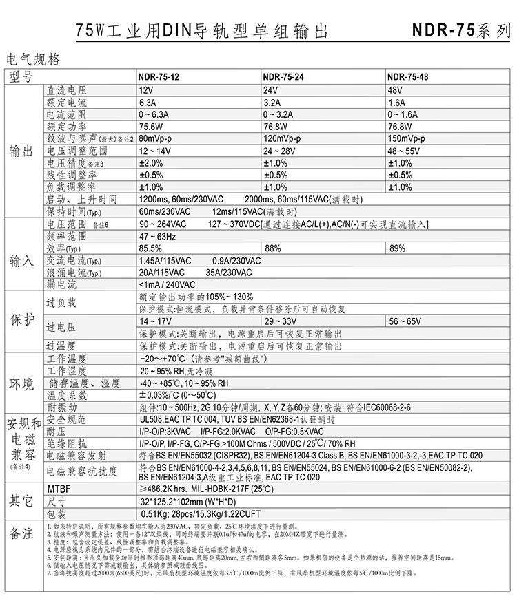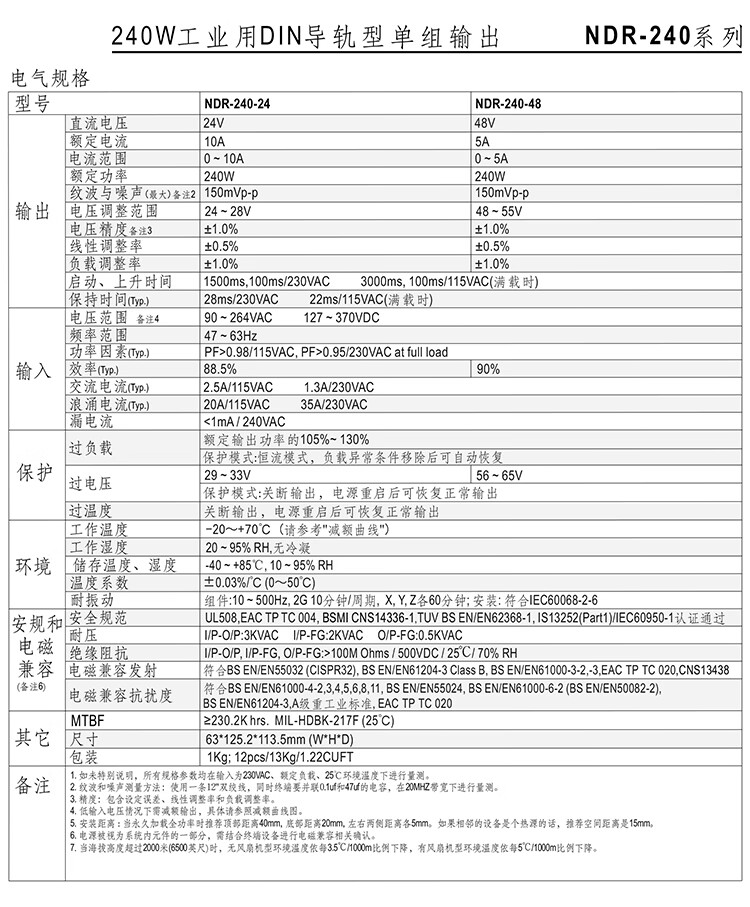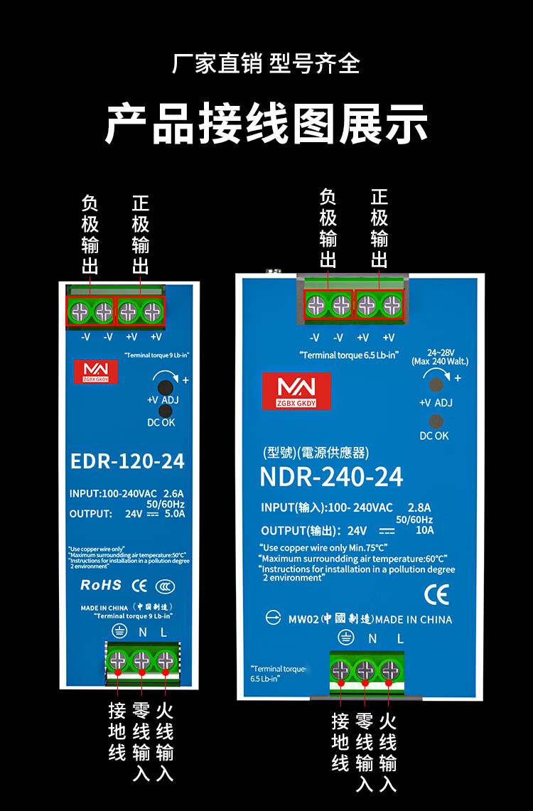 明纬百鑫NDR/EDR-75/120/150/240-24V5A直流导轨开关电源24V10A12 NDR48024V