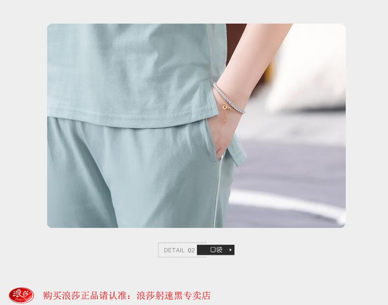 LangSha pyjamas pour femmes été pur coton 2025 nouveau pantalon à manches courtes vêtements de maison costume peut être porté à l'extérieur costume en coton mince 7374 poudre de pâte de haricot XL 120-140Jin Jin est égal à 0,5 kg