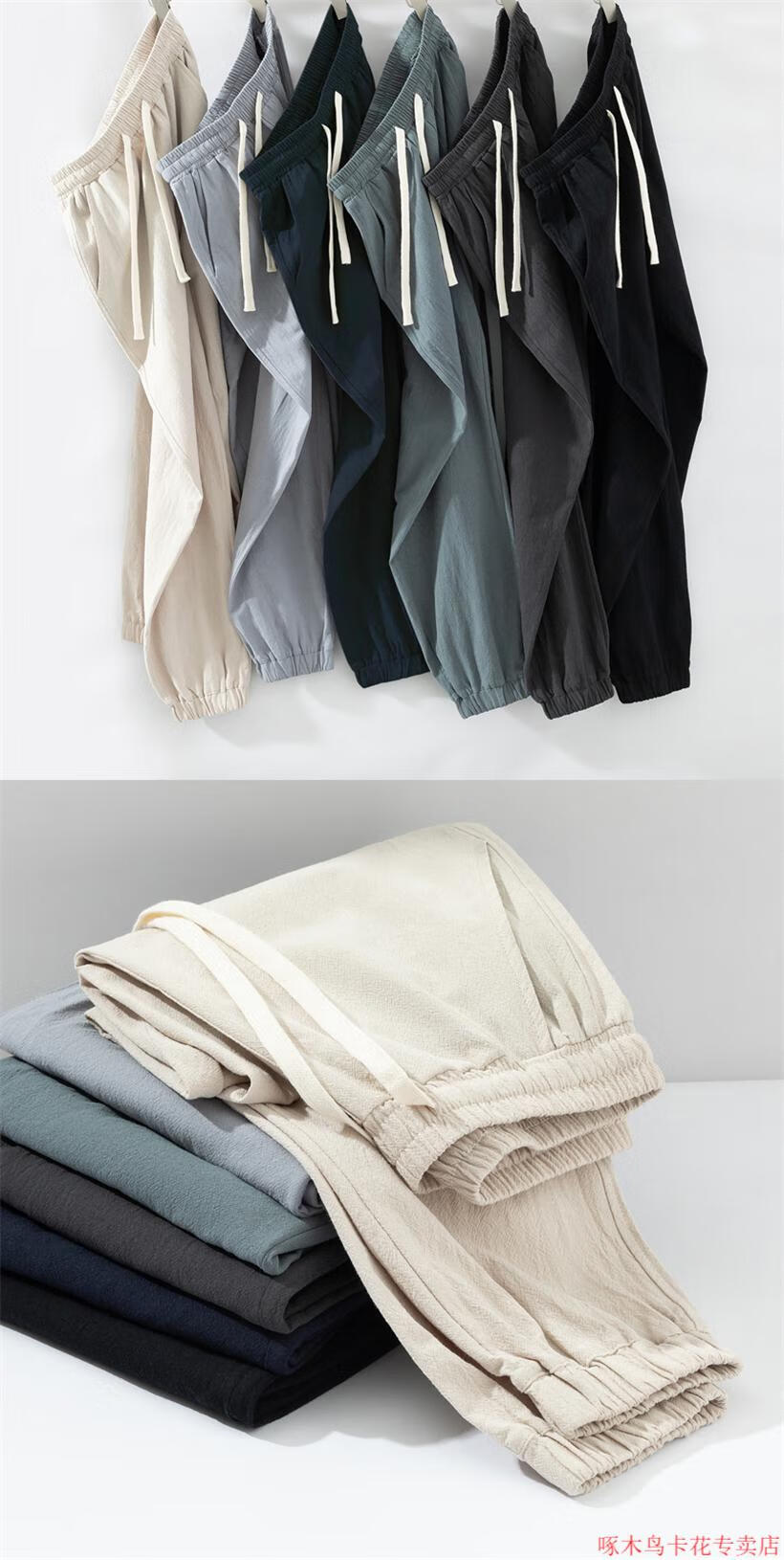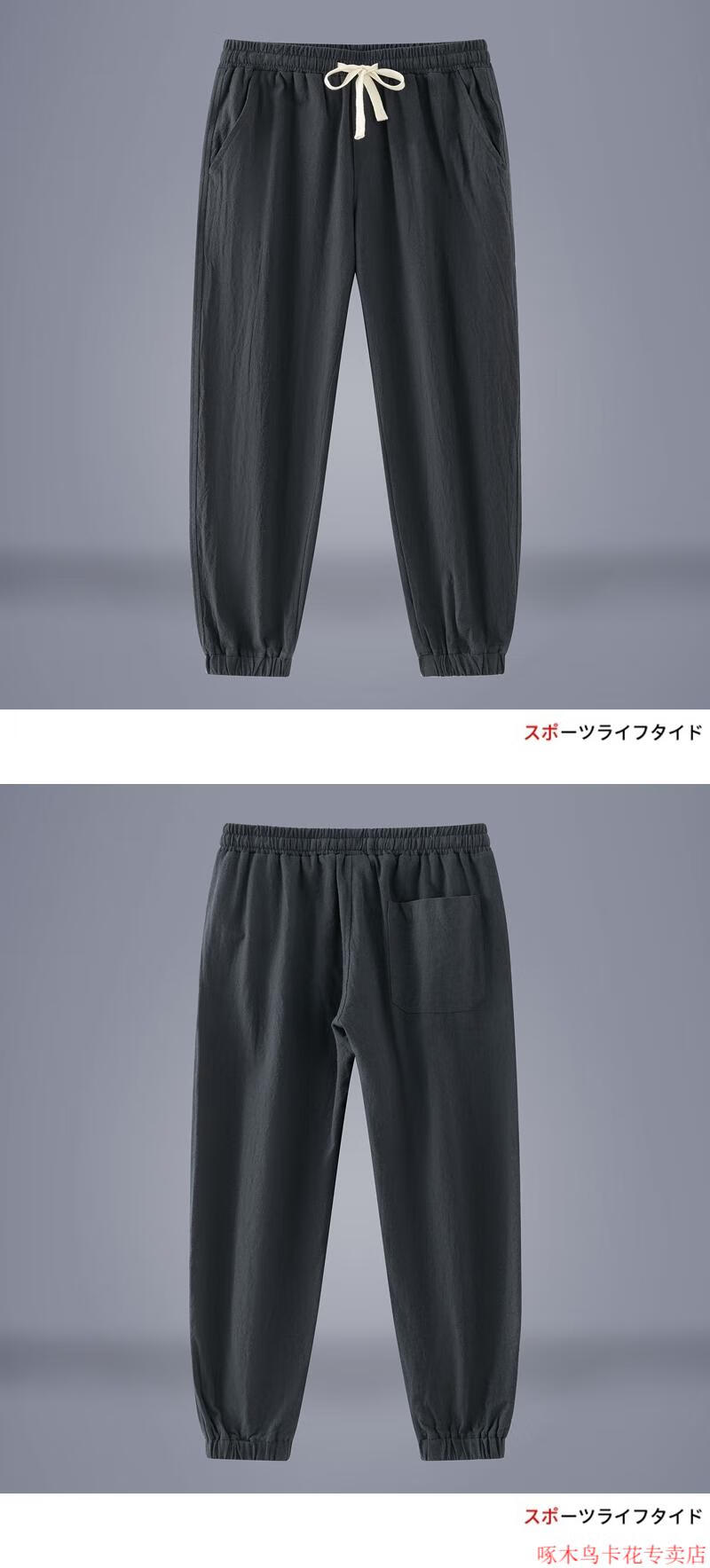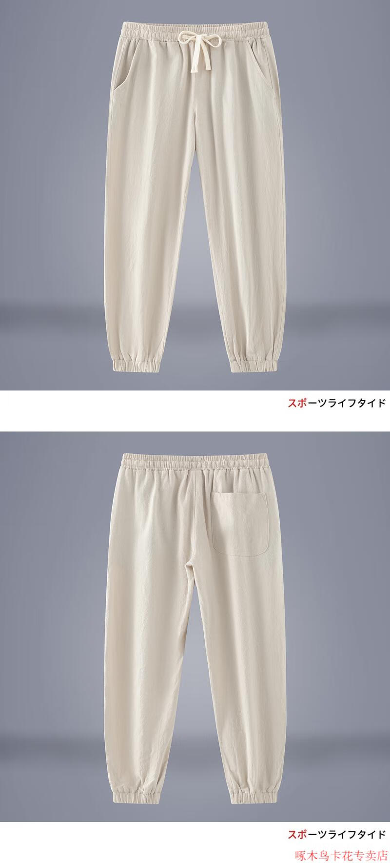 啄木鸟(TUCANO)亚麻裤子男夏季薄款棉麻裤中国风大码男裤束脚哈伦裤宽松休闲长裤 卡其色 M