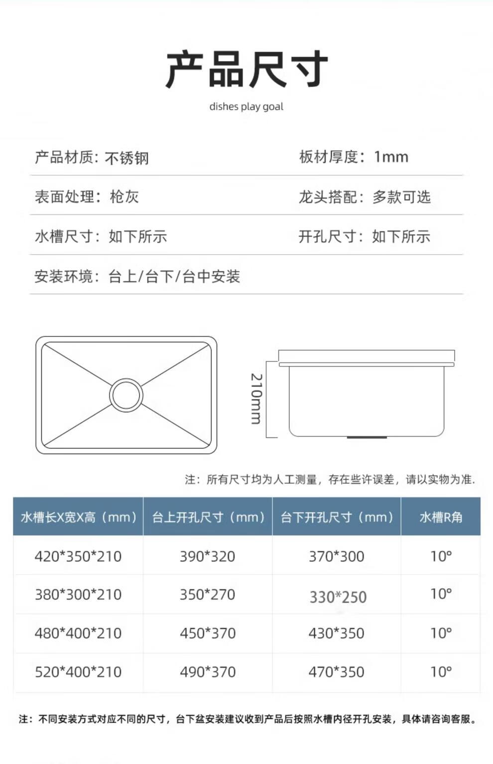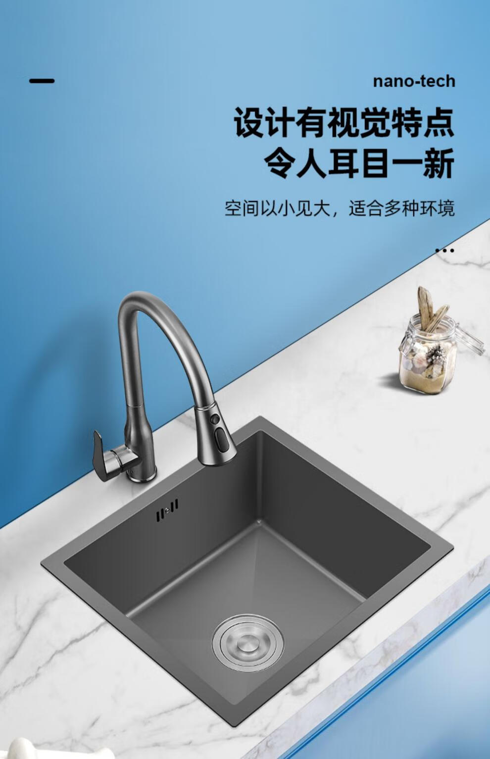 TOTOl【官方直销】吧台水槽枪灰色纳米单槽小尺寸手工槽304不锈钢 枪灰4840/无龙头