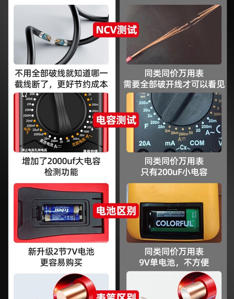 仁聚益万用表款全档防烧数字表维修电工专用高精度电压表 9205高端款加强套餐(送测电笔鳄