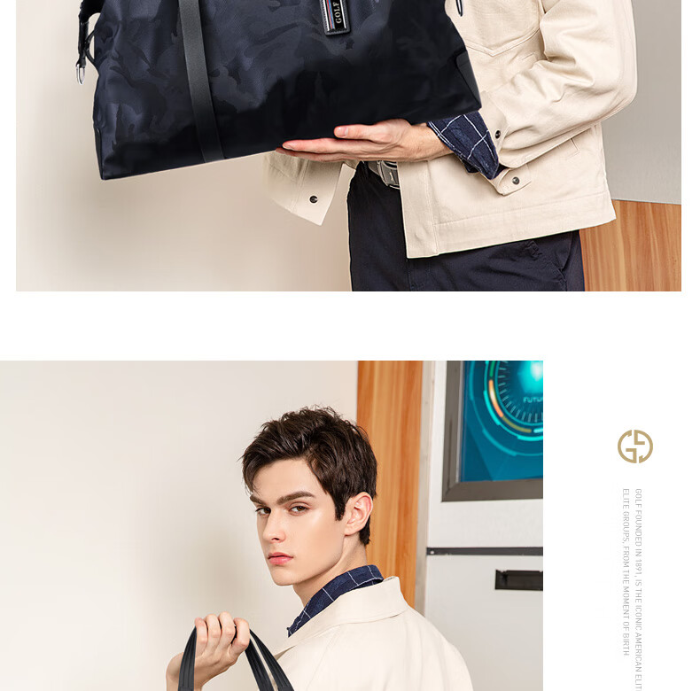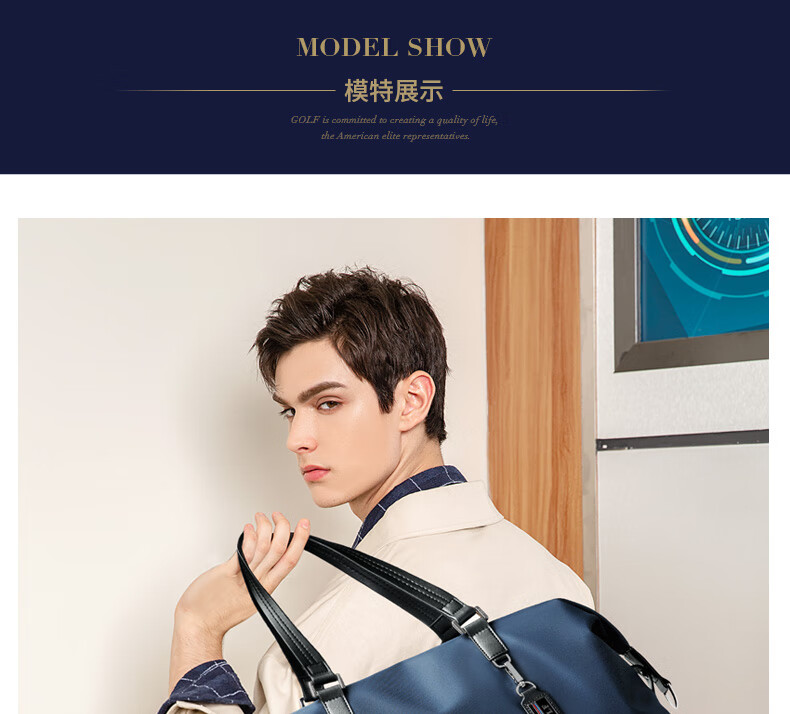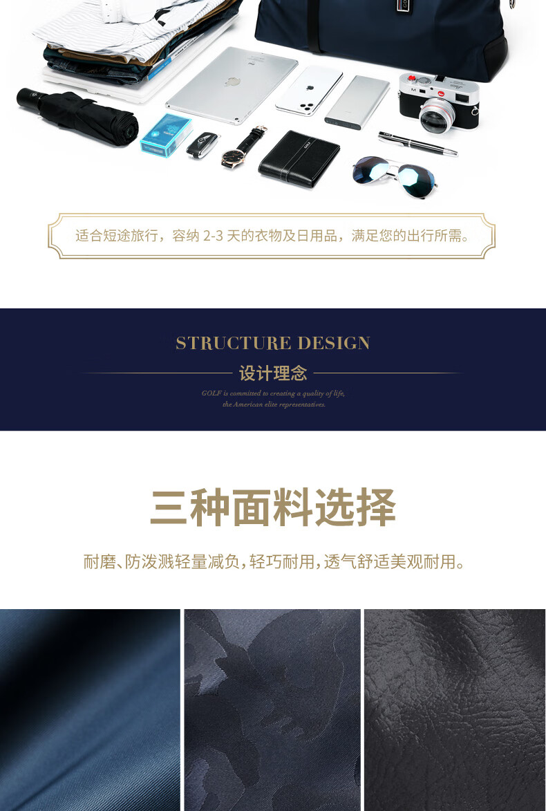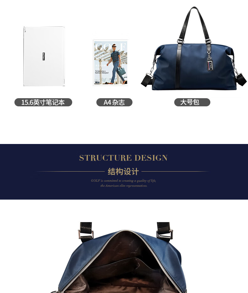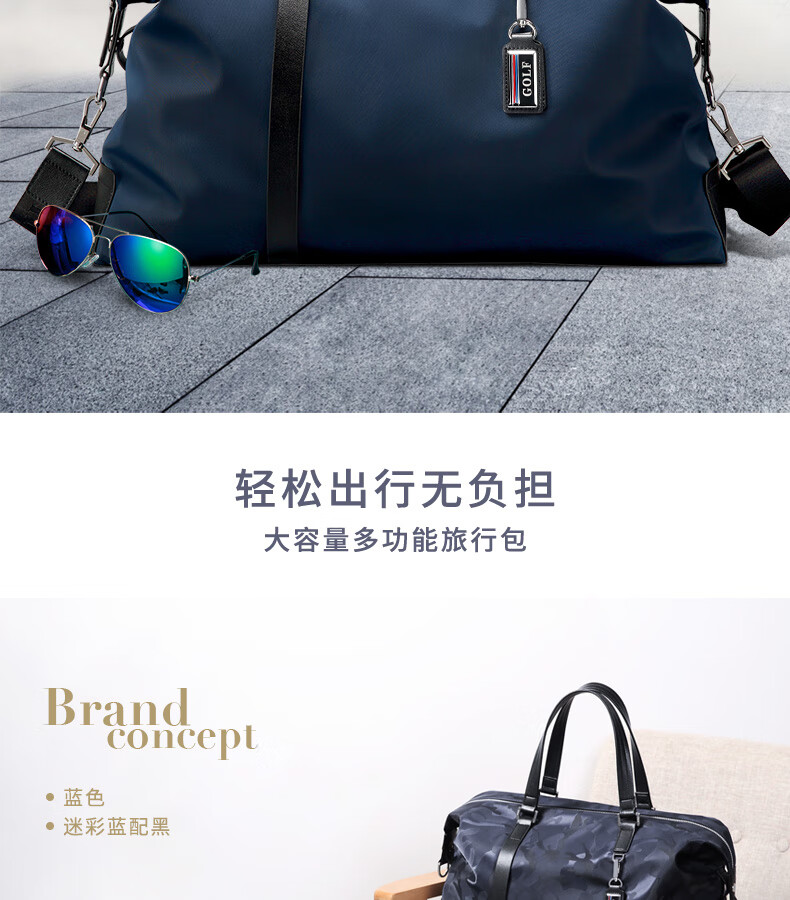 高尔夫(GOLF)男士旅行包大容量商务登机手提包迷彩健身包短途轻便行李袋女 蓝色. 大