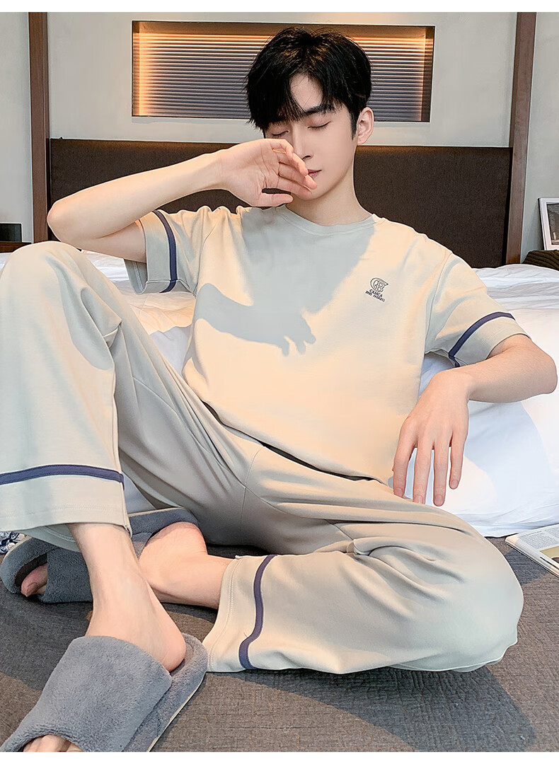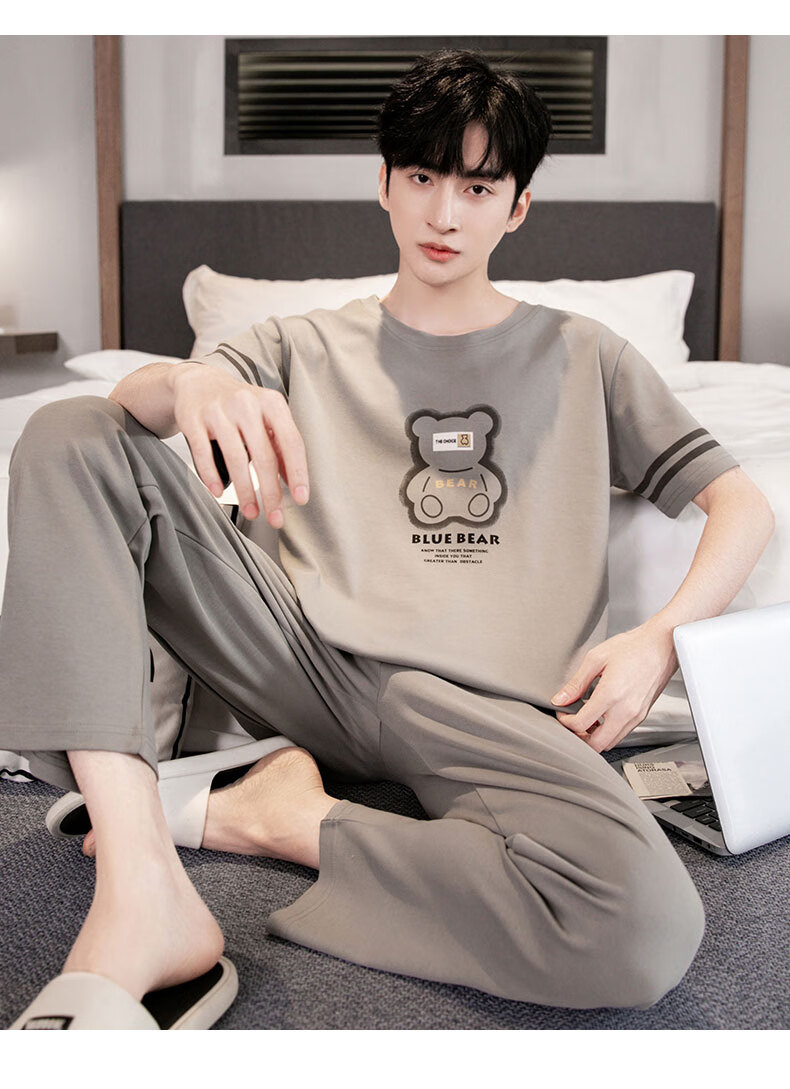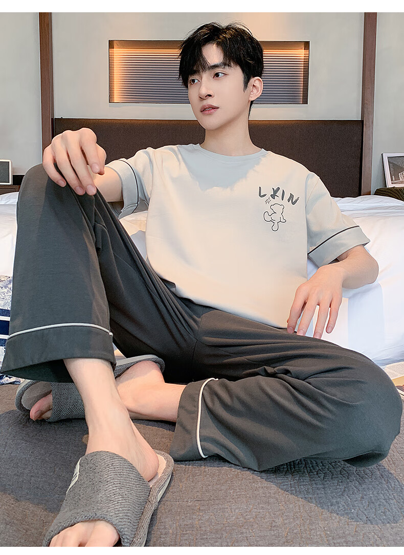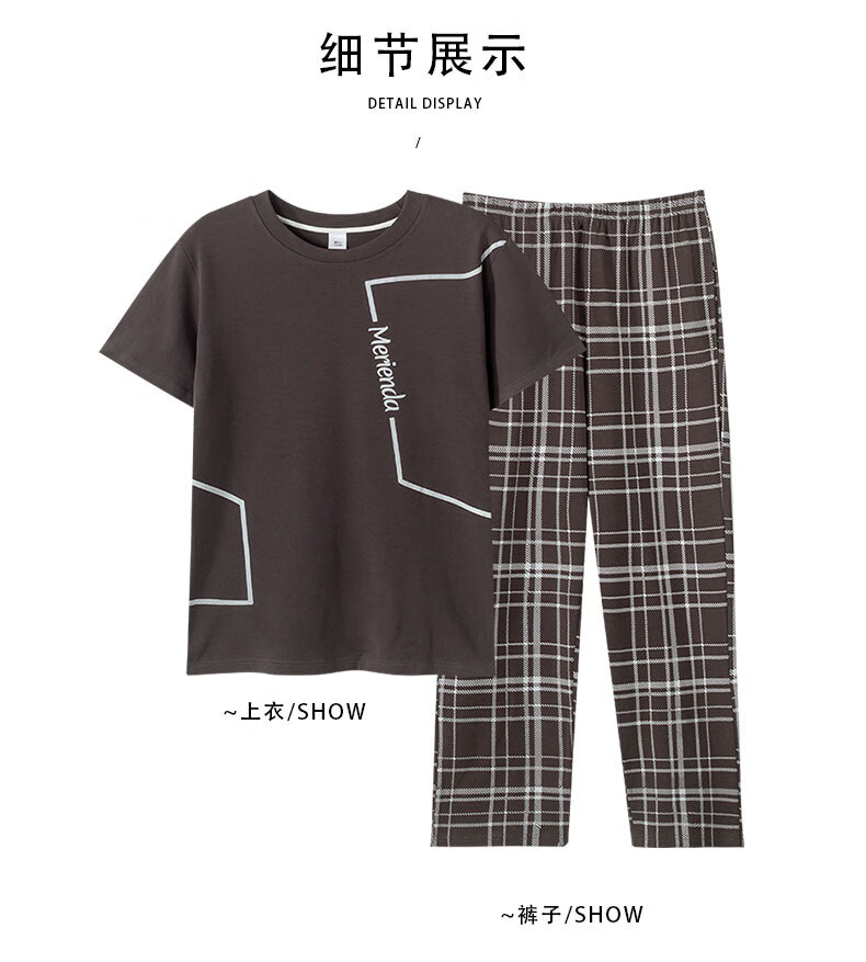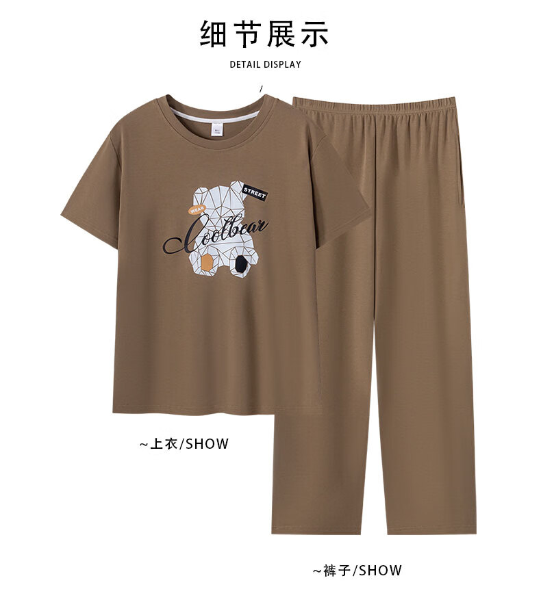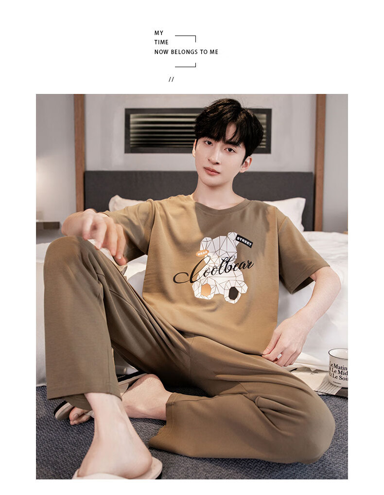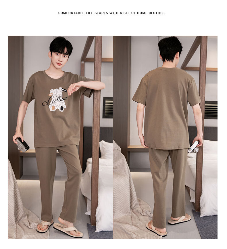LOYACKIND男士睡衣夏季薄款短袖长裤棉春秋棉色宽松青少年家居服套装 咖啡色 9207 L 【105-130斤】100棉派邦淇