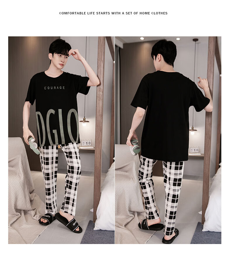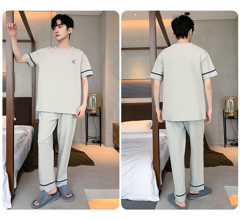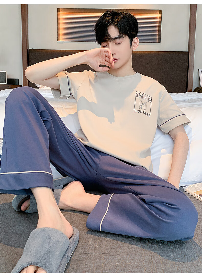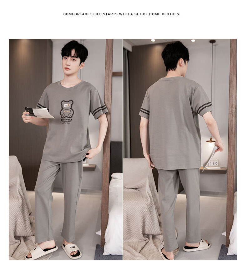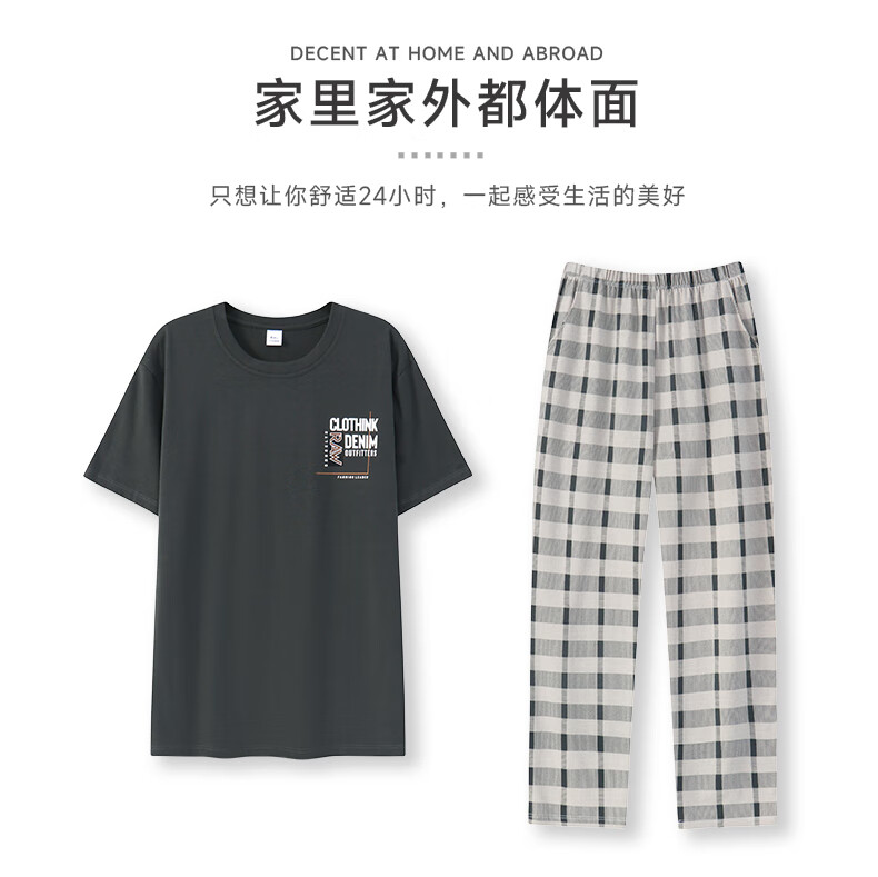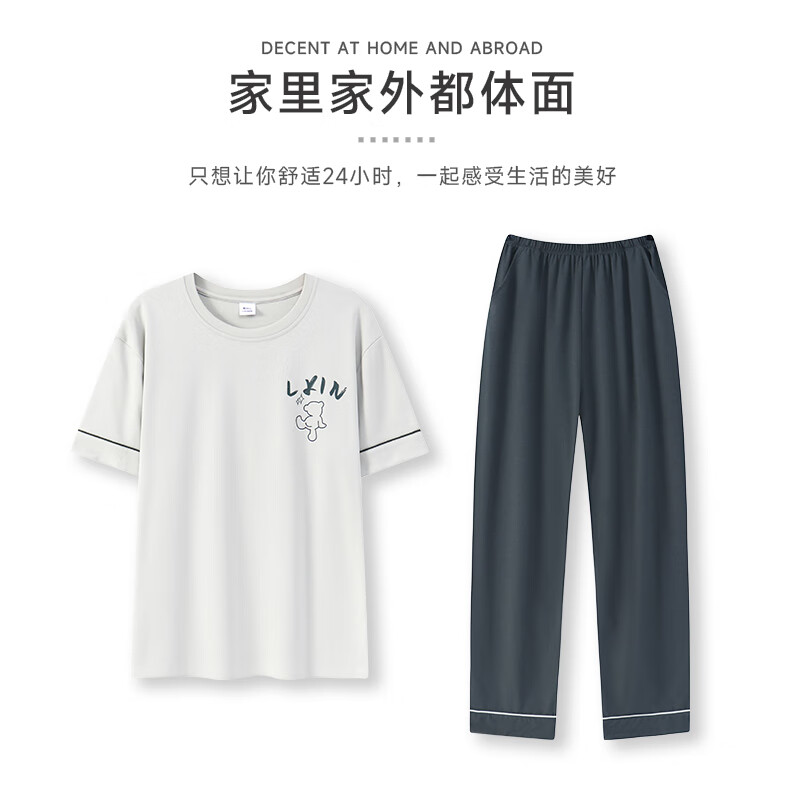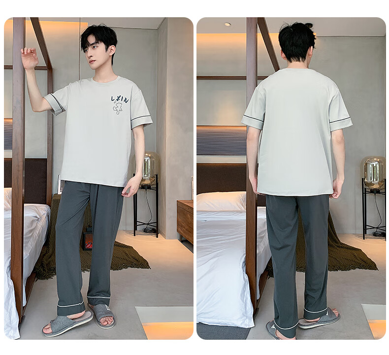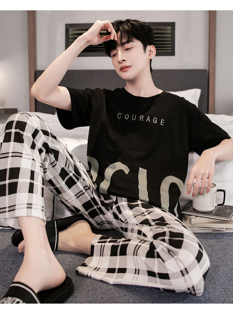 LOYACKIND男士睡衣夏季薄款短袖长裤棉春秋棉色宽松青少年家居服套装 咖啡色 9207 L 【105-130斤】100棉派邦淇