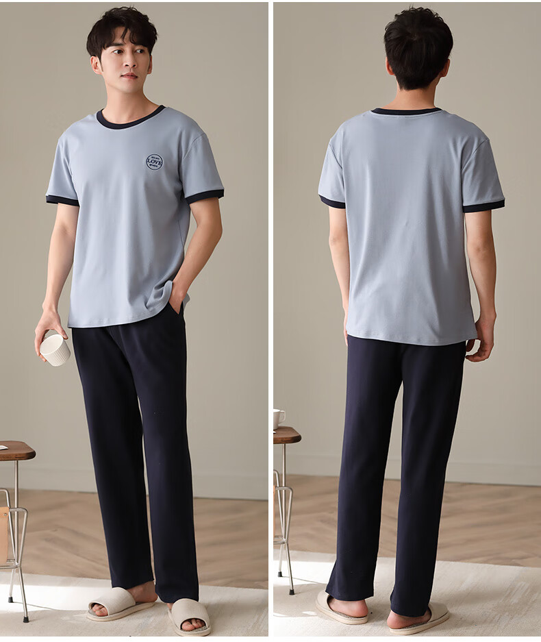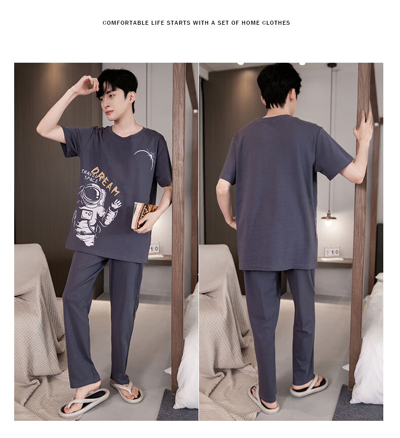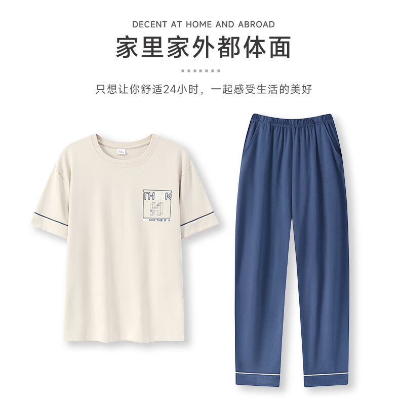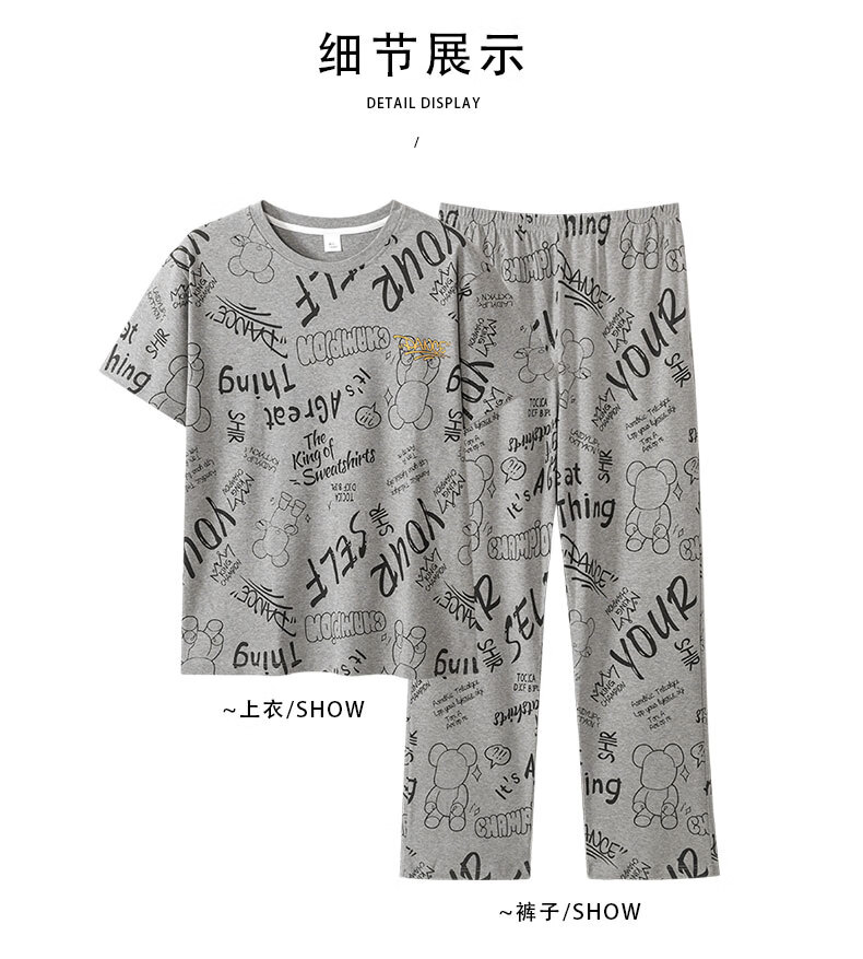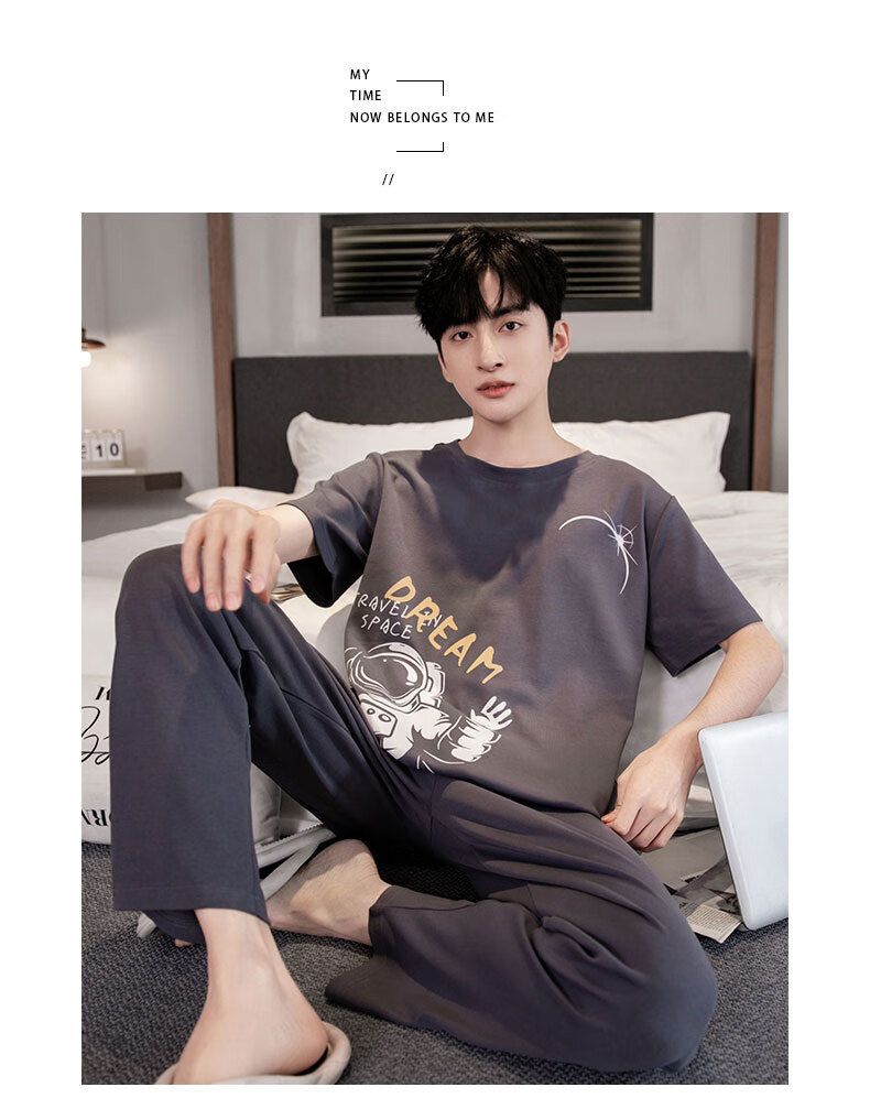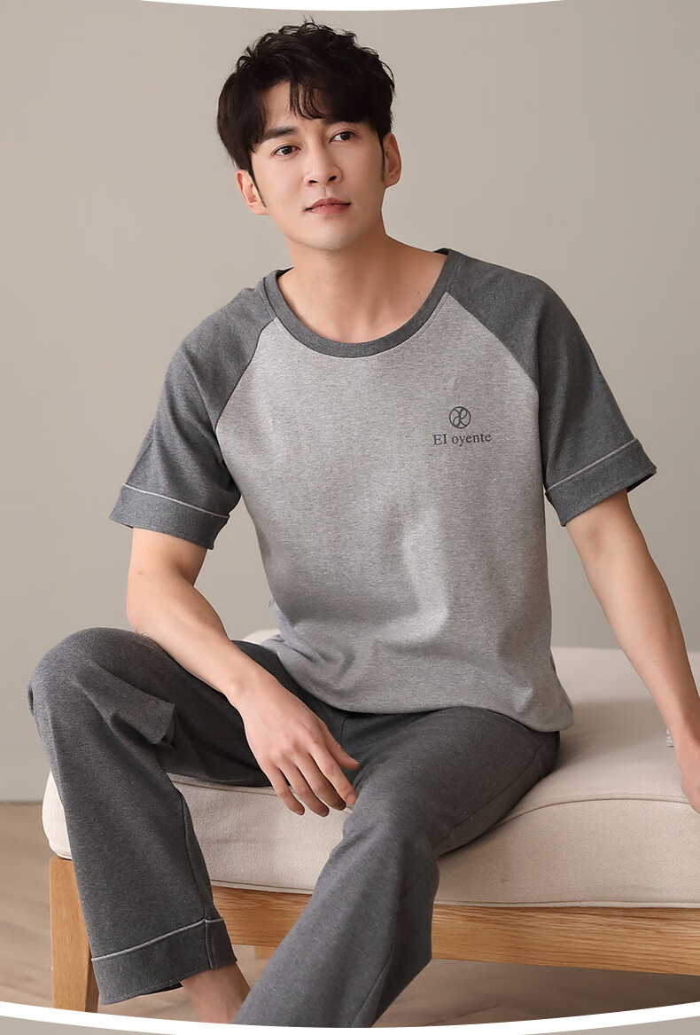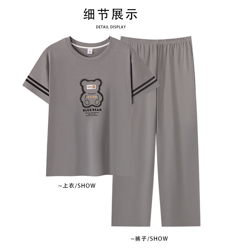 LOYACKIND男士睡衣夏季薄款短袖长裤棉春秋棉色宽松青少年家居服套装 咖啡色 9207 L 【105-130斤】100棉派邦淇