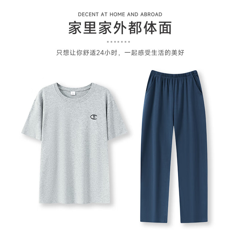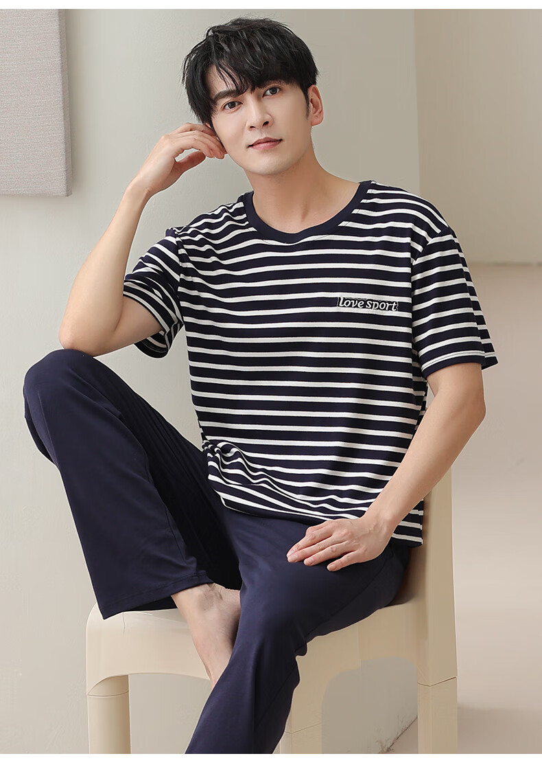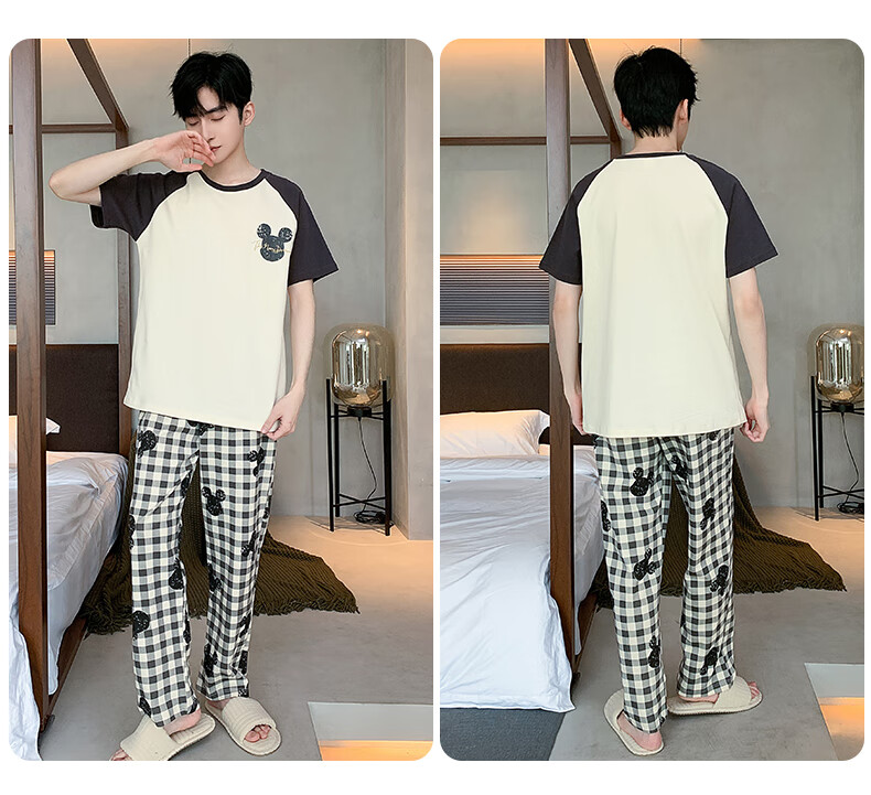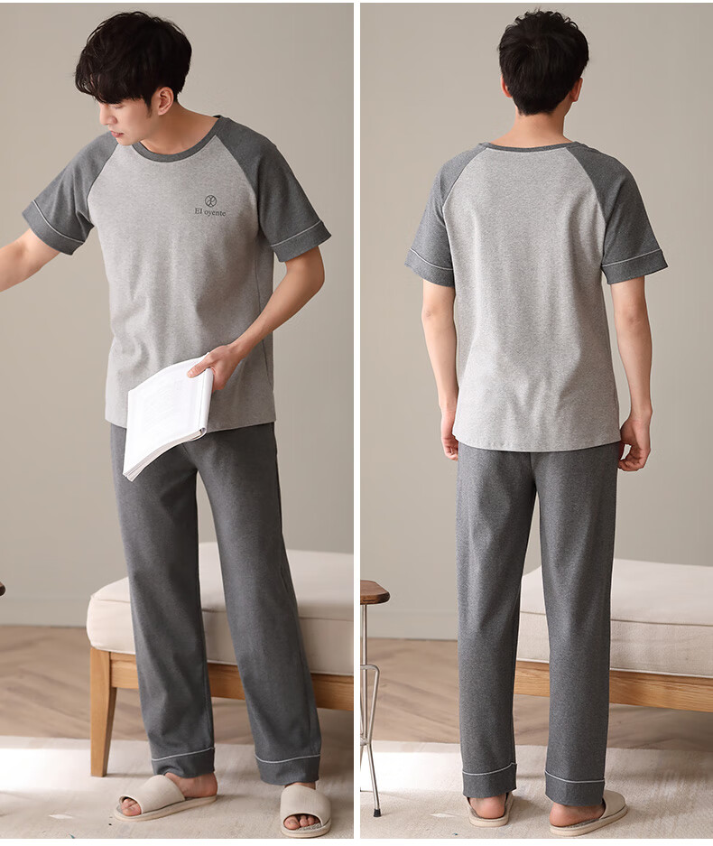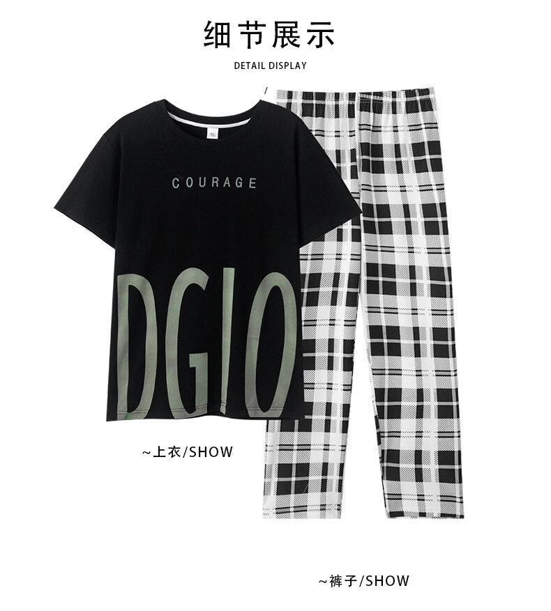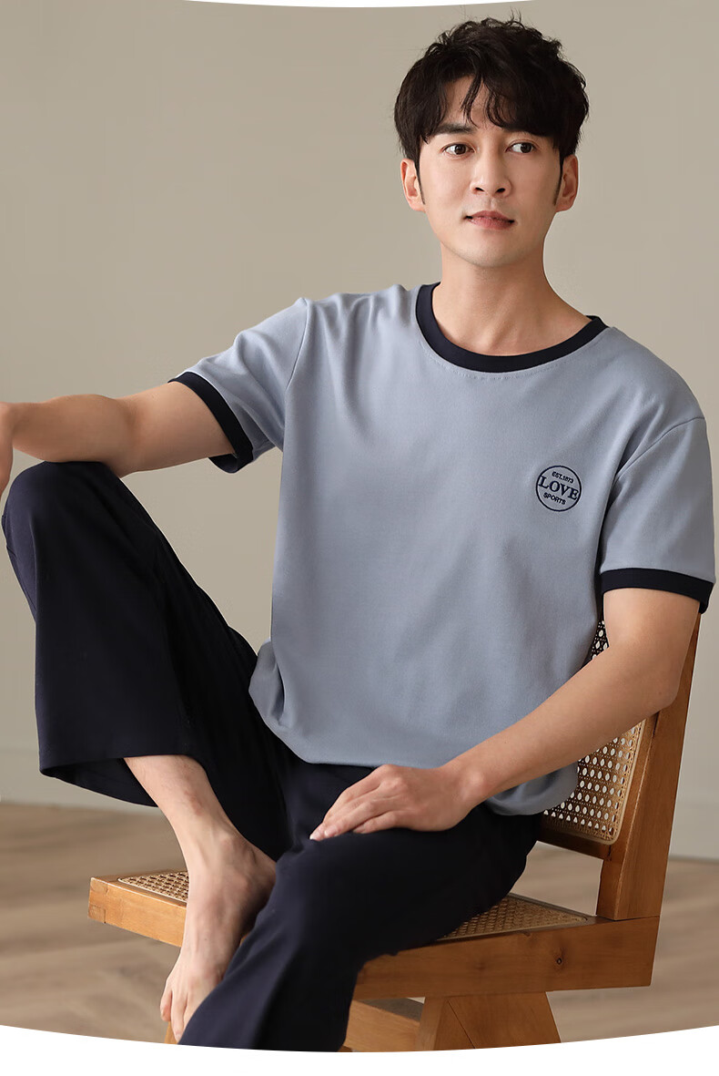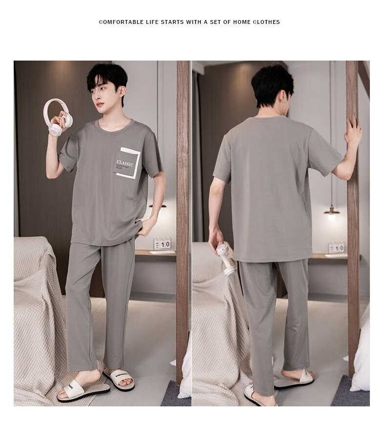LOYACKIND男士睡衣夏季薄款短袖长裤棉春秋棉色宽松青少年家居服套装 咖啡色 9207 L 【105-130斤】100棉派邦淇
