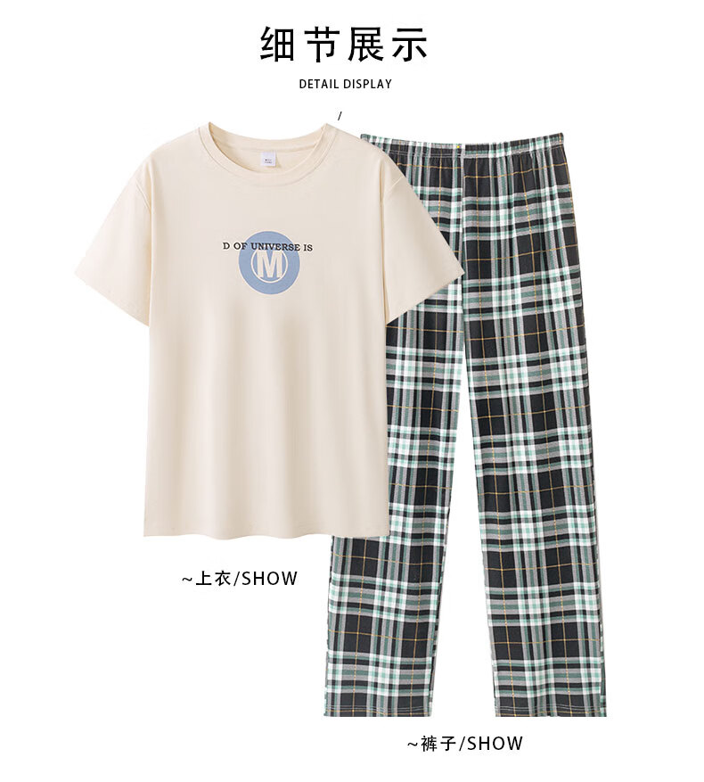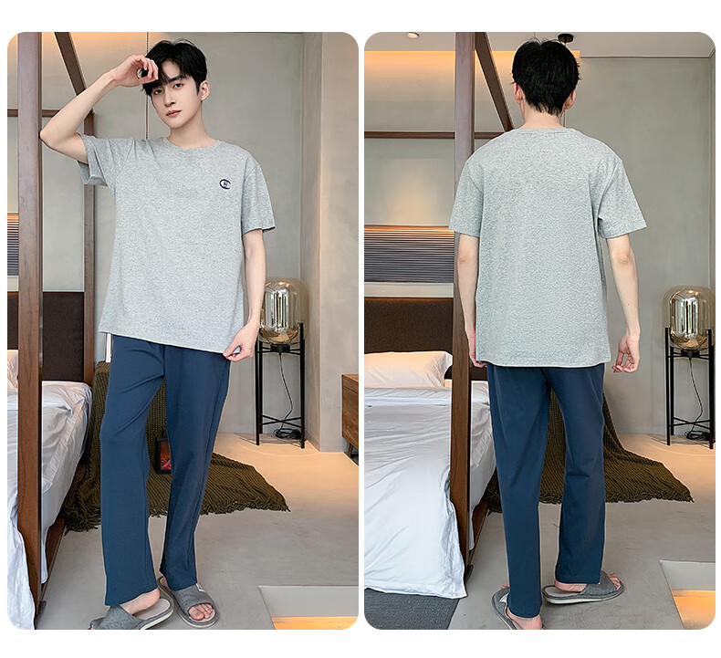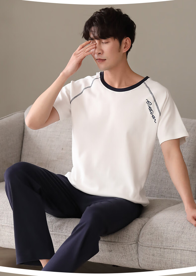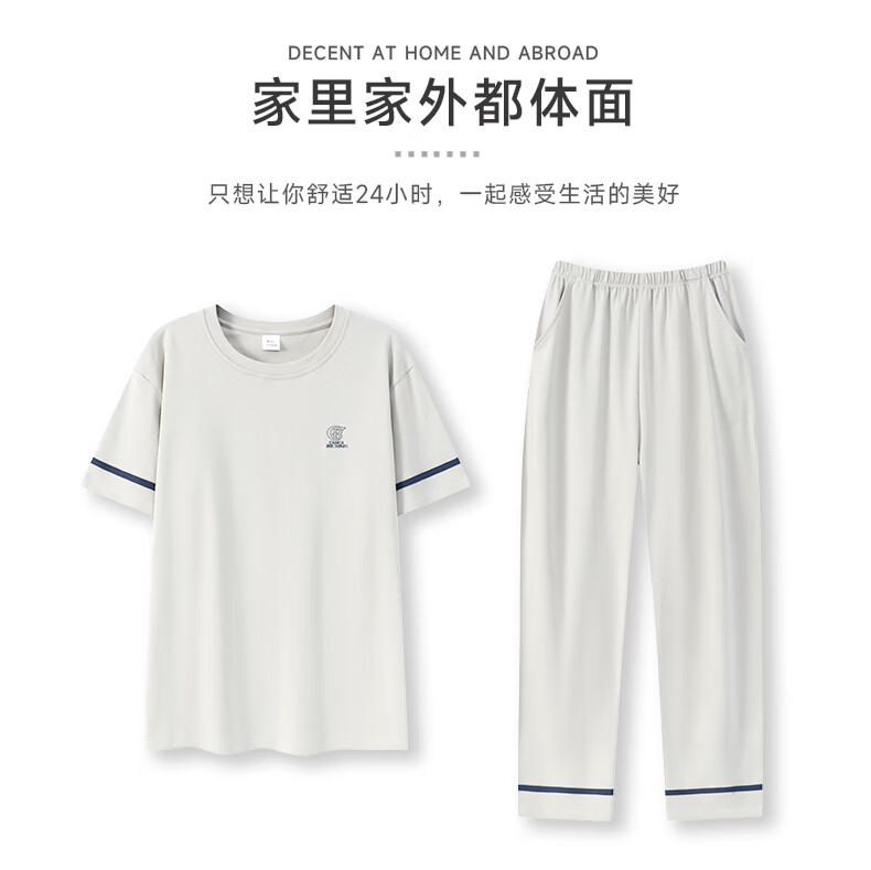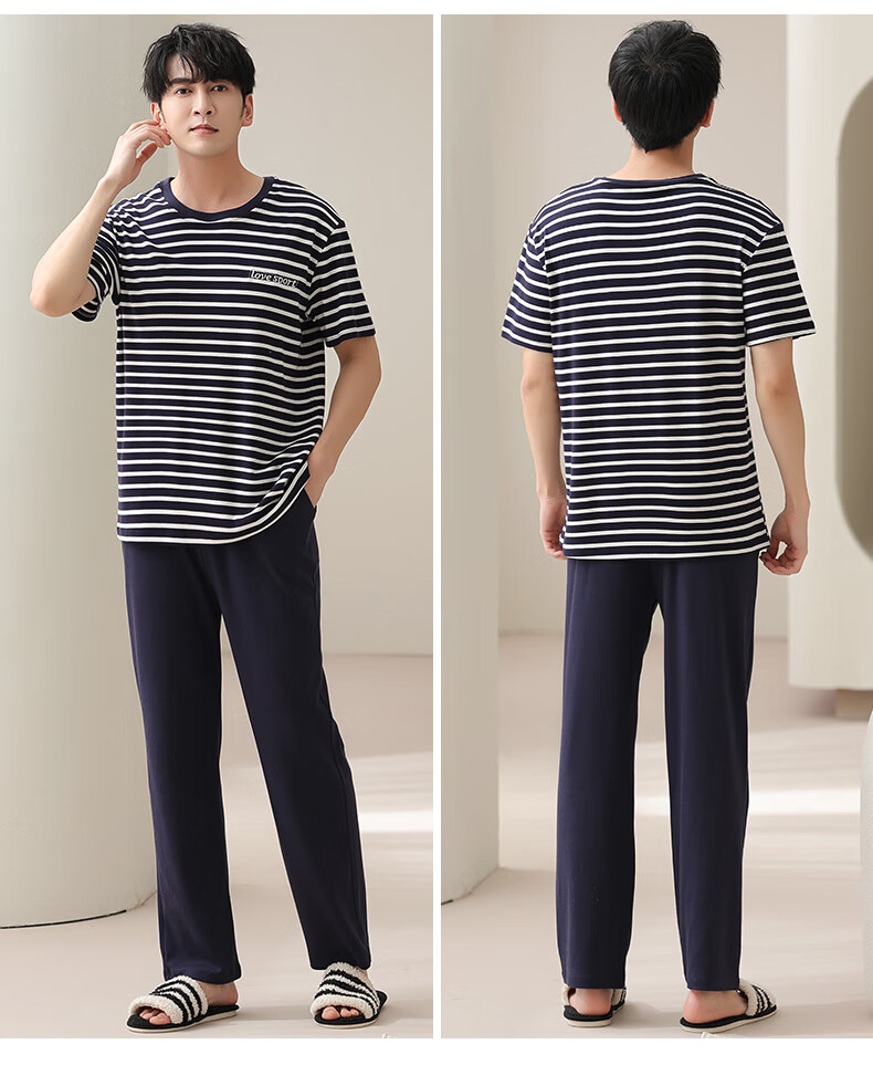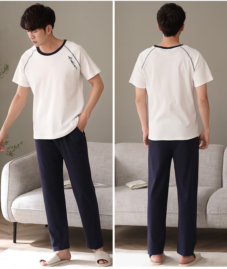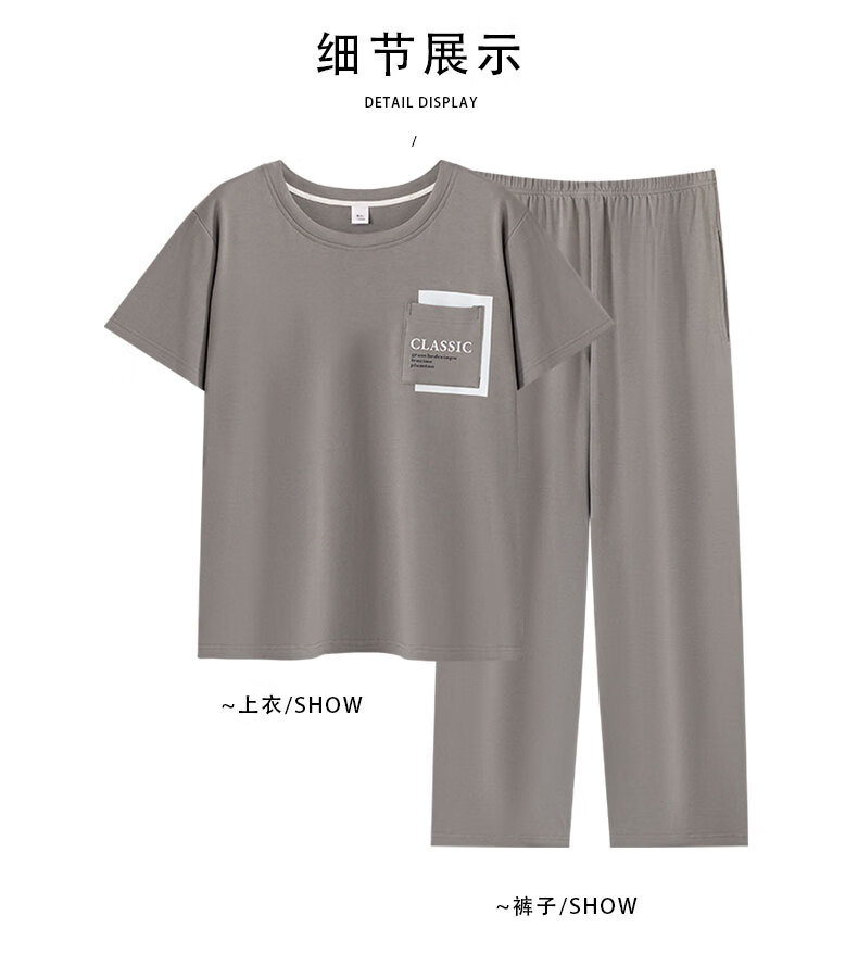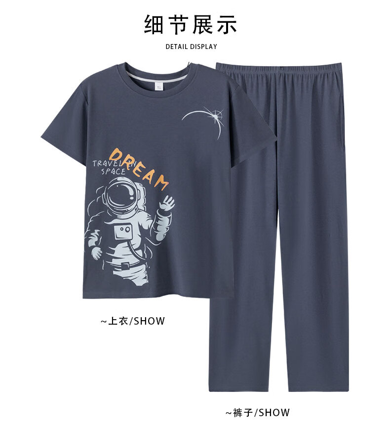 LOYACKIND男士睡衣夏季薄款短袖长裤棉春秋棉色宽松青少年家居服套装 咖啡色 9207 L 【105-130斤】100棉派邦淇