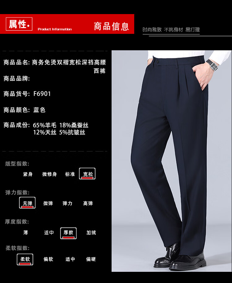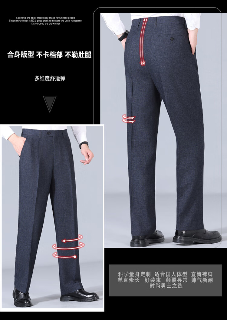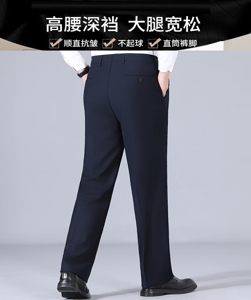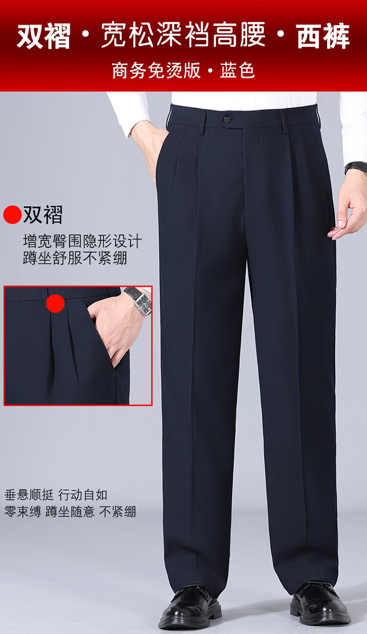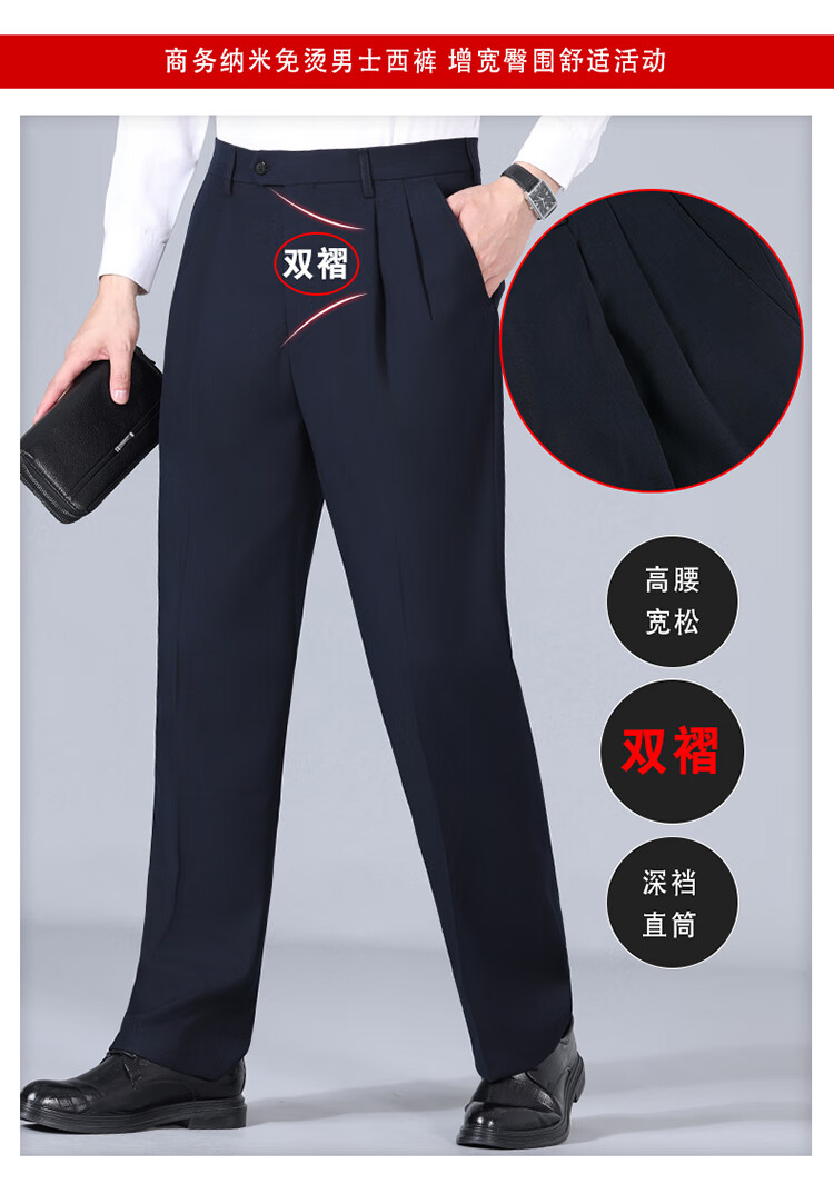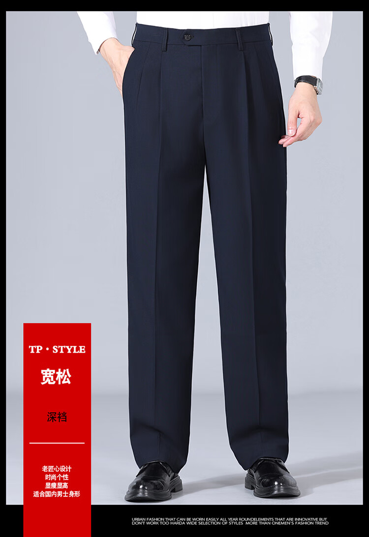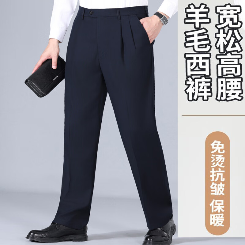 Pantalones de hombre de lana de alta gama, sin planchado, otoño e invierno, pantalones anchos informales de pierna recta, holgados y gruesos, con doble plisado, color negro (2603 doble plisado fino) 44 adecuado para una cintura de 3,3 pies (200 Jin Jin equivale a 0,5 kg o más)