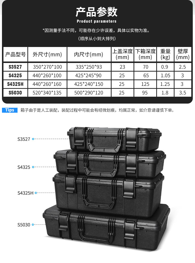 Wen Yijia SMRITI Erbe Haushalt Hardware Werkzeugkasten Futter tragbare Schutz Instrument Kunststoff Aufbewahrungsbox 3527 schwarz leere Box