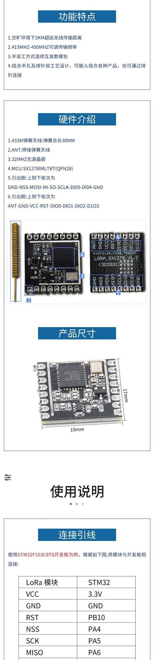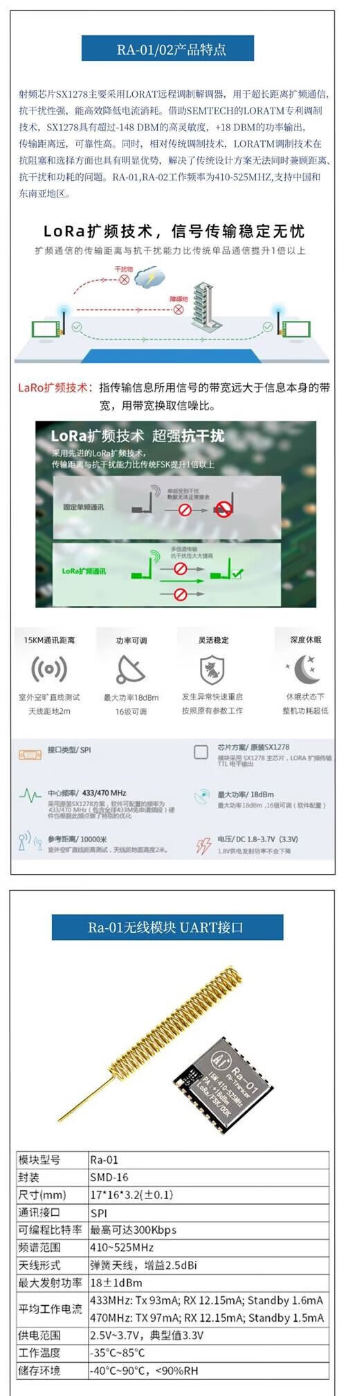 SX1278LoRa spread spectrum wireless RF module SI interface 43z spring antenna-01 Ra-01 wireless module SPI interface