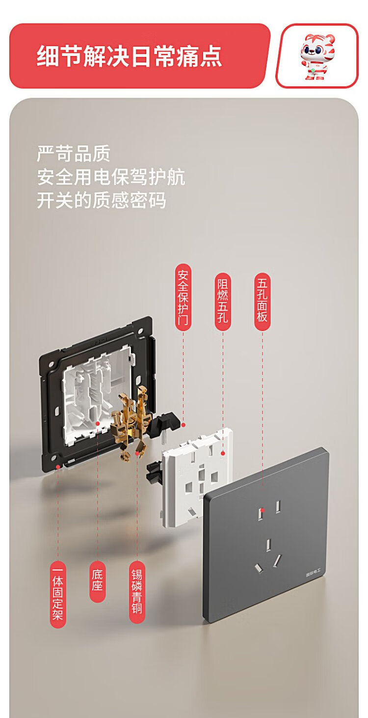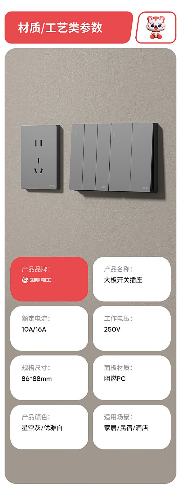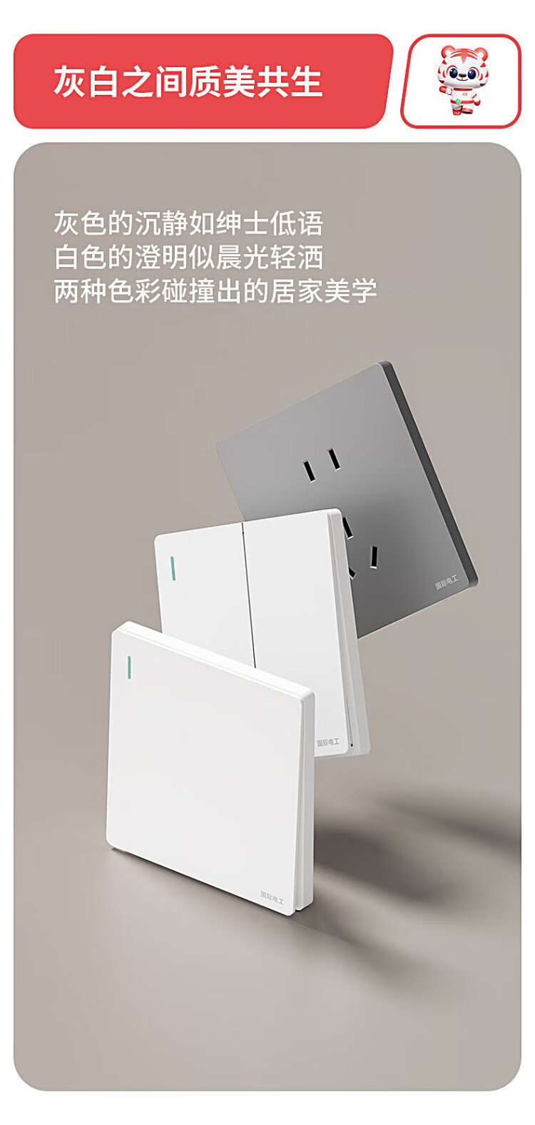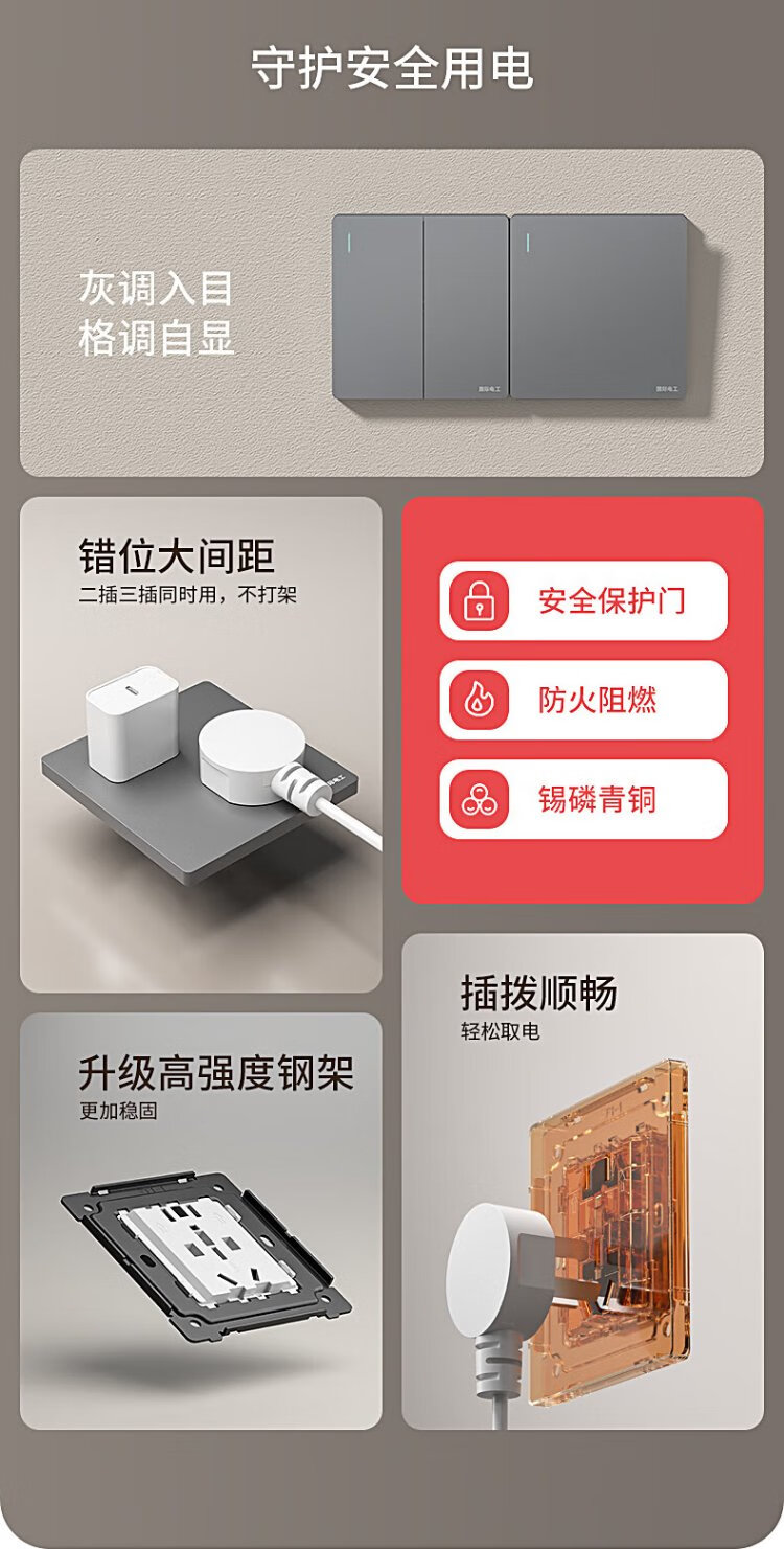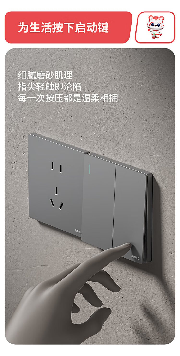 International electrician switch socket panel with USB five-hole wall type 86 home network air conditioner wall 5-hole with switch gray staggered five-hole
