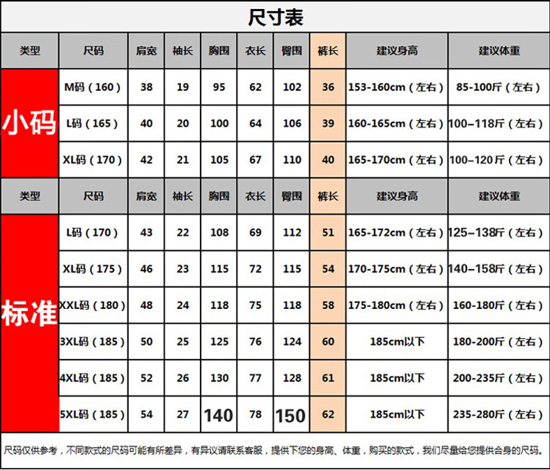 China (cm) 160-165/84-86 165-170 / 88-90 167-172 / 92-96 168-173 / 98-102 170-176 / 106-110