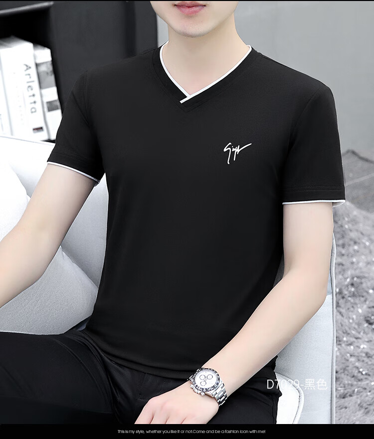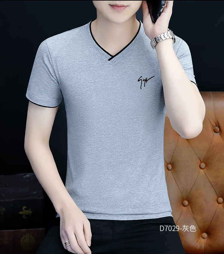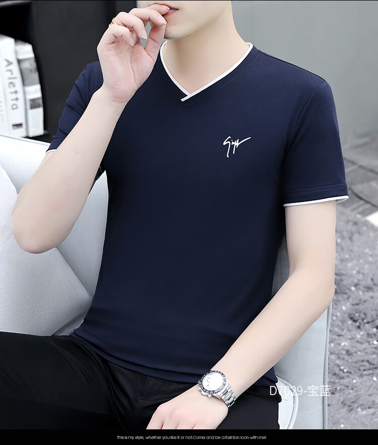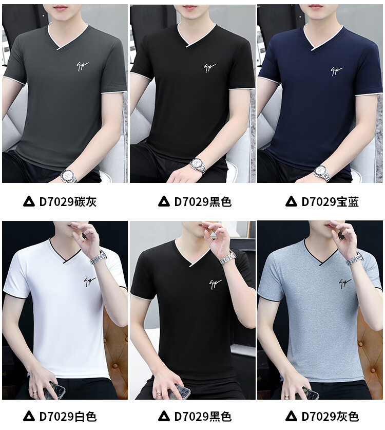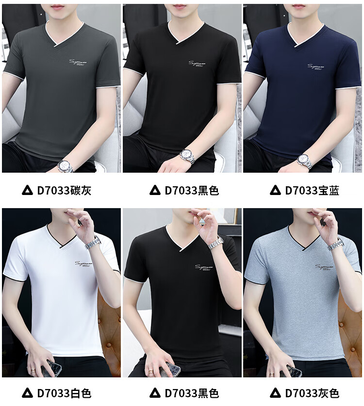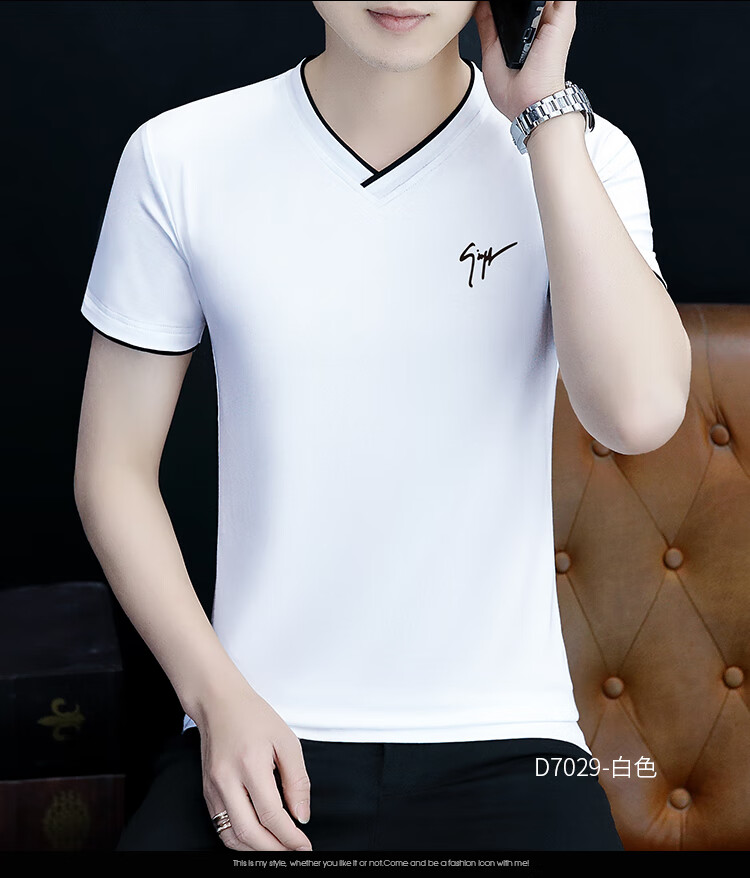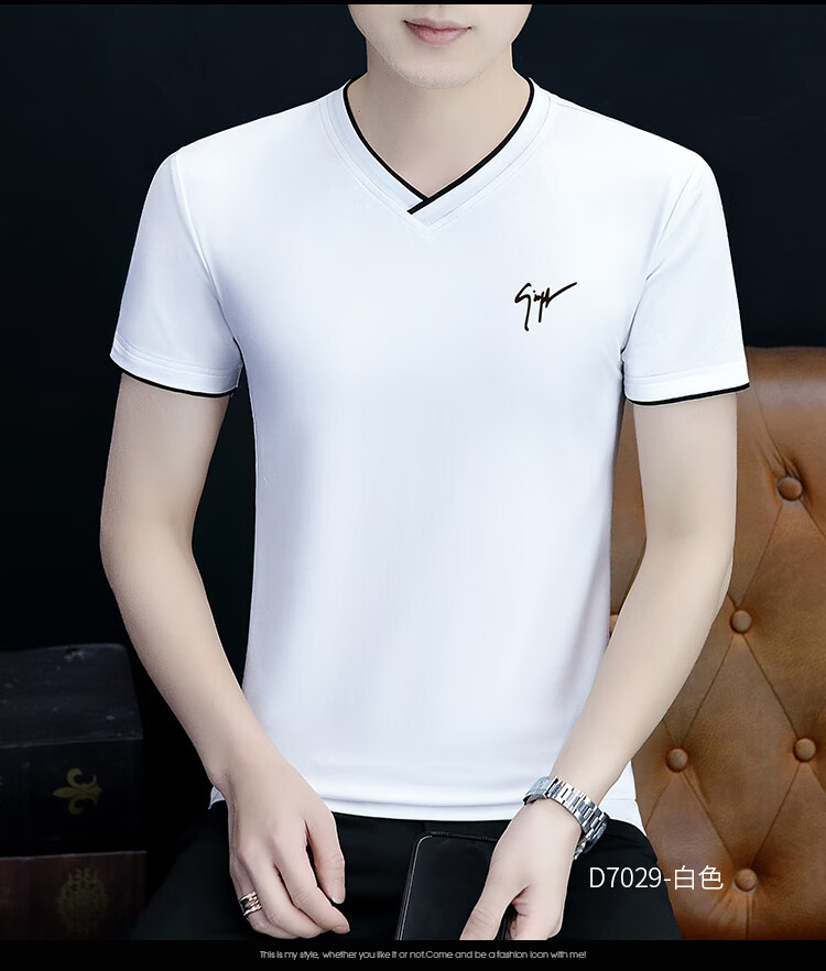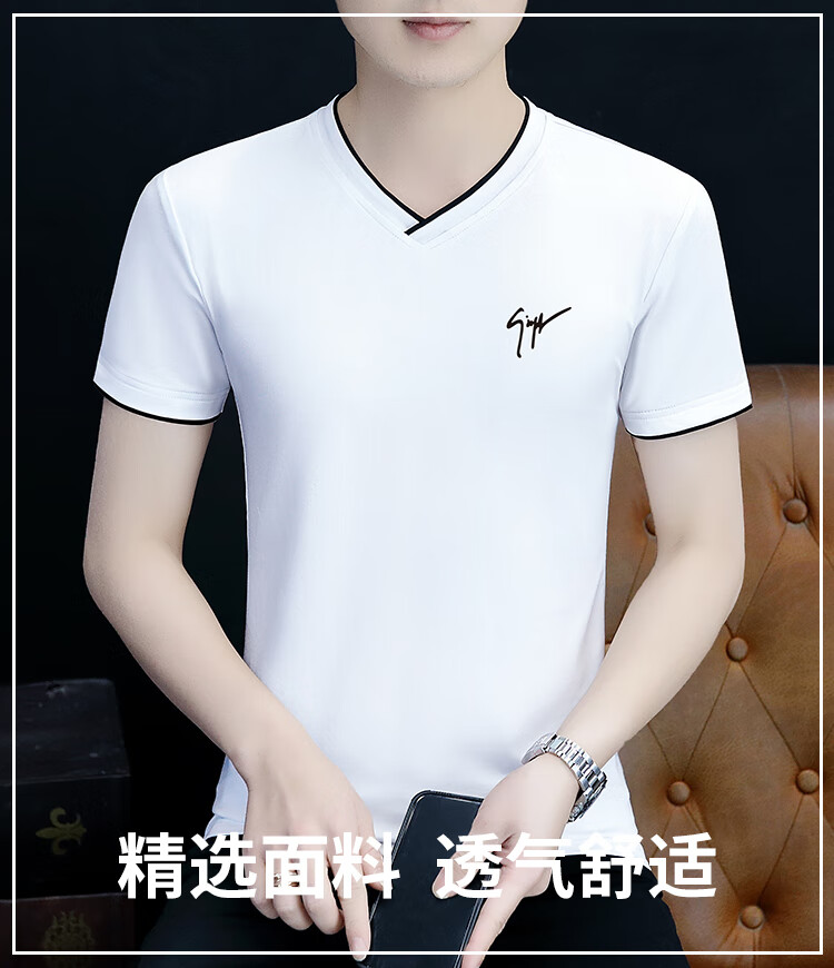 Pierre Cardin summer high-end men's short-sleeved T-shirt v-neck pure cotton half-sleeved sweetheart neck T-shirt trendy slim top thin men's white YD7029 (Father's Day gift) XL