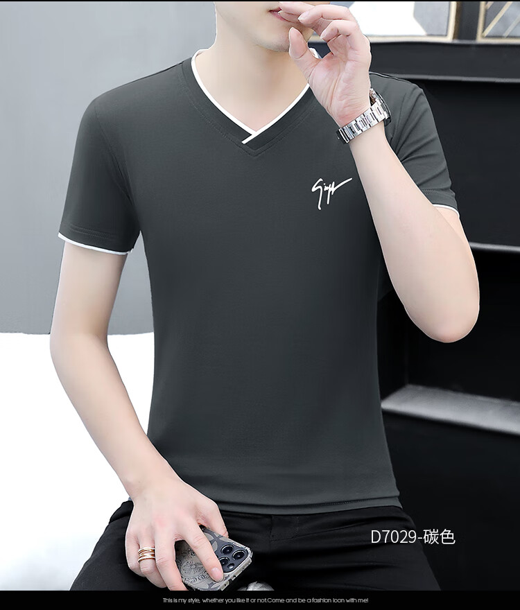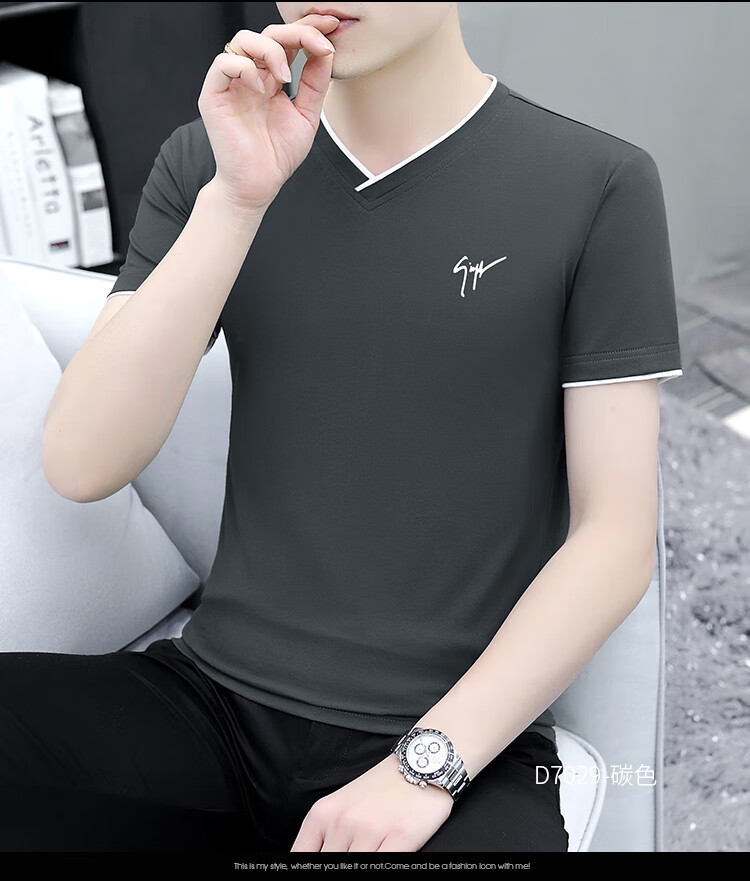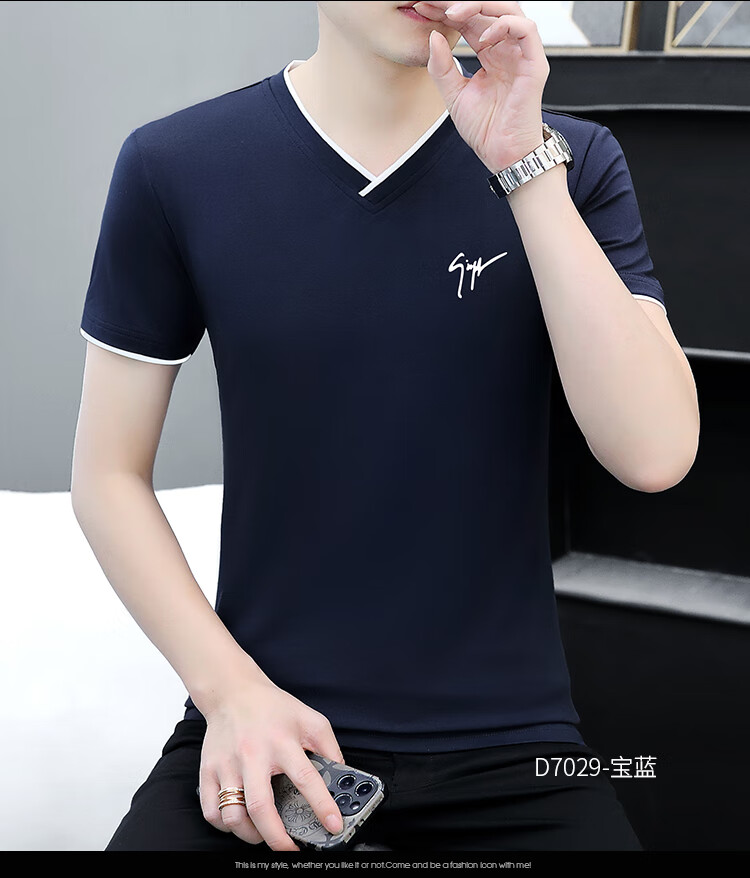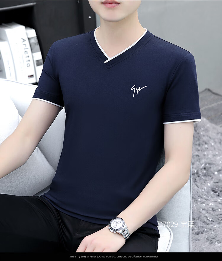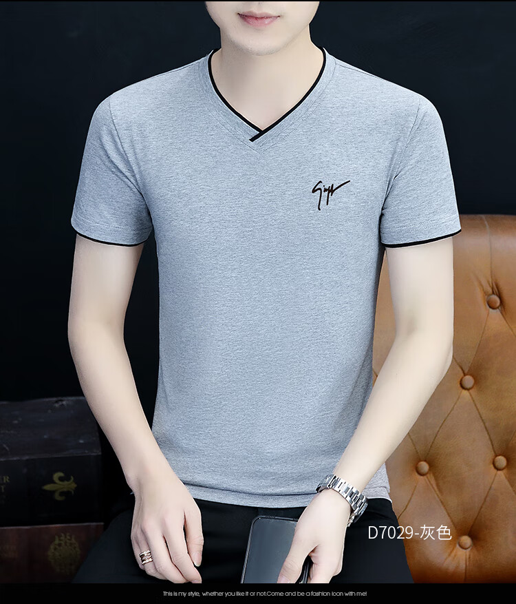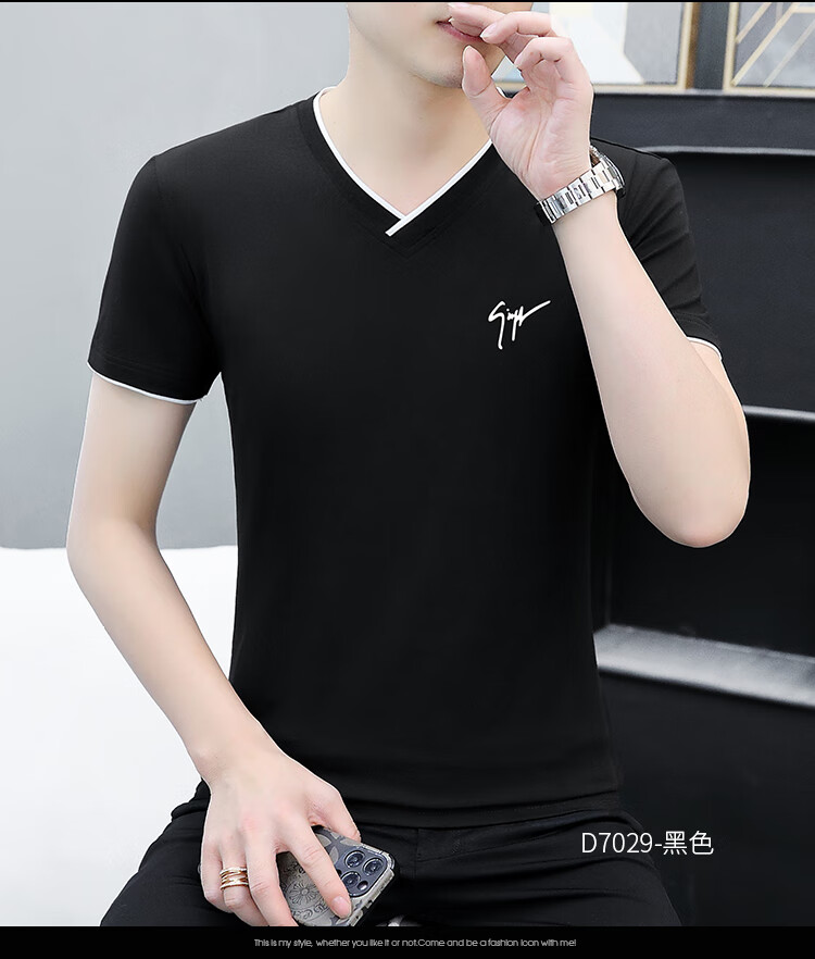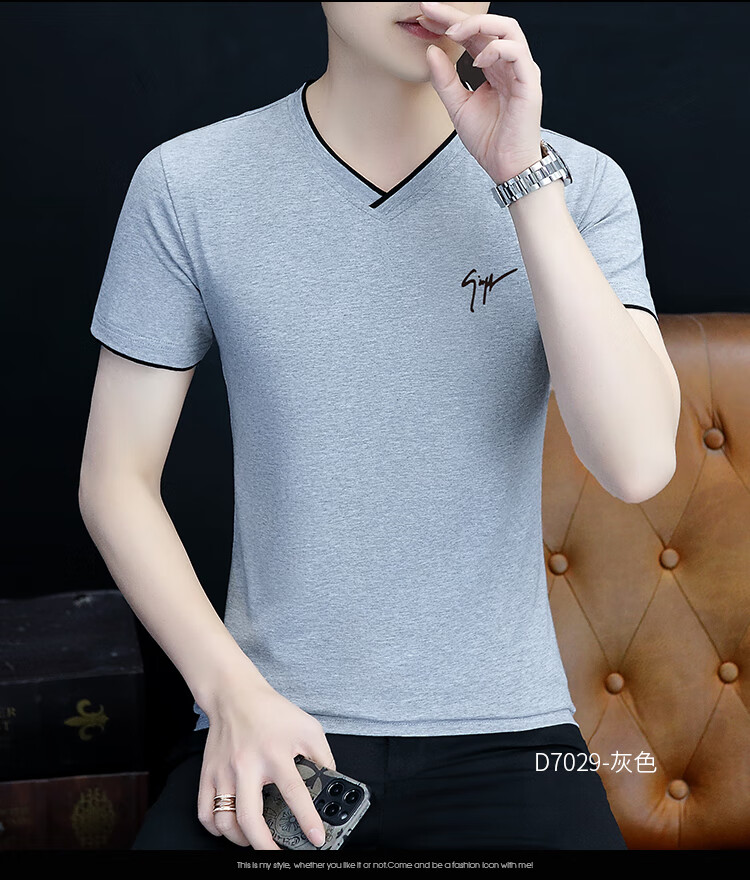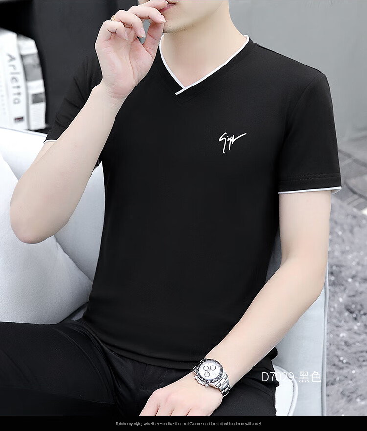 Pierre Cardin summer high-end men's short-sleeved T-shirt v-neck pure cotton half-sleeved sweetheart neck T-shirt trendy slim top thin men's white YD7029 (Father's Day gift) XL