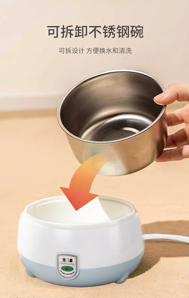 酸奶机猫咪喝水家用小型宠物恒温饮水机加热饮水器冬天加热猫狗碗 升级版清新绿【防咬线1.6m】