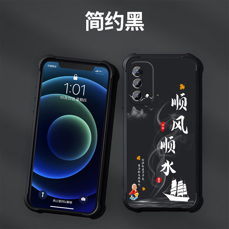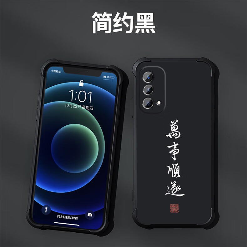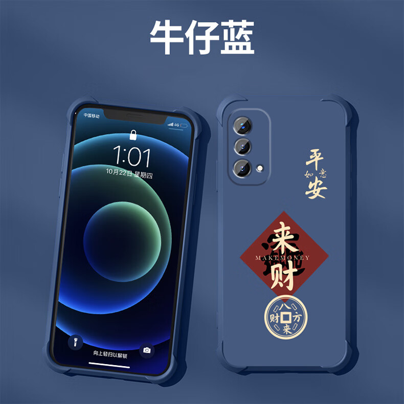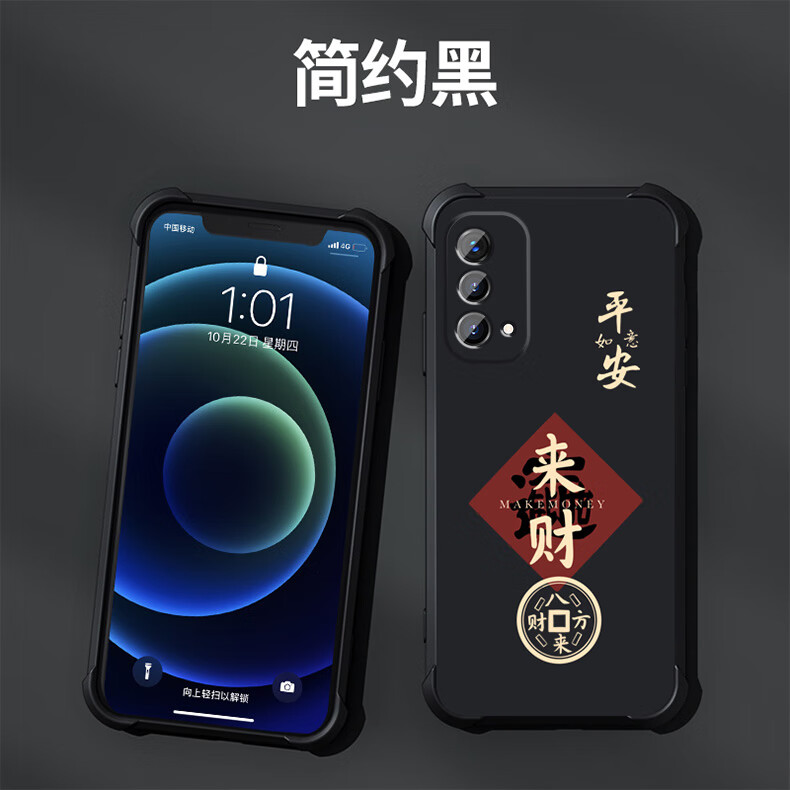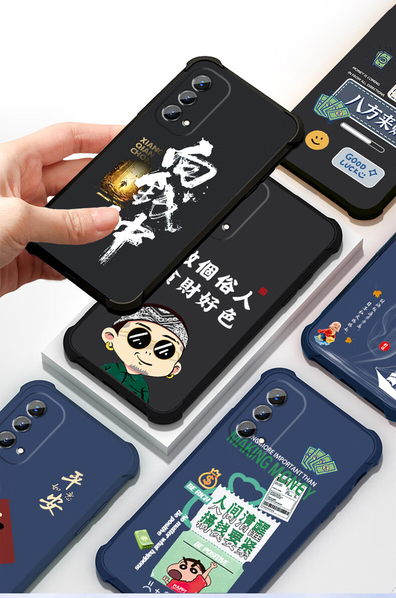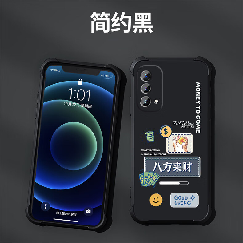 不辣适用OPPOA93手机壳男款镜头全包边液态硅胶四角气囊防摔保护套微磨砂励志文字卡通新款 ou1278八方来财-炫酷黑 OPPOA93  5G【单壳】