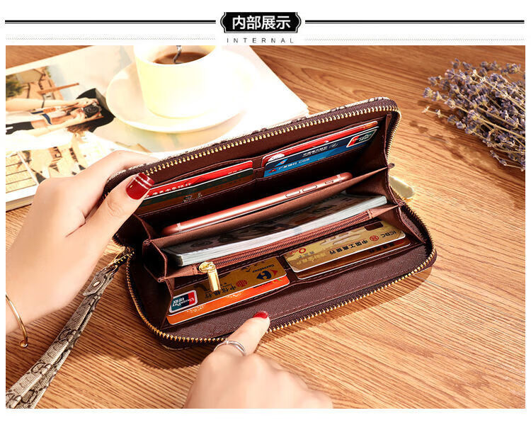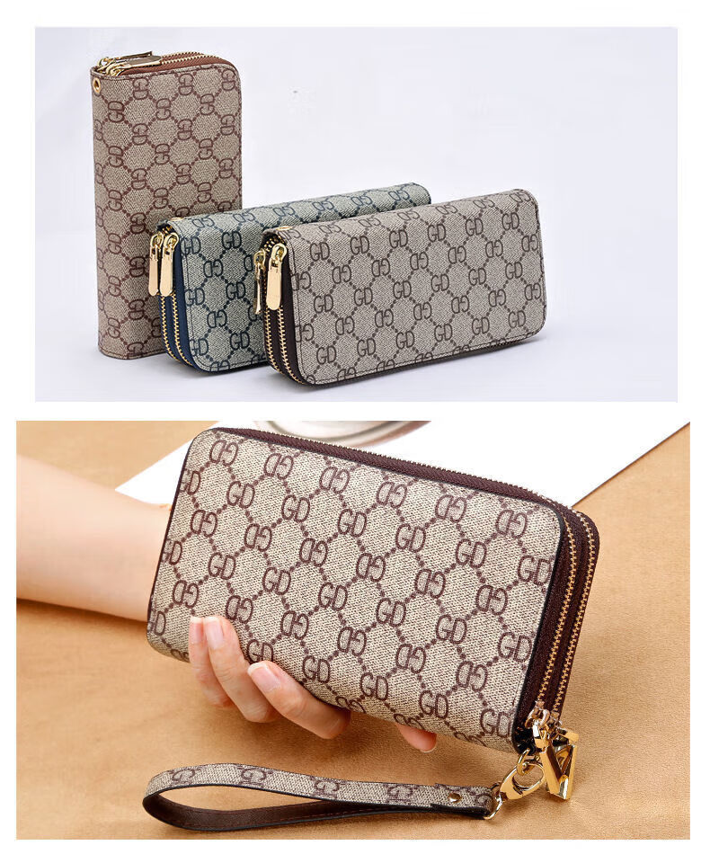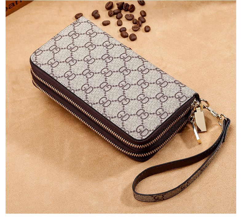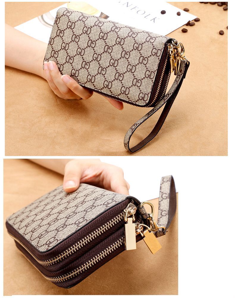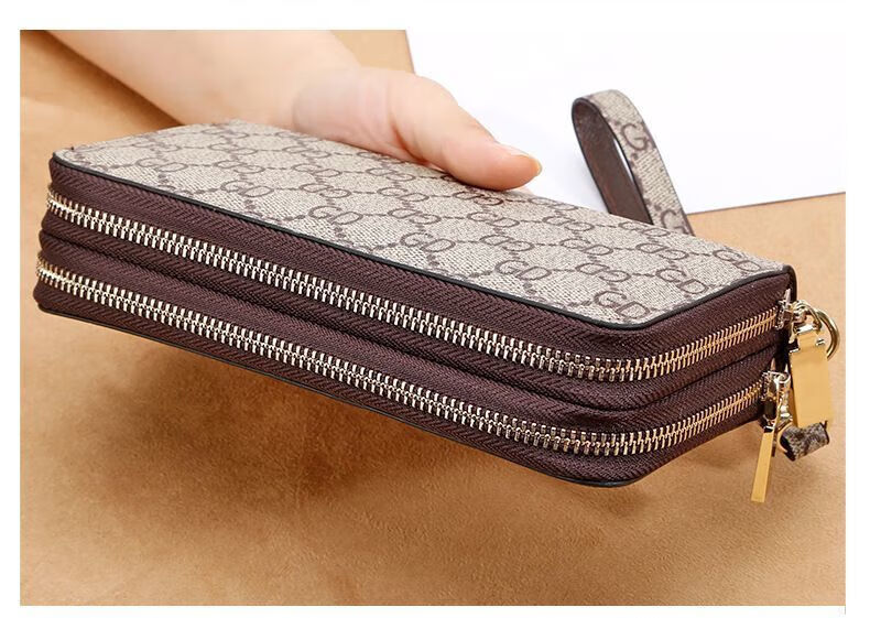 OLOEY手包女士手拿包欧美时尚钱包女女士长款钱包大容量拉链手拿 GD双拉链-深啡色