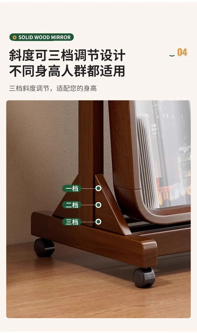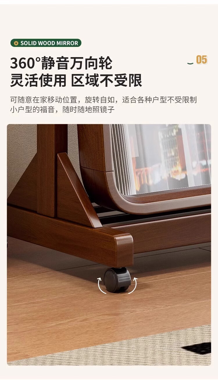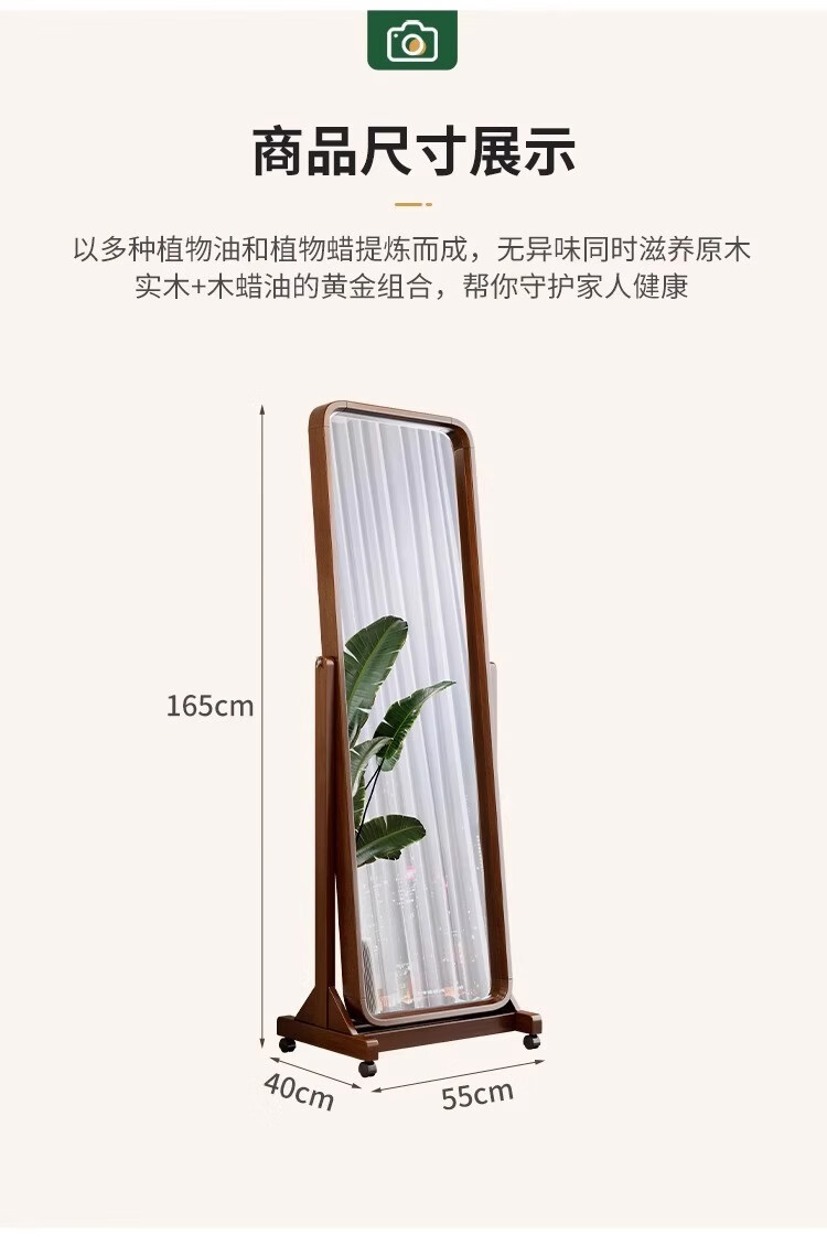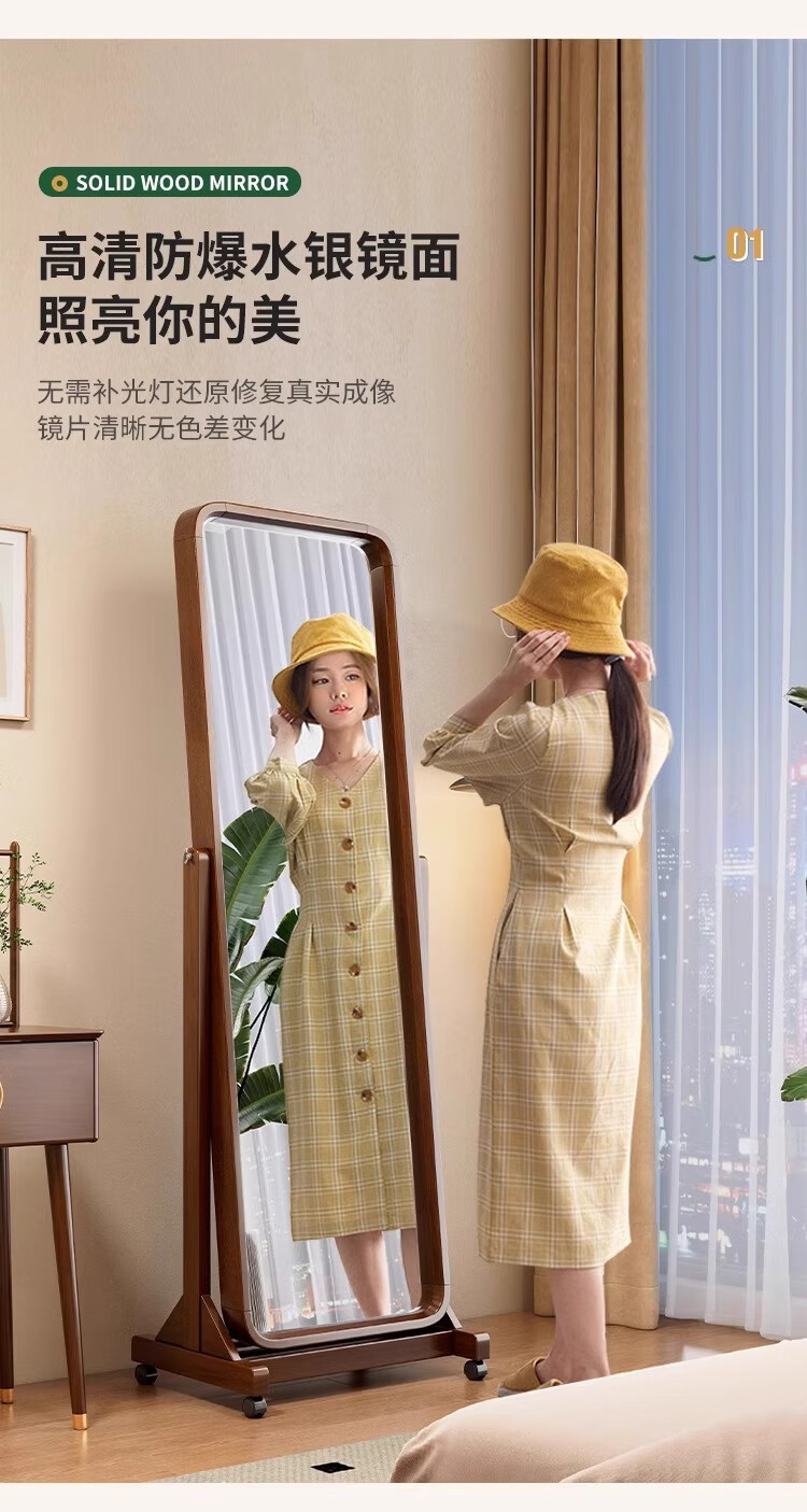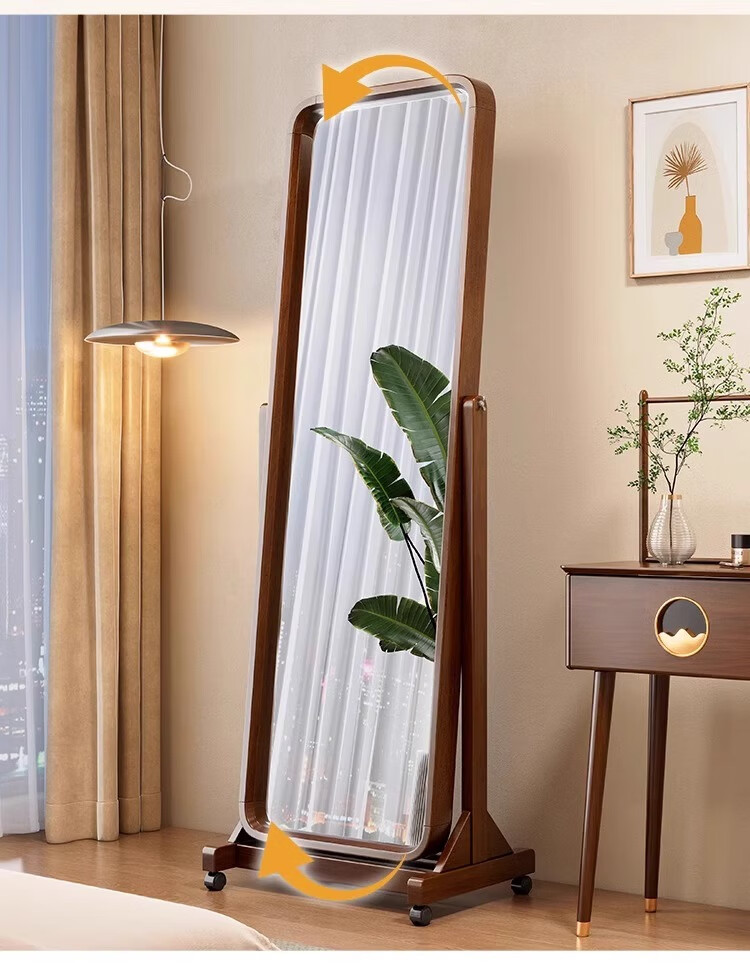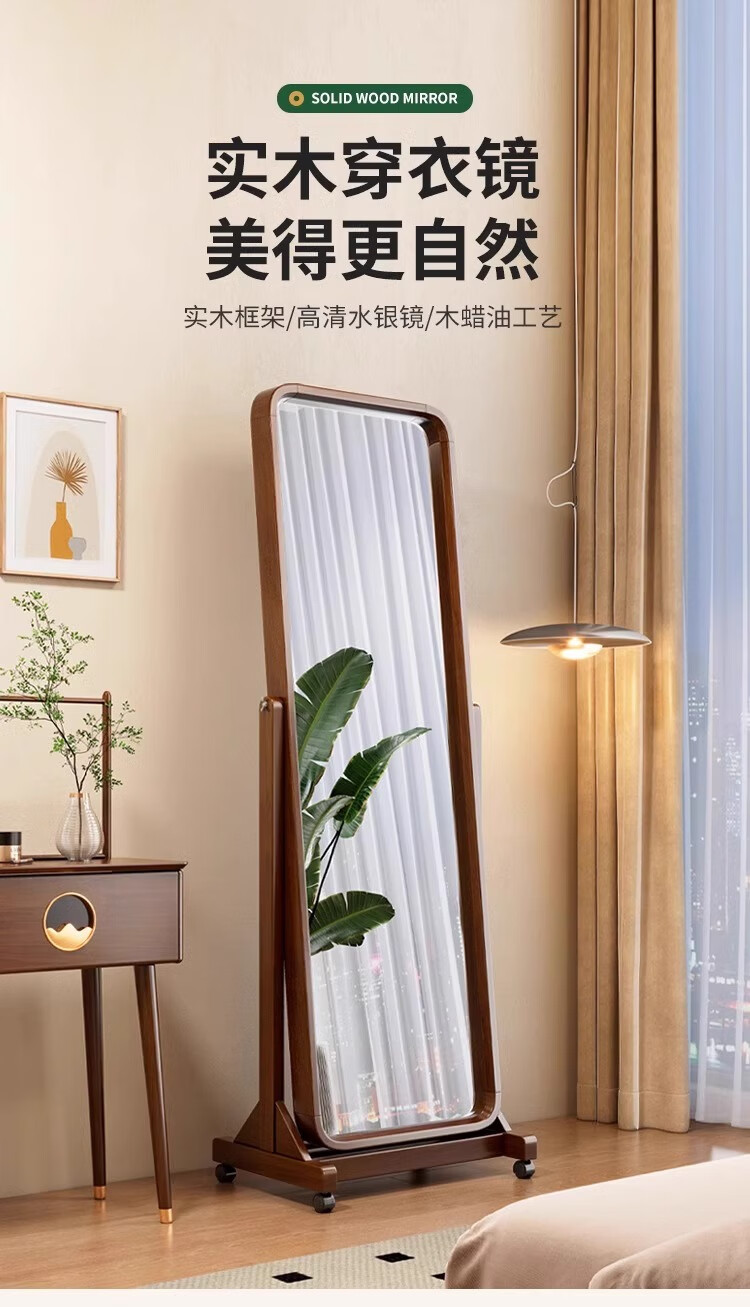 Kangcheng Jiayuan solid wood floor-standing full-length mirror home bedroom dressing mirror 2025 new clothing store dedicated floor-standing fitting mirror walnut color dressing mirror