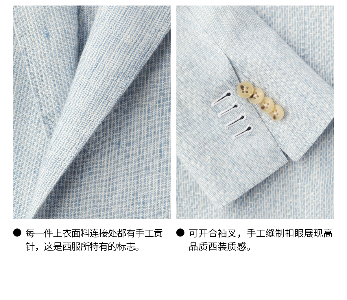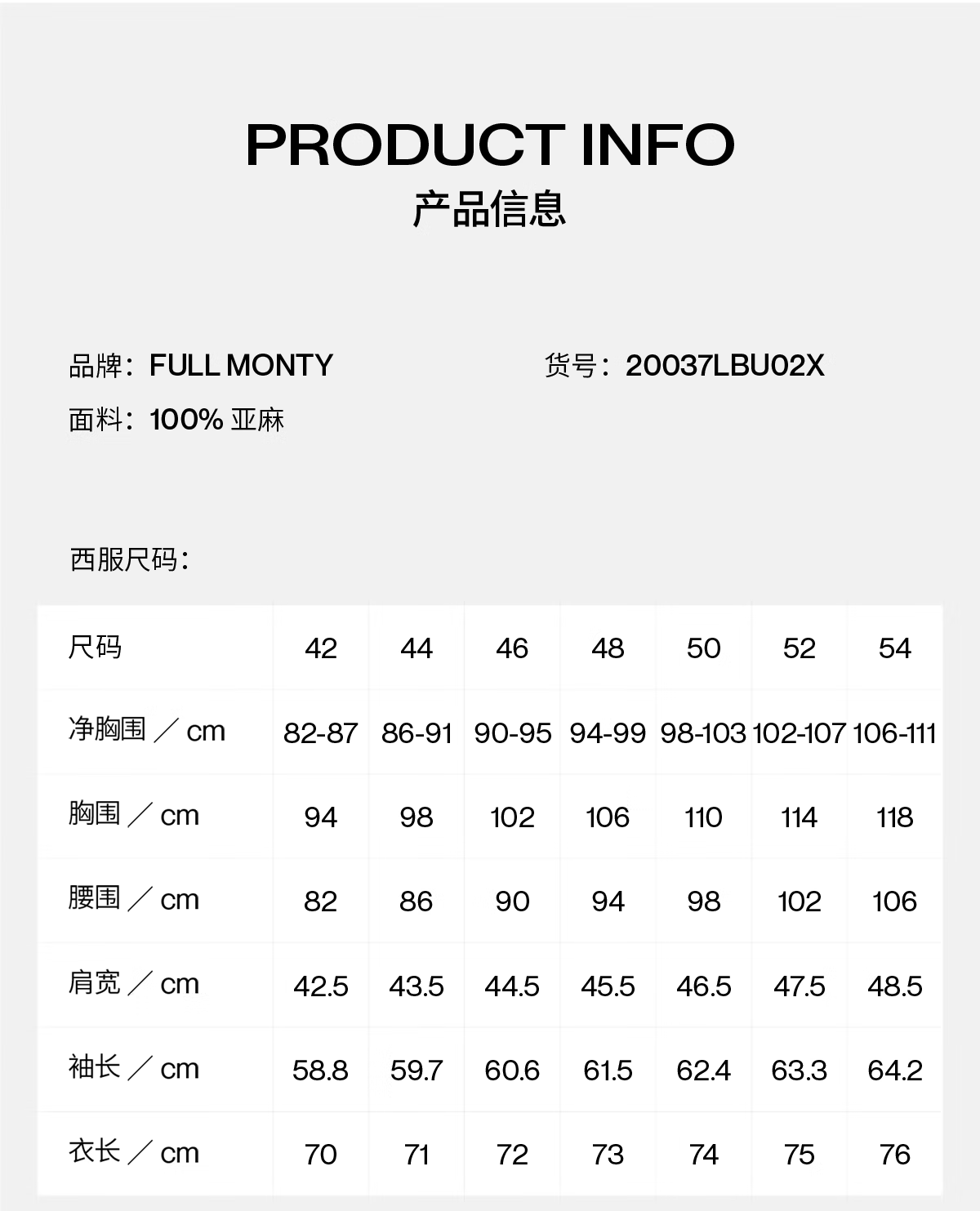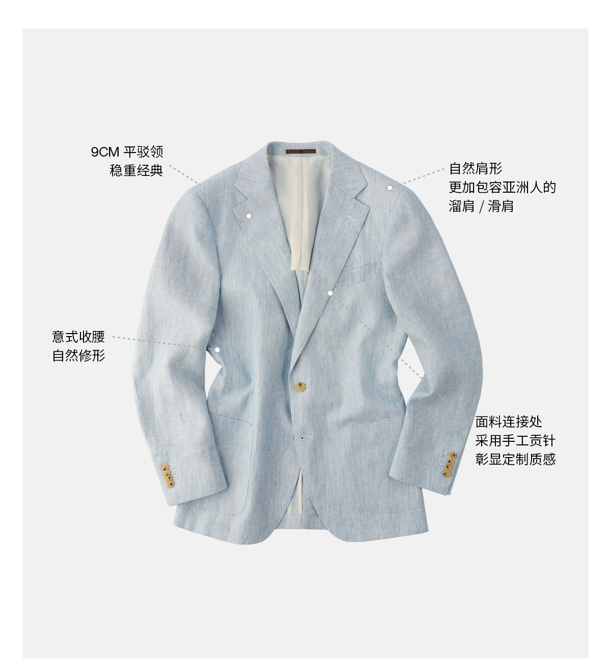 FULL MONTY【纯亚麻】新款西服外套男浅蓝色微纹理西装上衣春夏休闲轻薄单西 浅蓝色20037 46