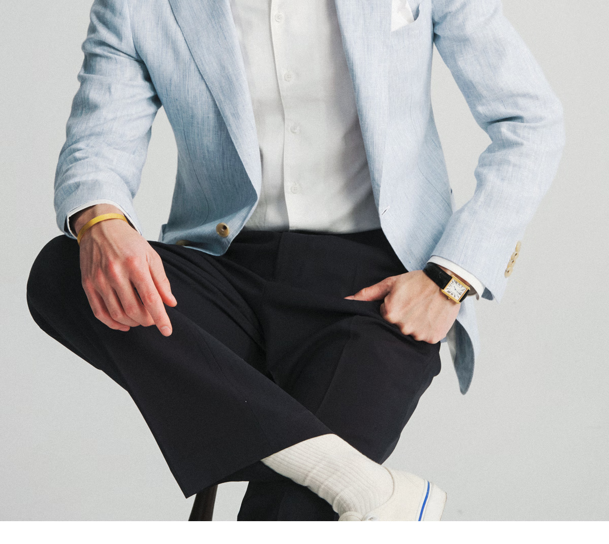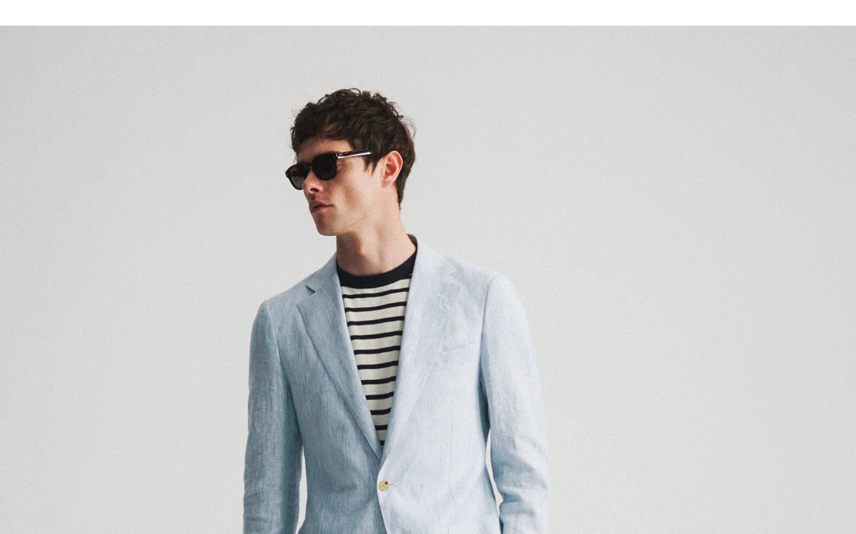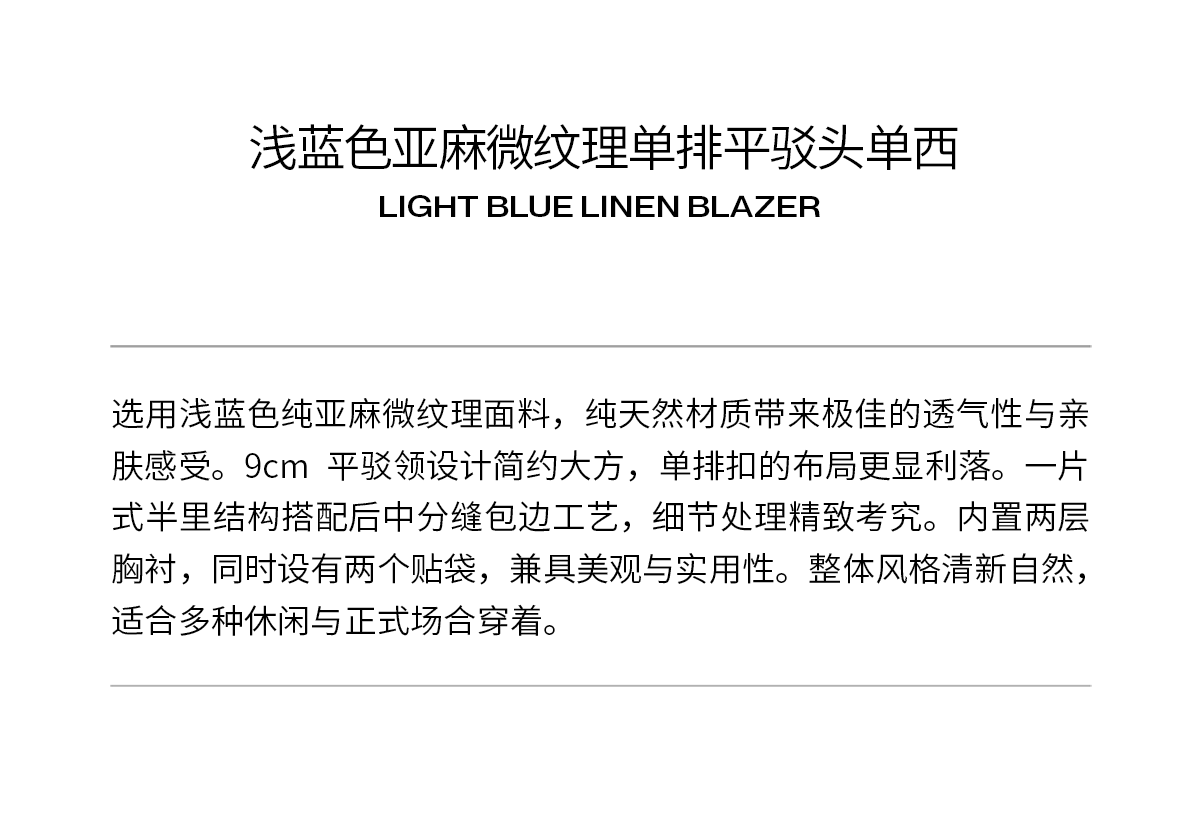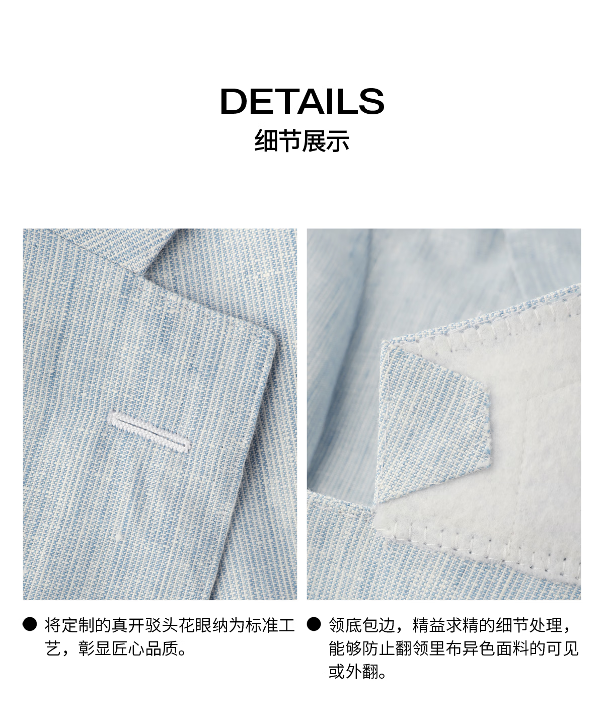 FULL MONTY【纯亚麻】新款西服外套男浅蓝色微纹理西装上衣春夏休闲轻薄单西 浅蓝色20037 46