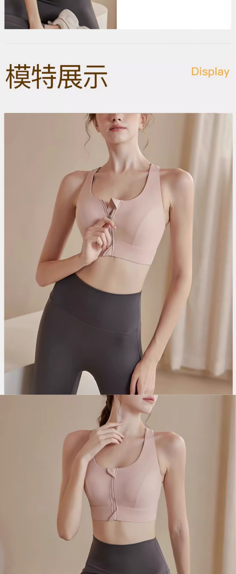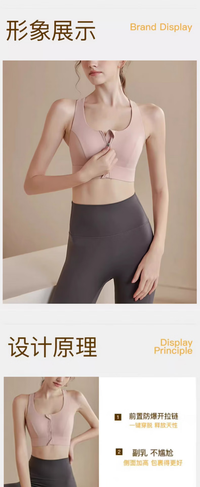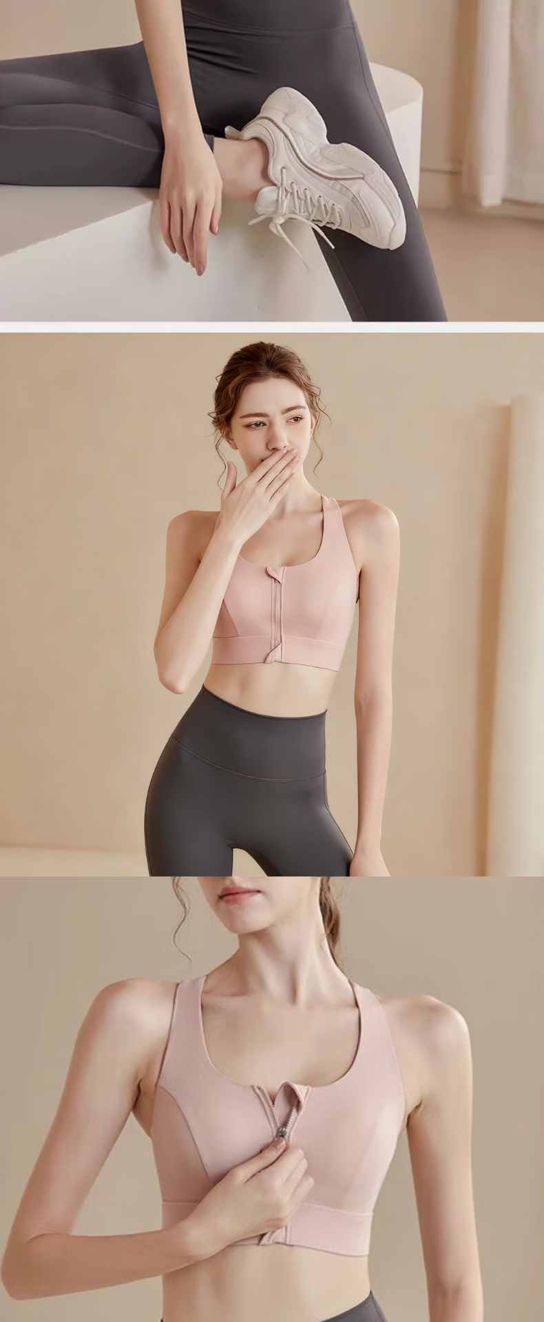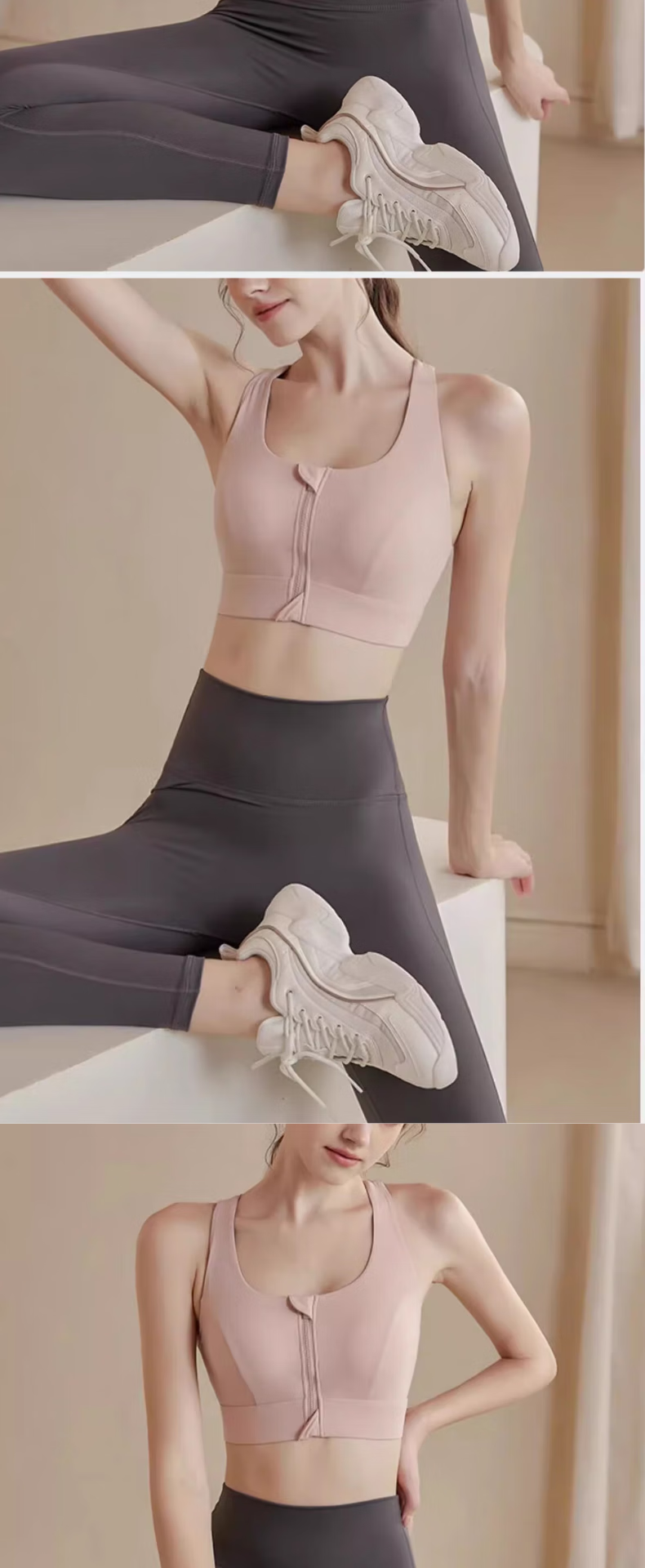 栢启歆运动内衣女双肩带前拉链防震跑步高强度健身防下垂美背一体文胸 肉粉色 L