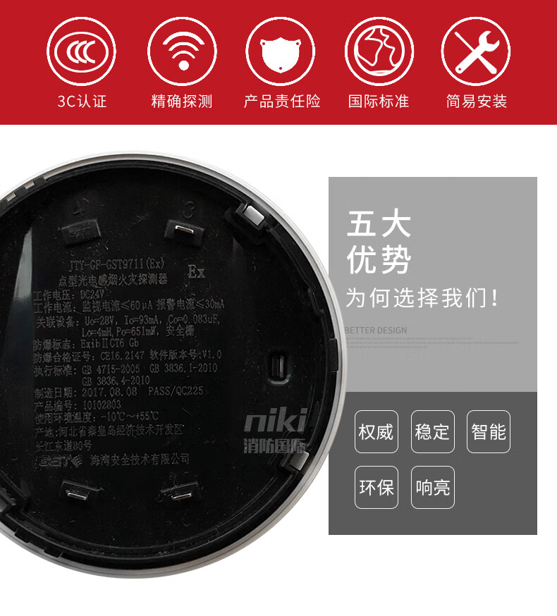 海湾烟感JTY-GF-GST9711Ex防爆光电感烟火灾探测器 非编码型 现货 GST9713(EX)复合感烟感温探测器