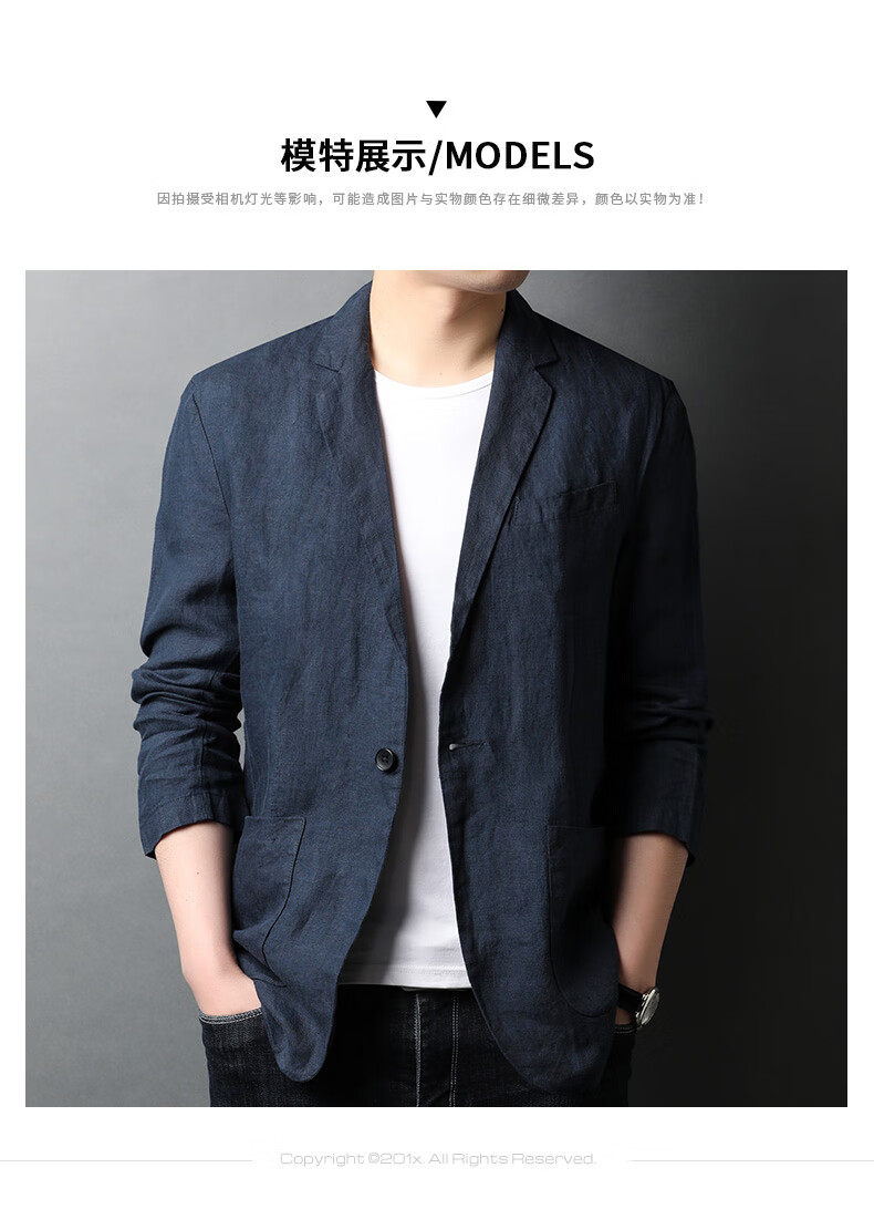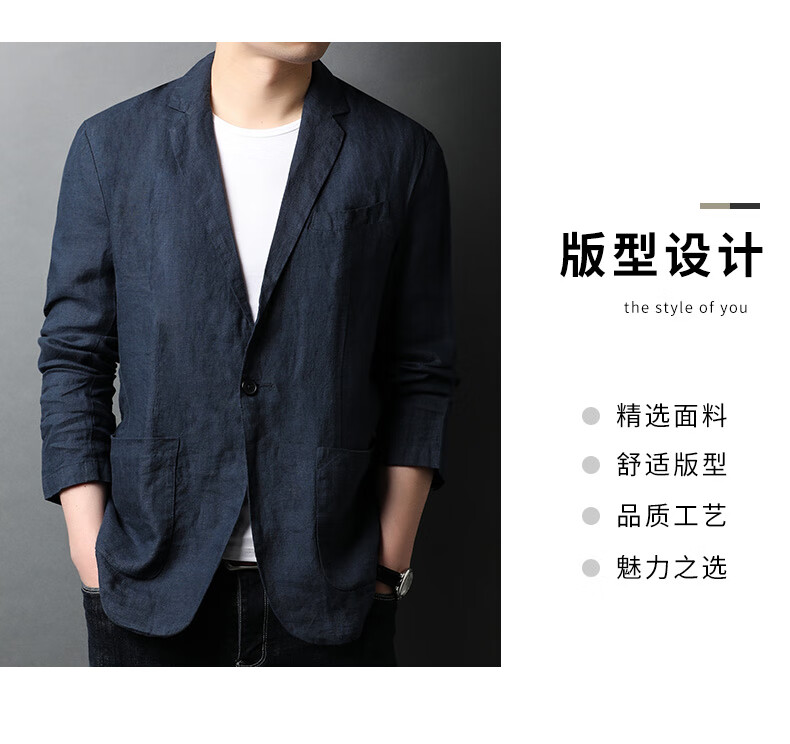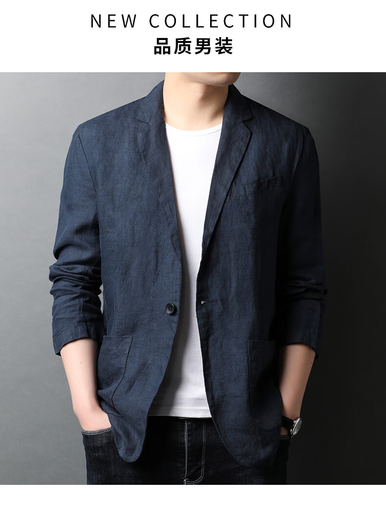 恒源祥亚麻西服外套男棉麻薄款夏季装衣男士休闲防晒西装 藏青色 XL 180/100A
