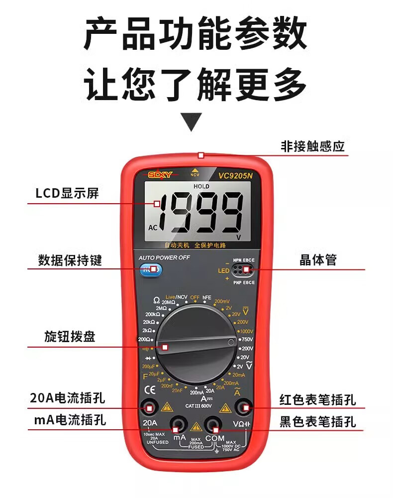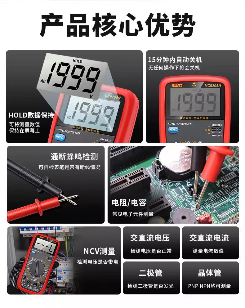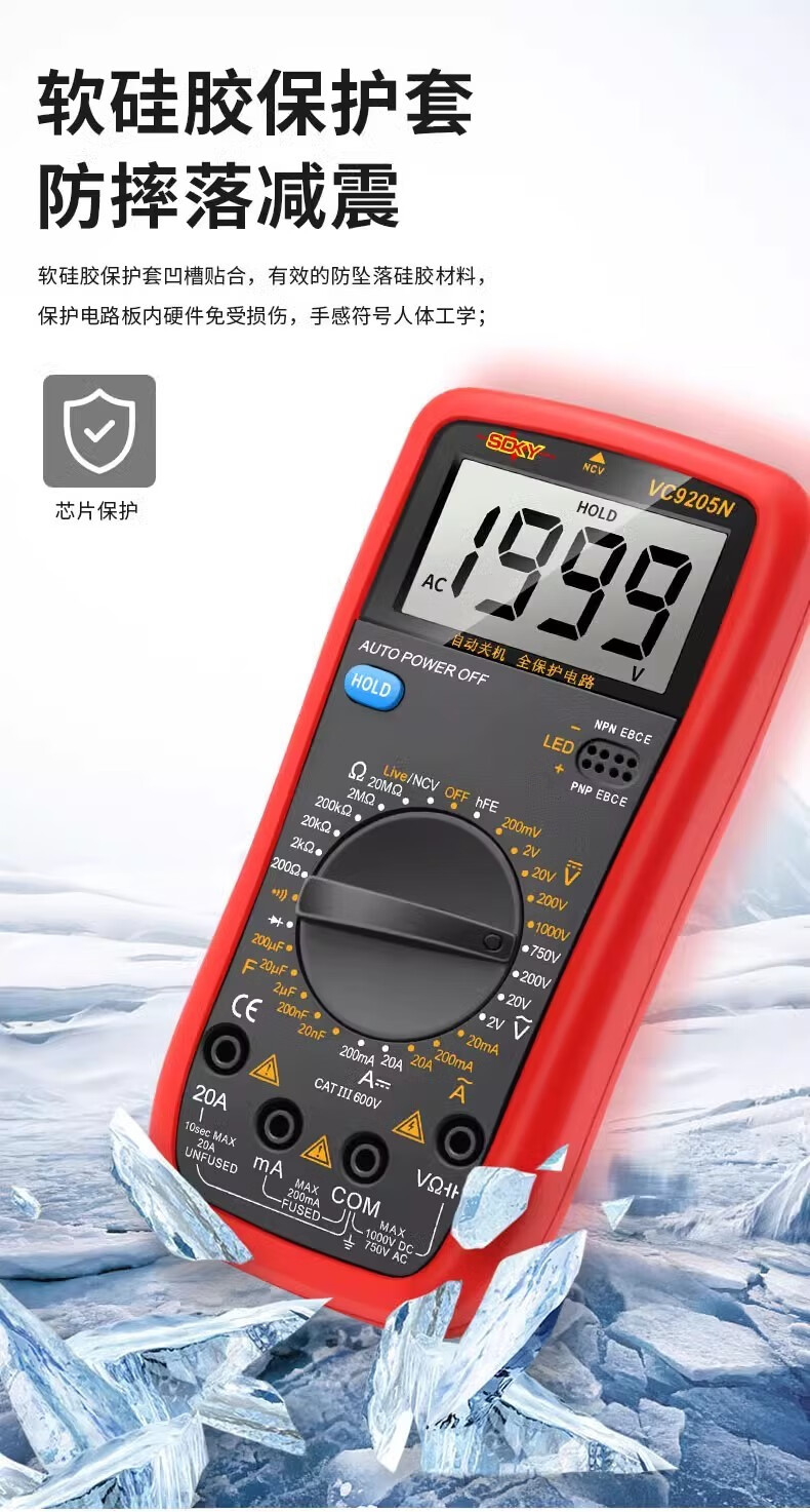 Kezituquan Protection Automotive Digital Multimeter Auto Repair Multimeter Electrician Machine Repair Auto Maintenance Tool DT-9205A (standard configuration)