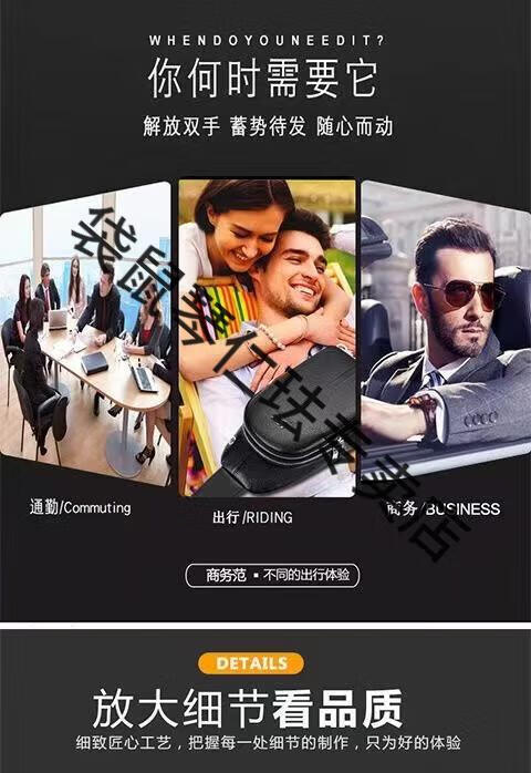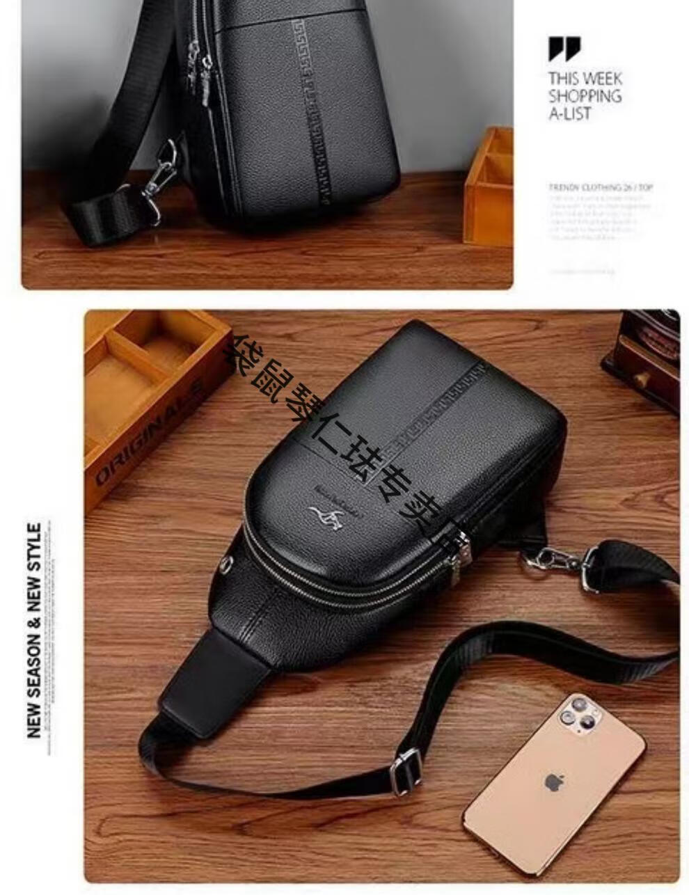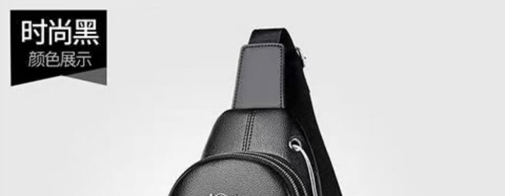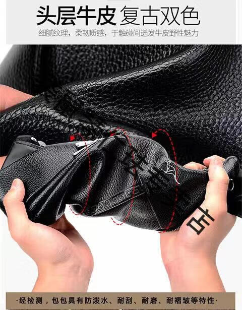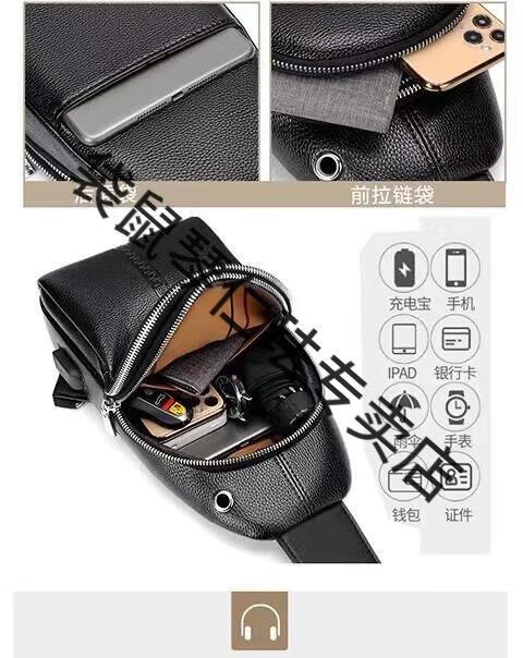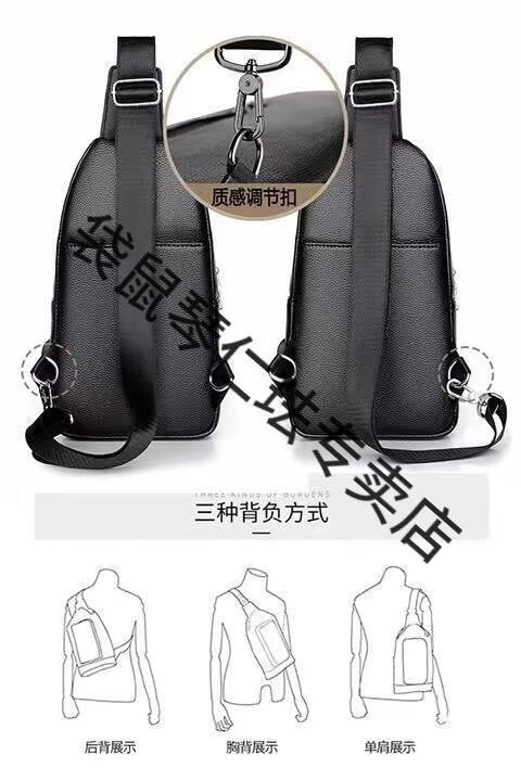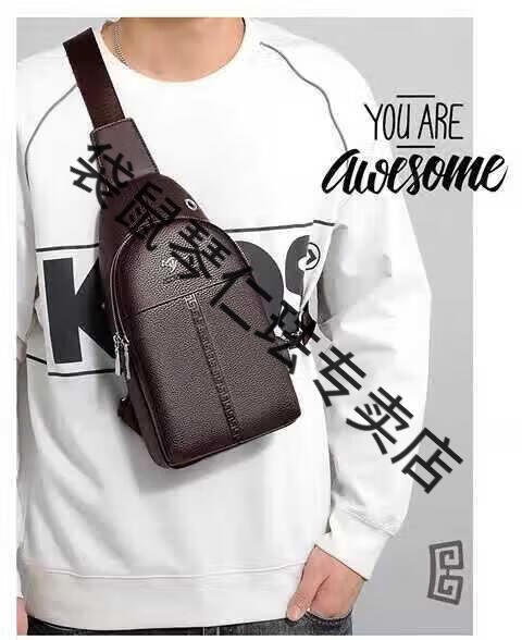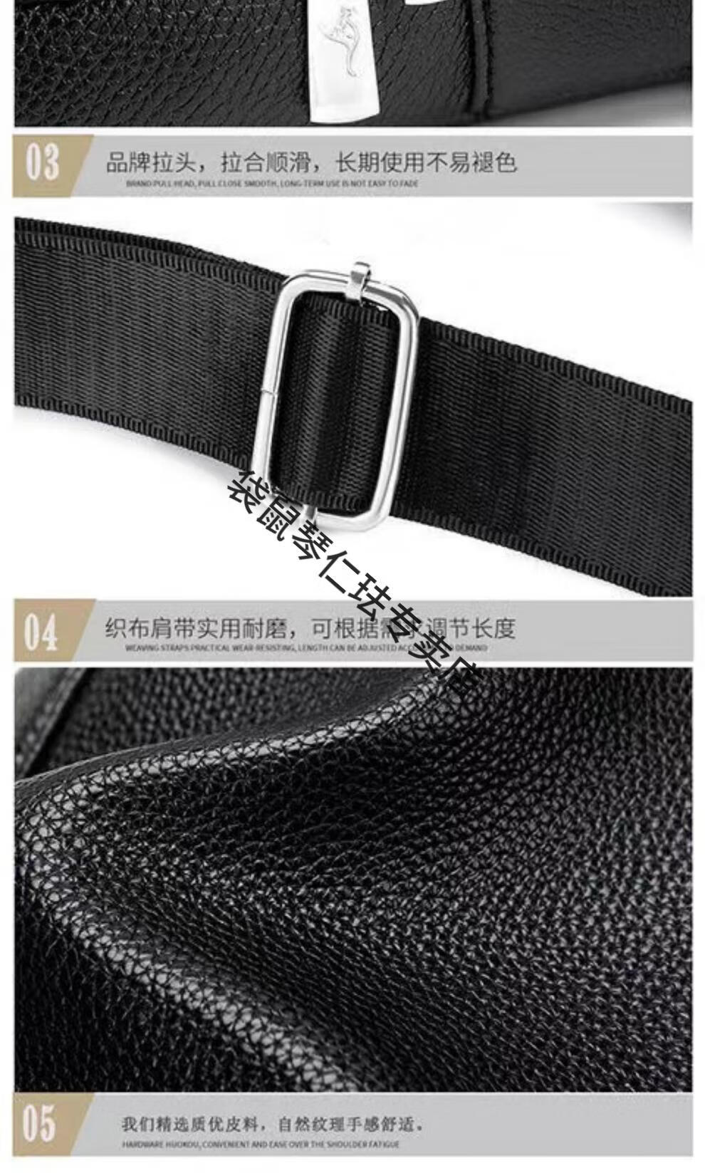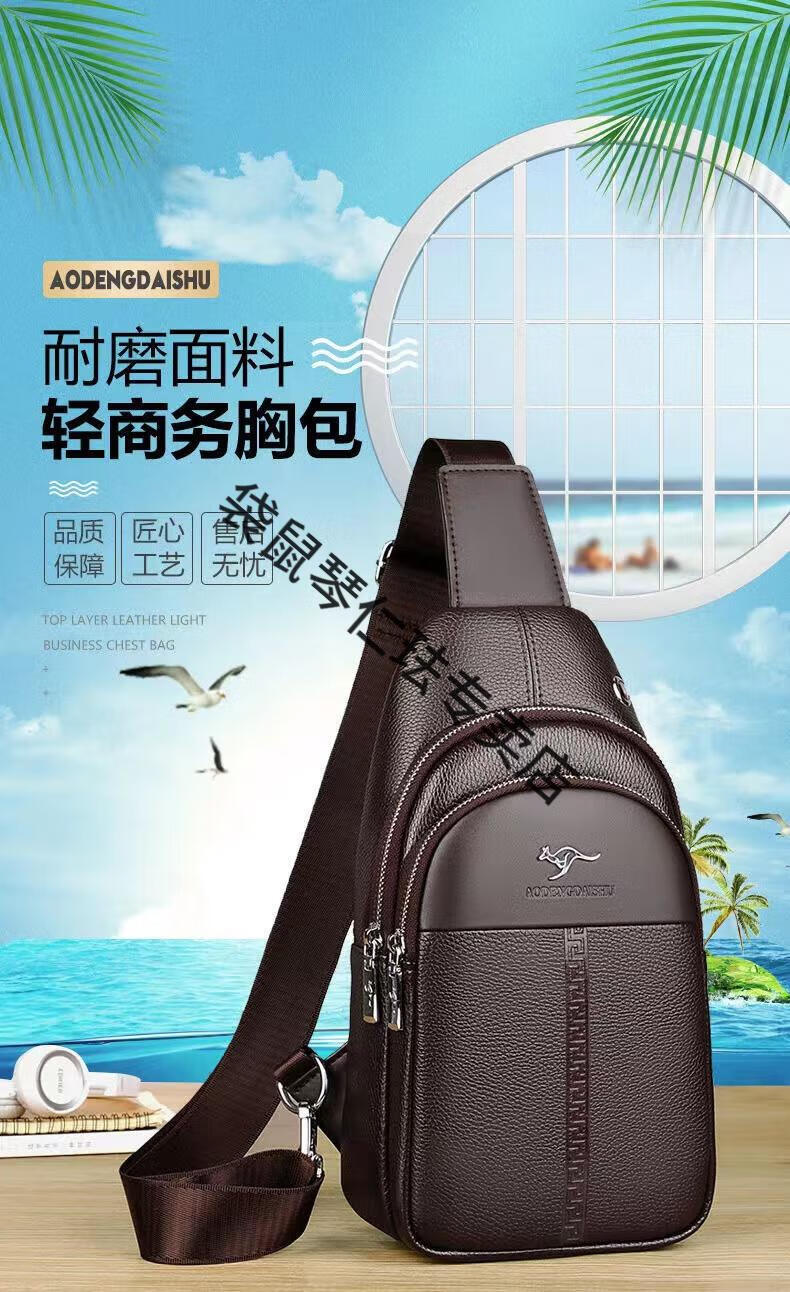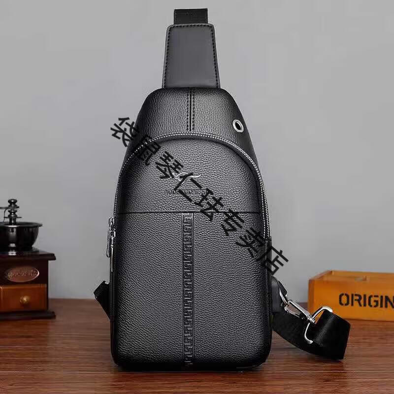 袋鼠真皮质感男士胸包运动斜挎包男包夏季小包男包背包休闲大容量腰包 黑色7029[升级新款]