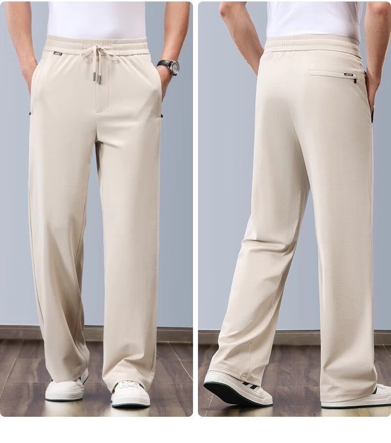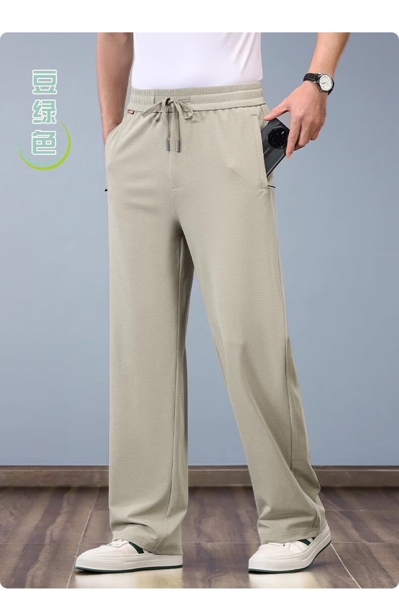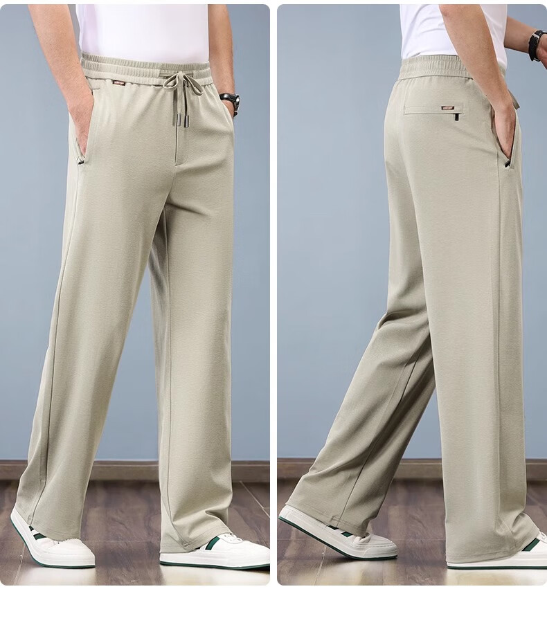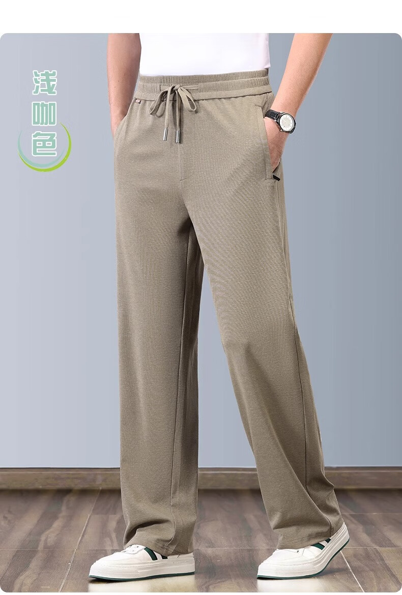 JEEP pantalones deportivos de algodón y lino pantalones de pierna ancha rectos sueltos finos de verano para hombres pantalones de lino de seda de hielo pantalones casuales para hombres marrón claro XL recomendado 152-162 Jin Jin equivale a 0,5 kg