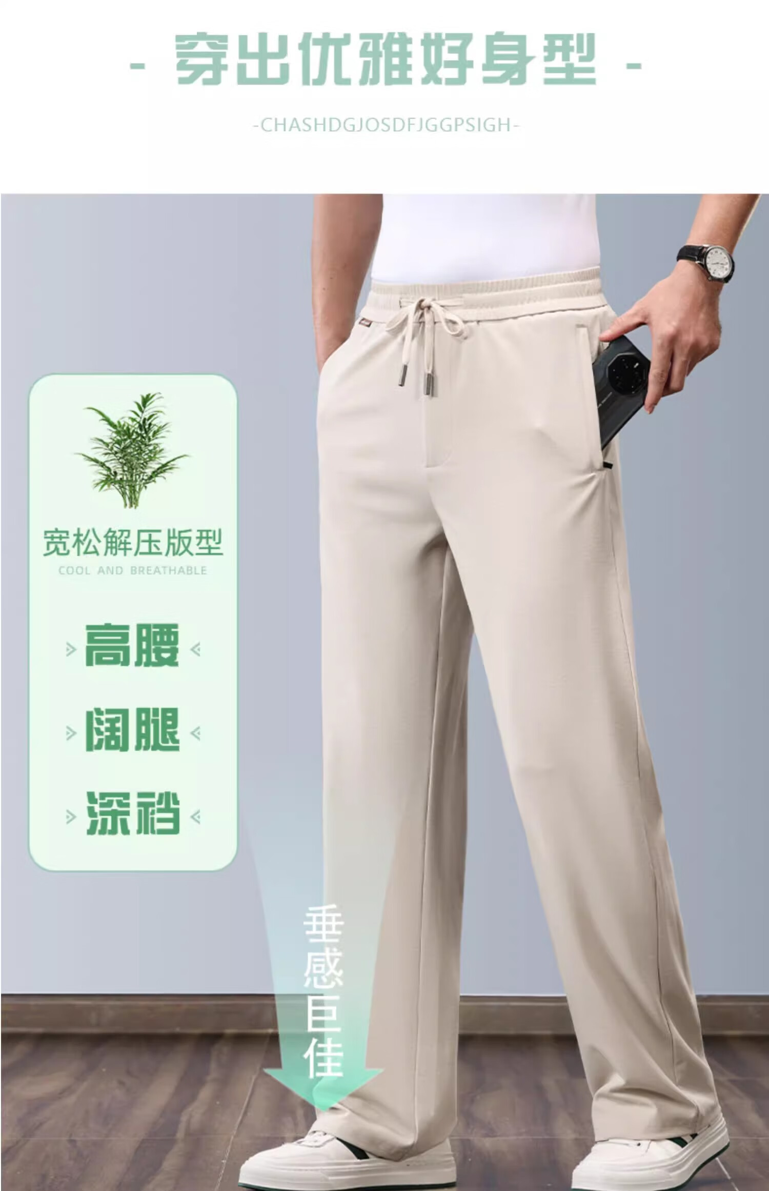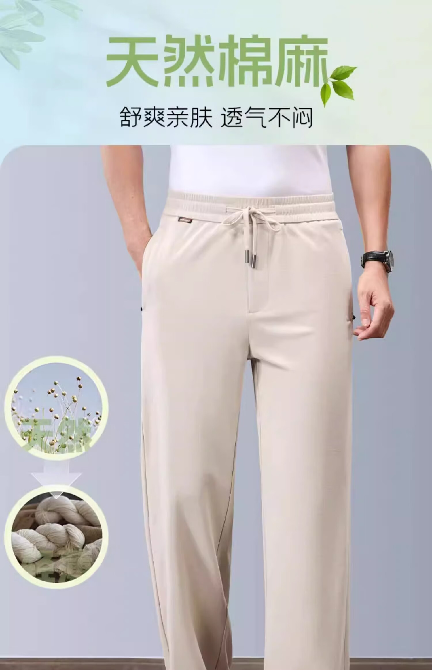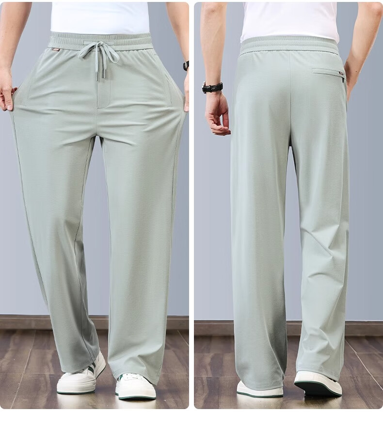 JEEP pantalones deportivos de algodón y lino pantalones de pierna ancha rectos sueltos finos de verano para hombres pantalones de lino de seda de hielo pantalones casuales para hombres marrón claro XL recomendado 152-162 Jin Jin equivale a 0,5 kg