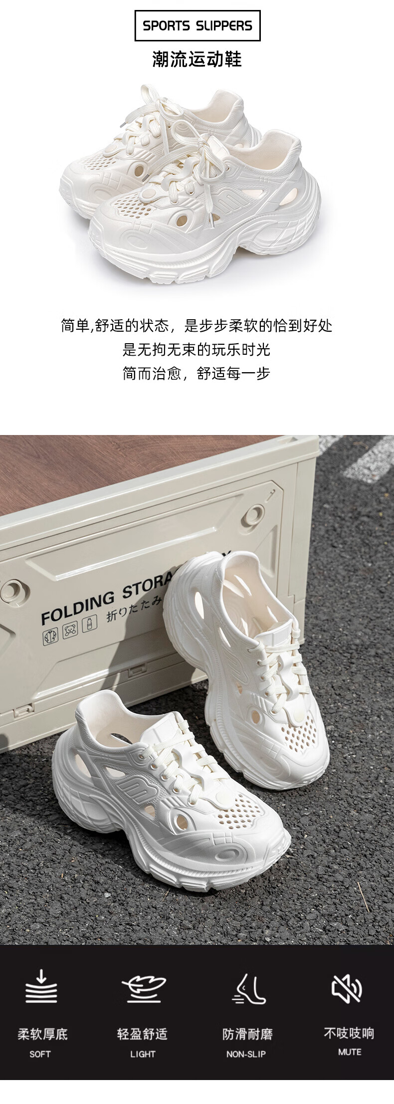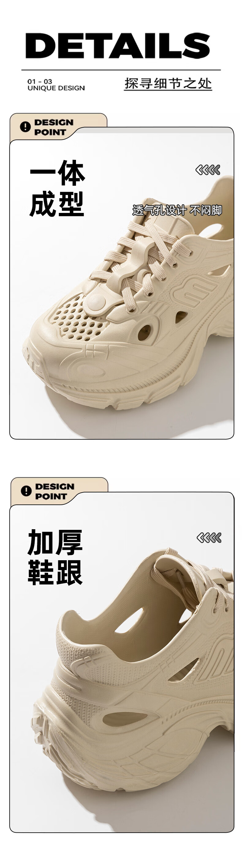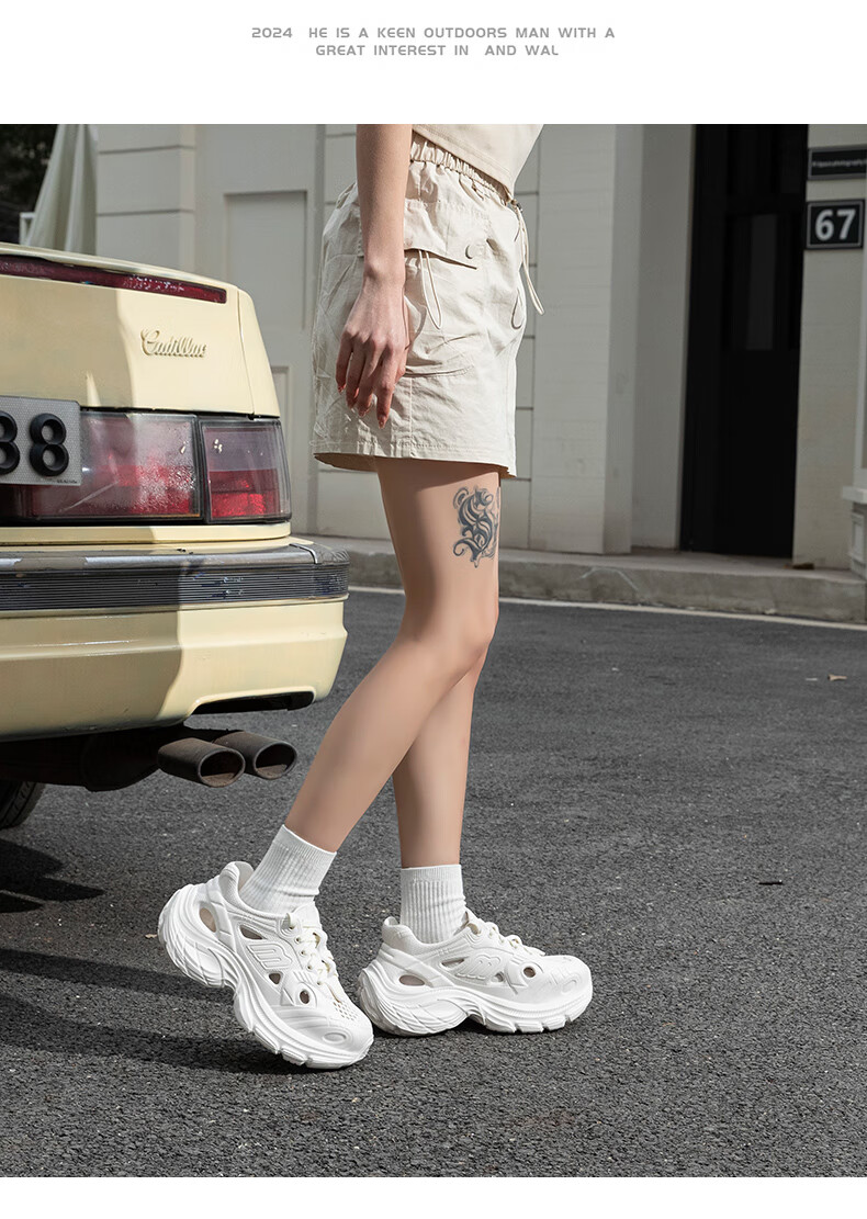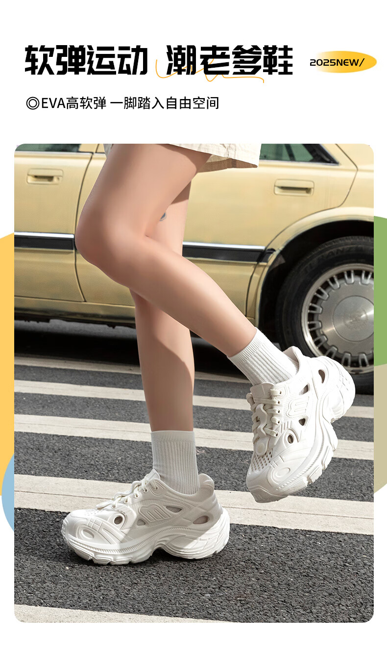 百丽踏厚底洞洞鞋女款2025新款夏季外穿溯溪沙滩运动防滑增高老爹凉鞋女 白色【黑白煤球】6187 37 标准码