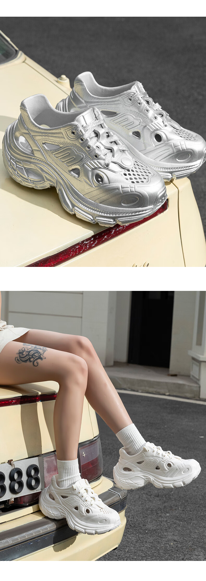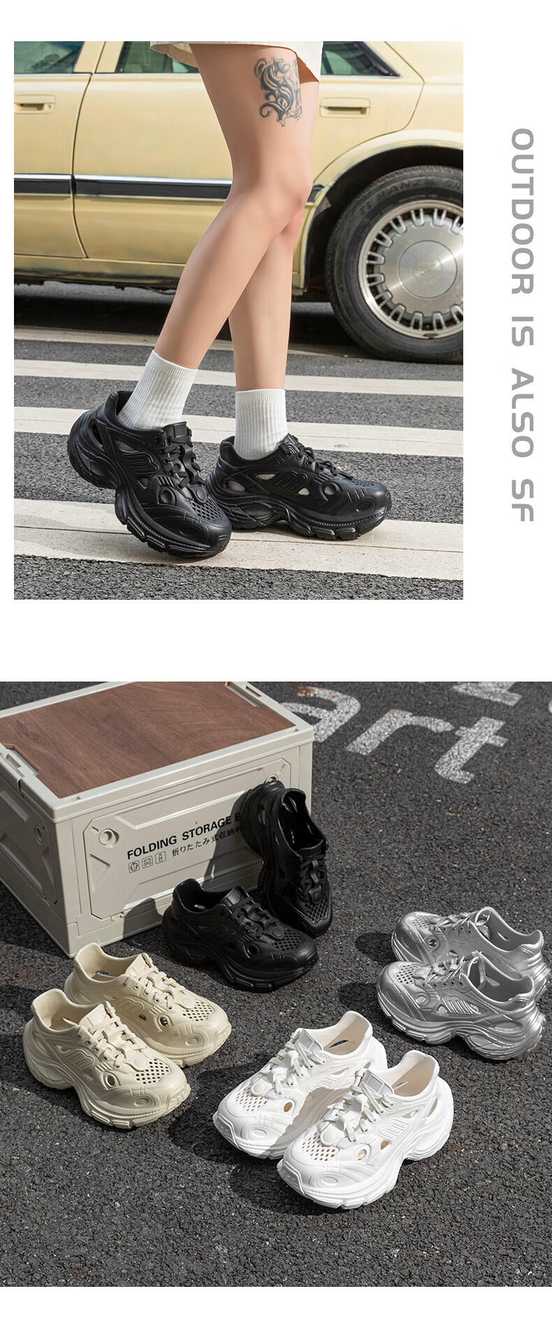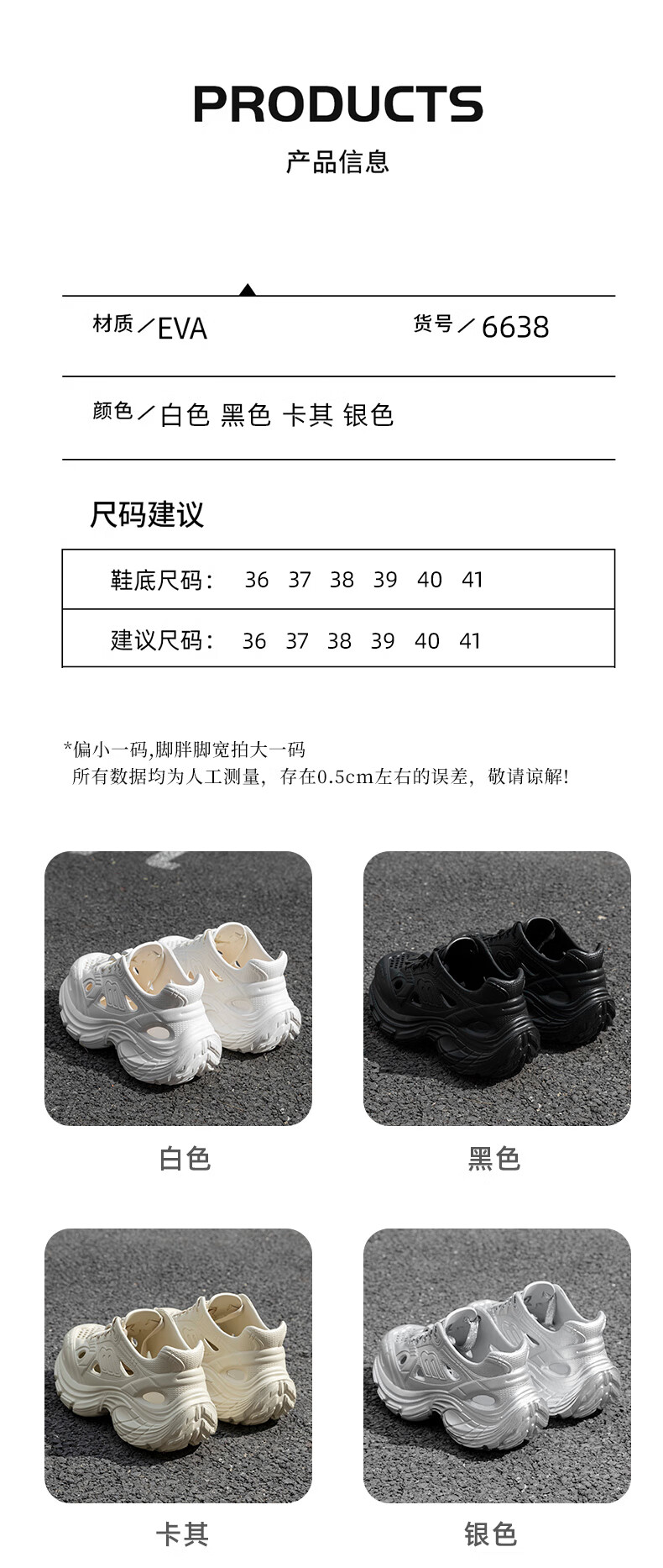 百丽踏厚底洞洞鞋女款2025新款夏季外穿溯溪沙滩运动防滑增高老爹凉鞋女 白色【黑白煤球】6187 37 标准码