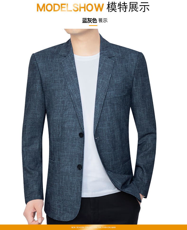 花花公子(PLAYBOY)2025新款夏季西装男外套中年弹力小西服爸爸装冰丝防晒衣夹克 蓝色 202125 S 165/84A /90-100斤