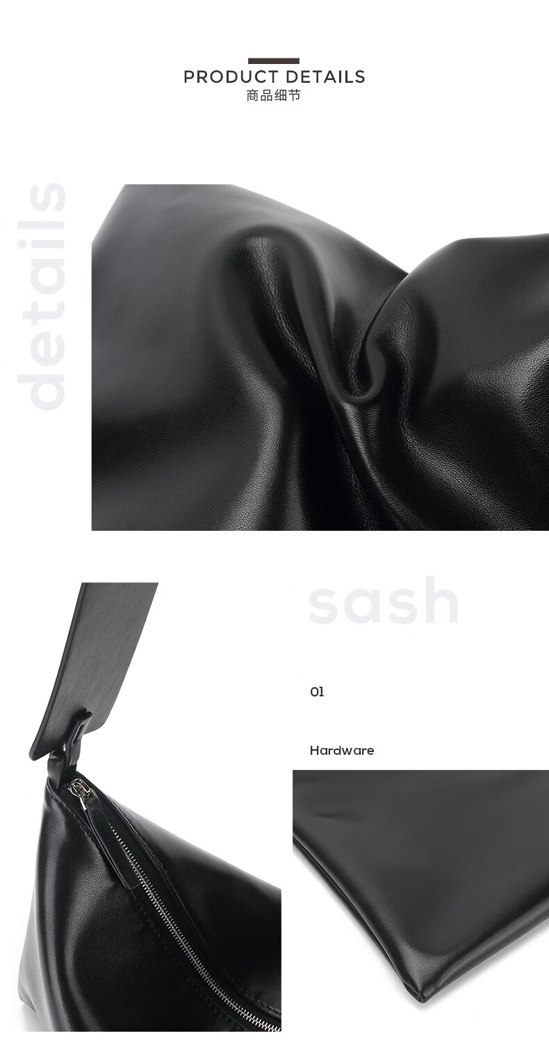 Luo Weibo también bolso tipo sobre básico, bolso de lujo ligero de cuero genuino, bolso para axila, bolso cuadrado pequeño, bolso de mano simple, bolso de bola de masa de moda, bolso hobo, negro-