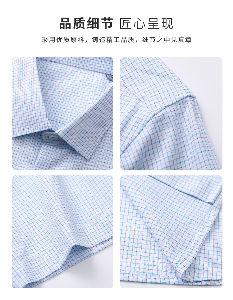 Fat Donglai cut off standard men's tops summer fashion texture plaid short-sleeved shirt trendy lake blue plaid one size 3895-105Jin Jin equals 0.5 kg