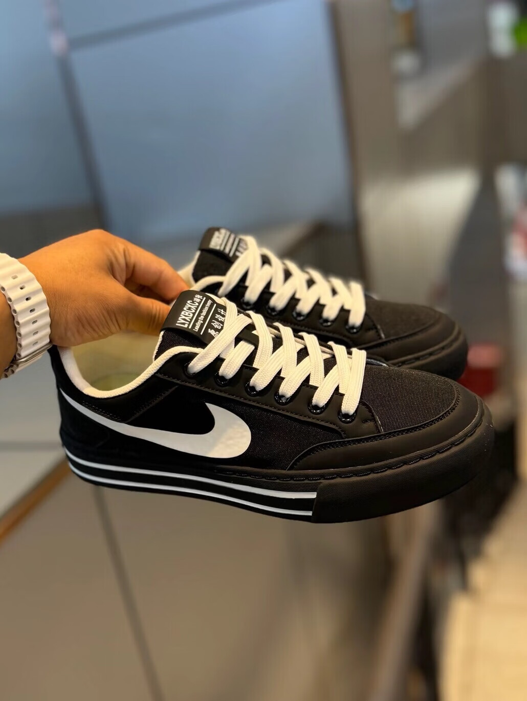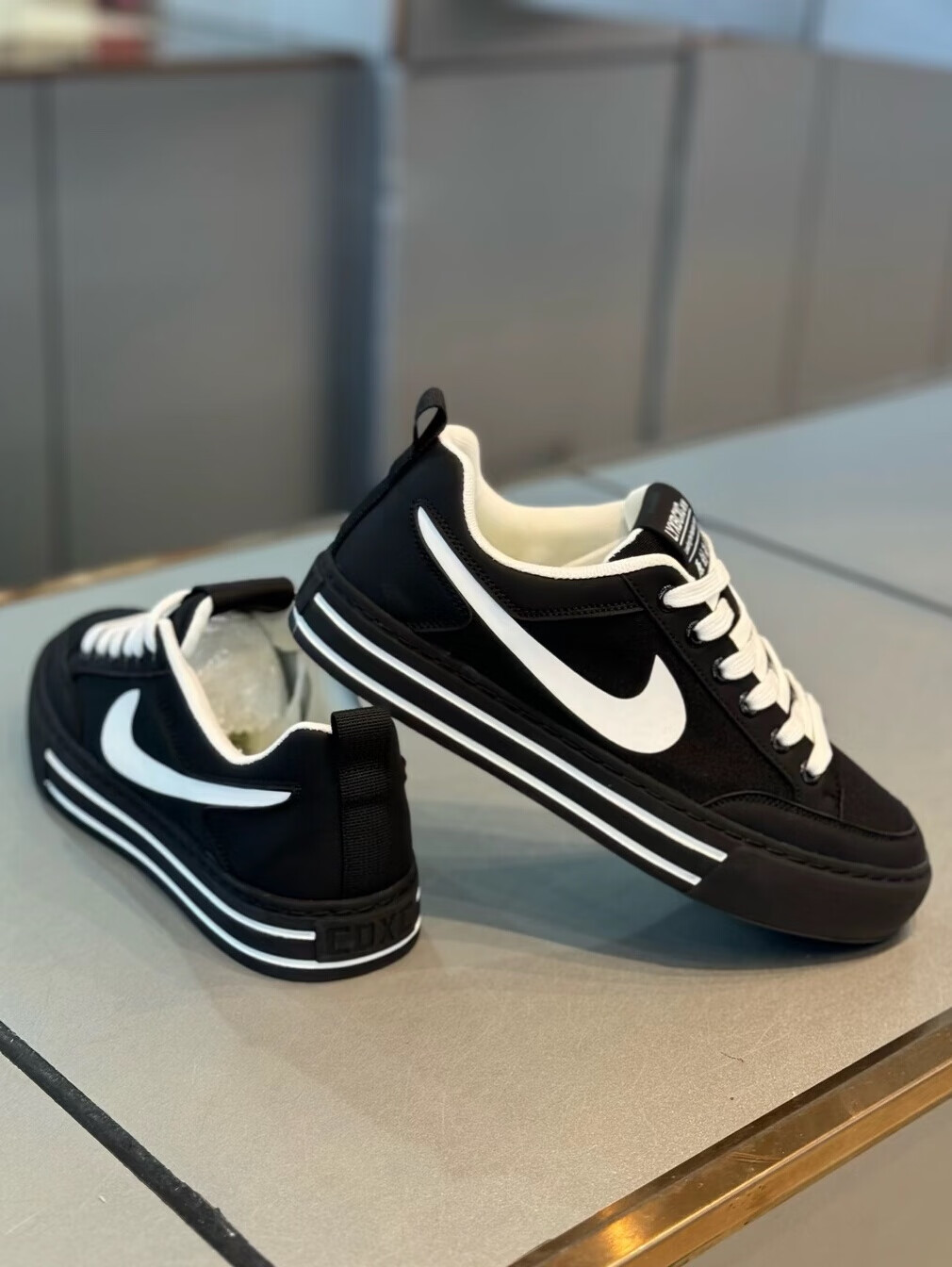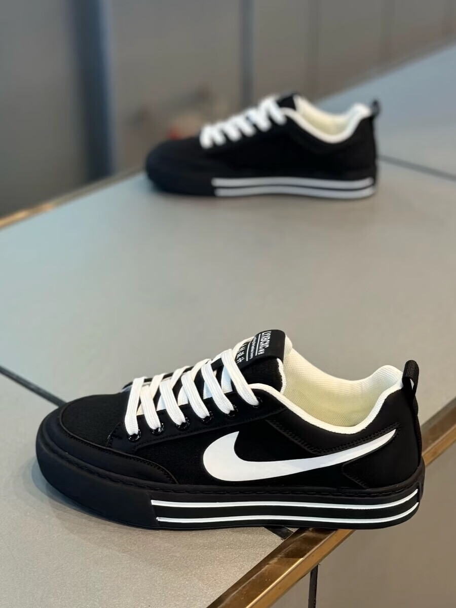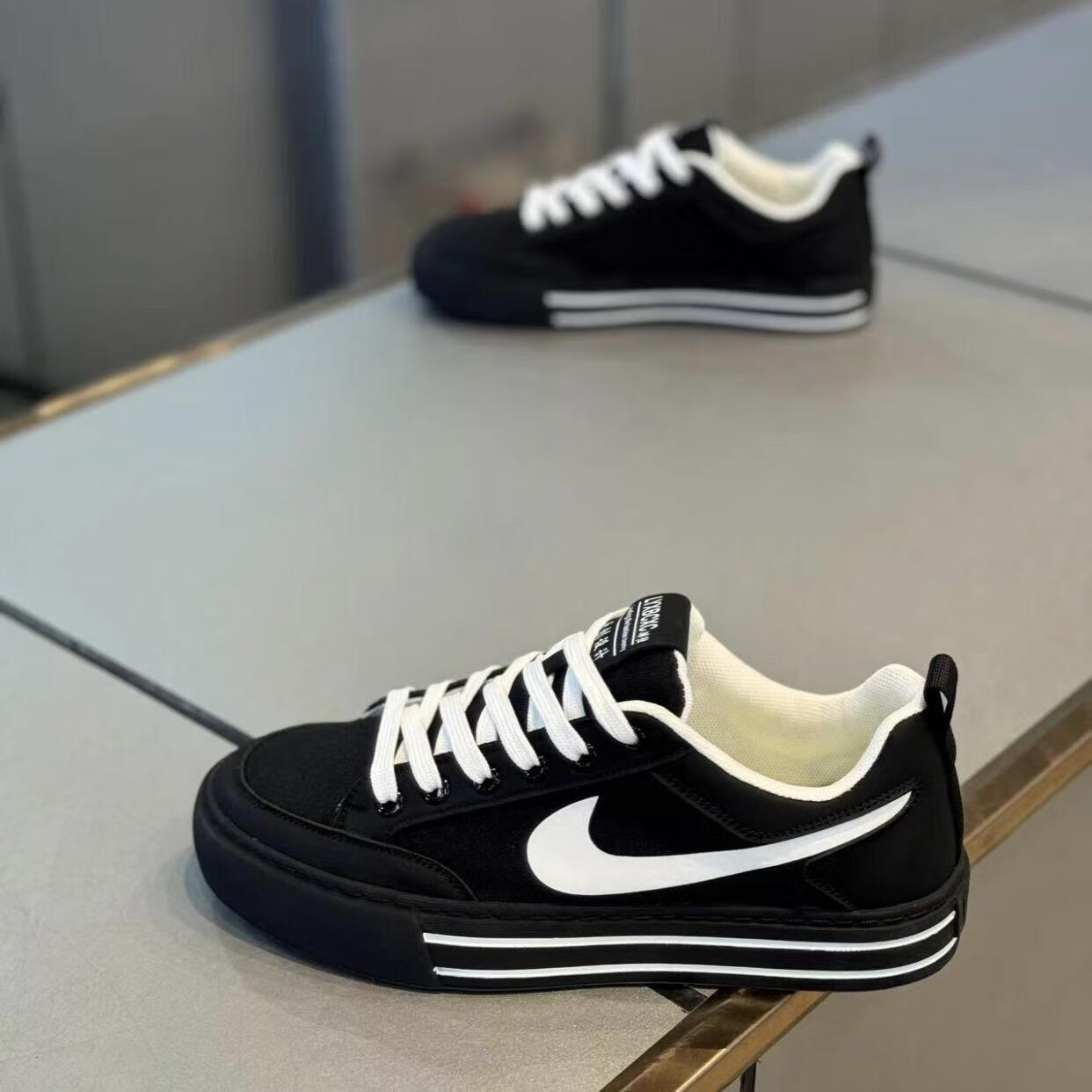 香港专柜代购新款潮流百搭帆布鞋男鞋透气软底舒适运动休闲鞋板鞋 白黑 40 (偏大一码,皮鞋码数)